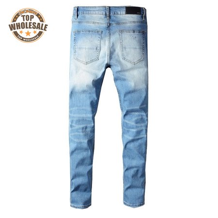 Amiri Chain Design Rip Jeans Light Blue