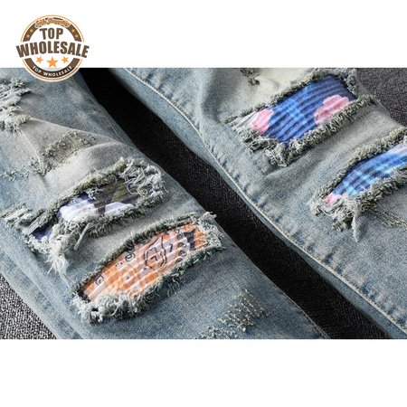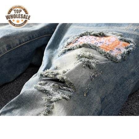 Amiri Bandanna Flower Rip Jeans Light Blue