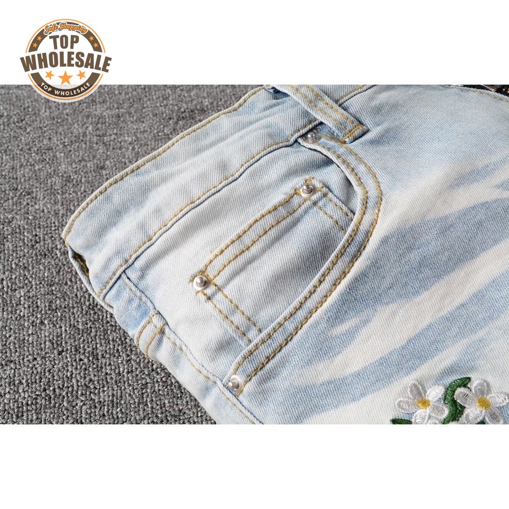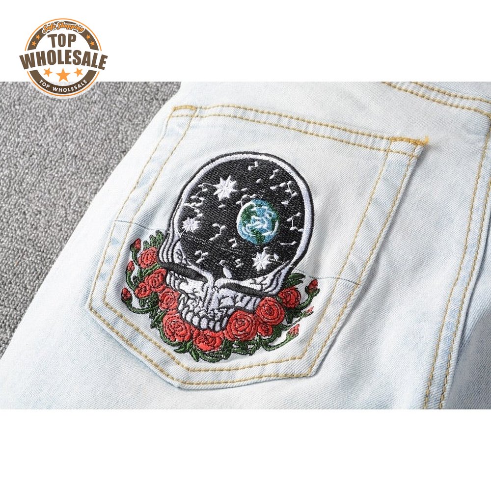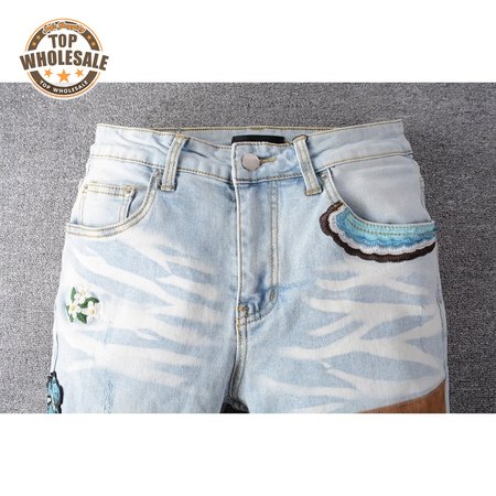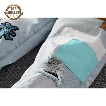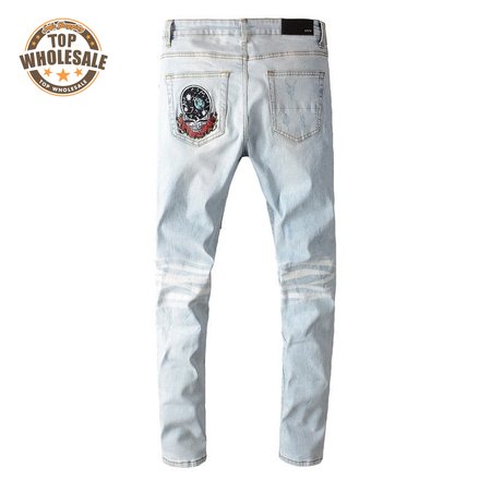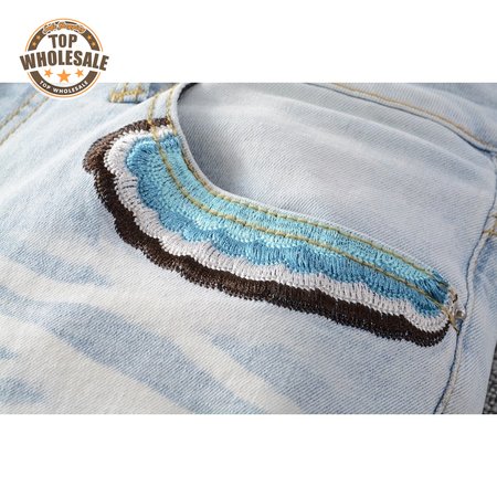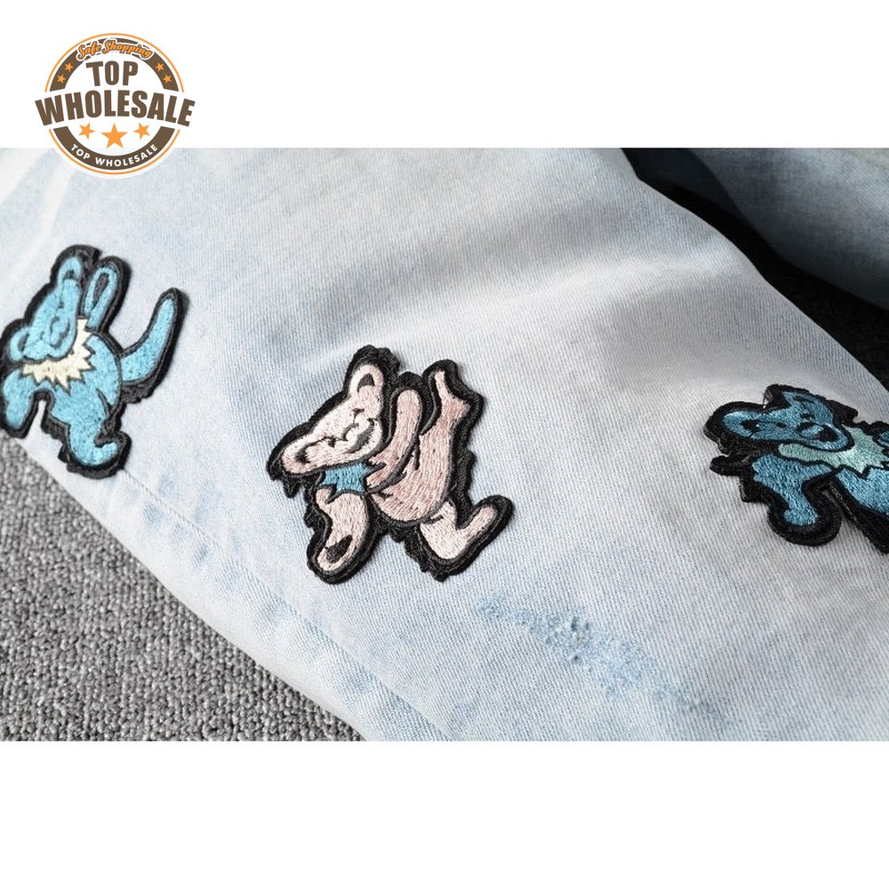 Amiri Bear Patch Rip Jeans Light Blue