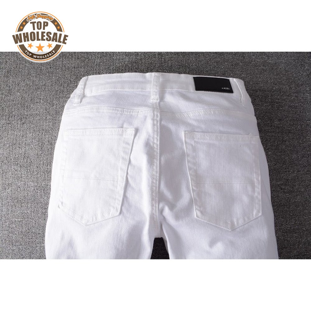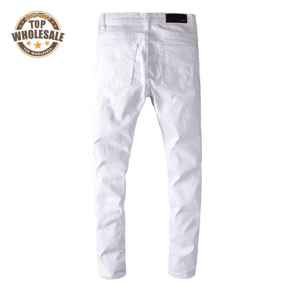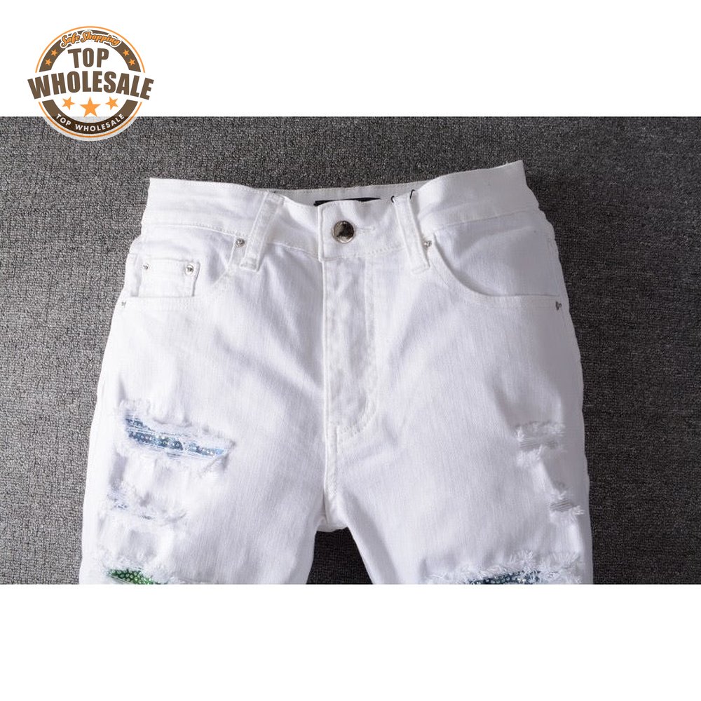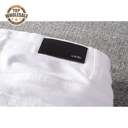 Amiri Rhinestone Rip Jeans White