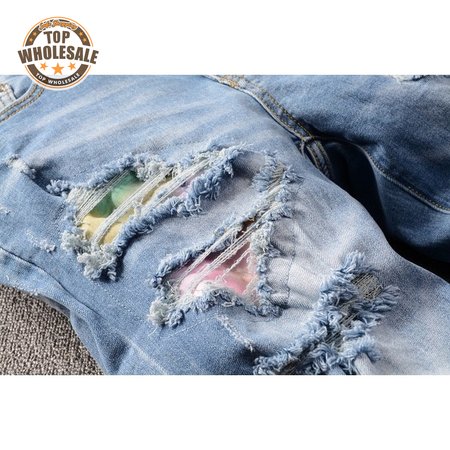 Amiri Rip Jeans Blue / Pink / Yellow
