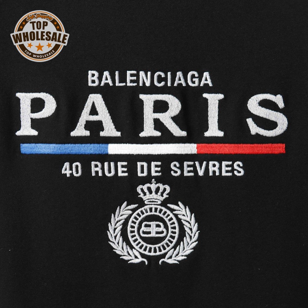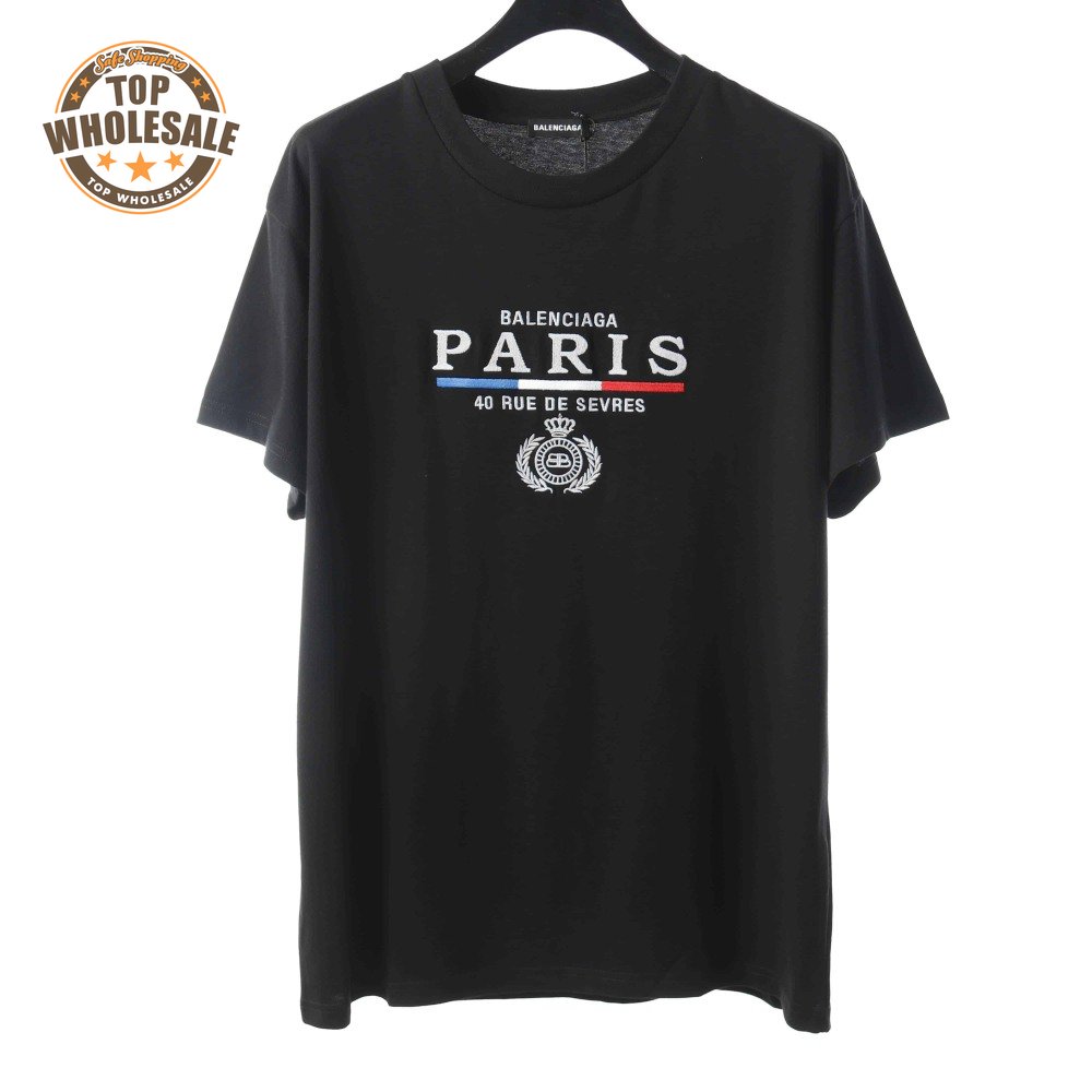 BALENCIAGA CROWN EMBROIDERED BLACK T SHIRT