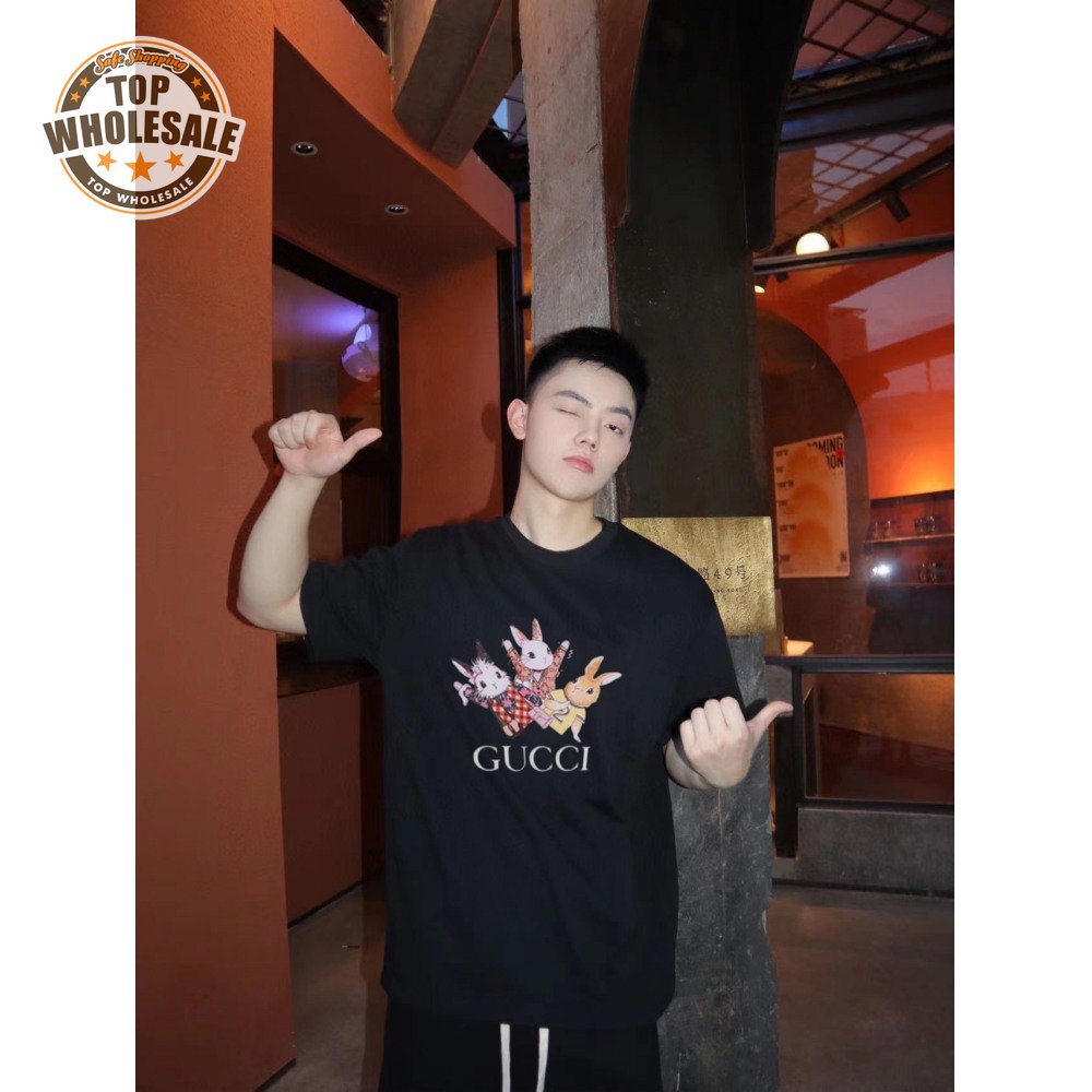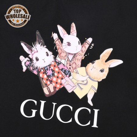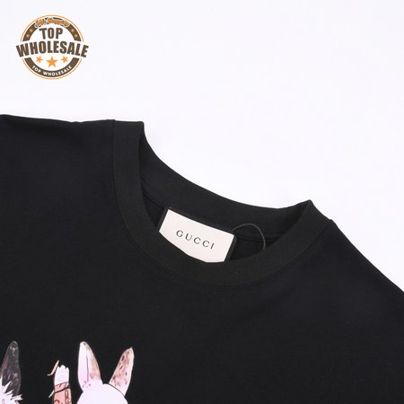 Gucci Rabbits Print Print Cotton T-Shirt Black