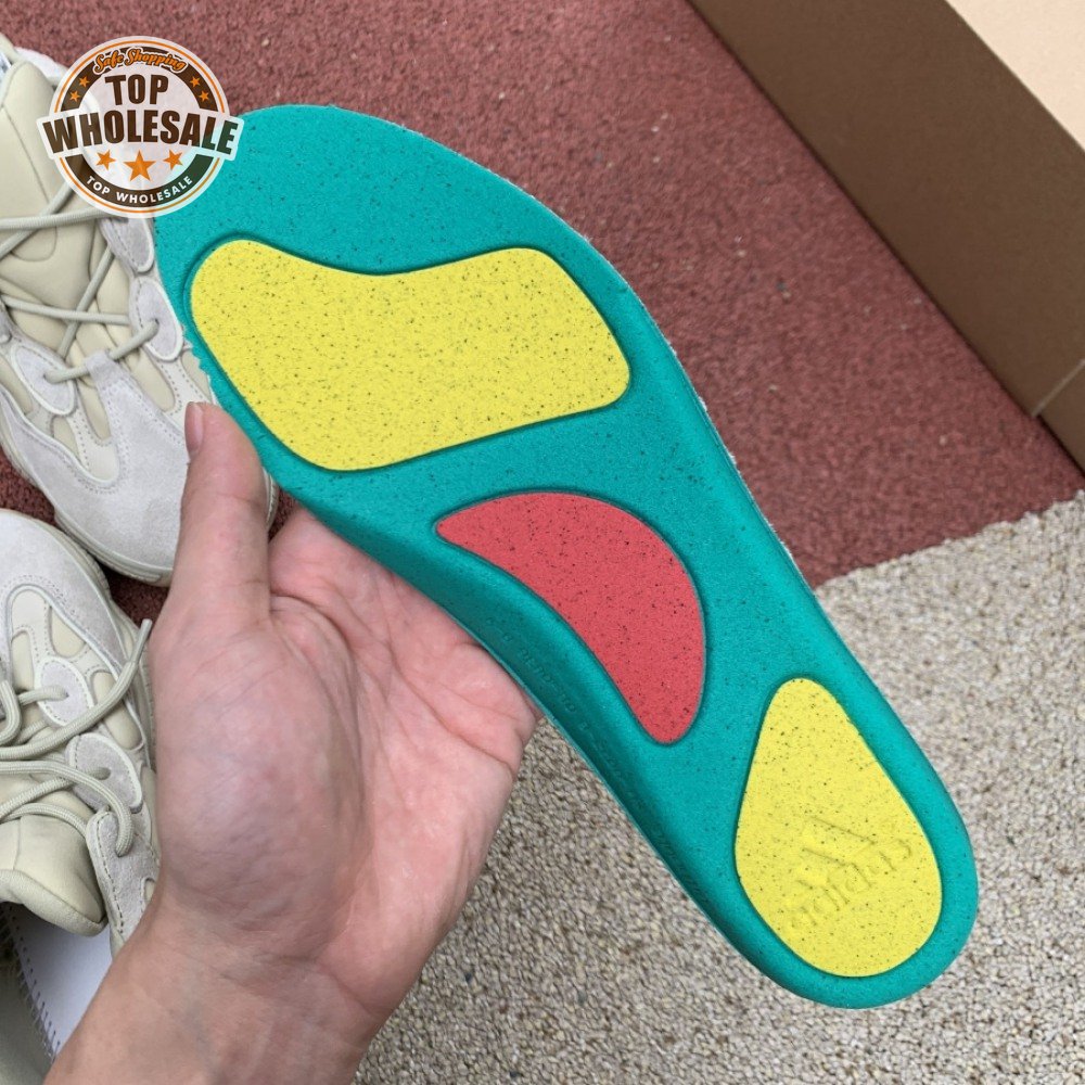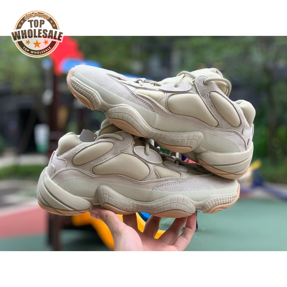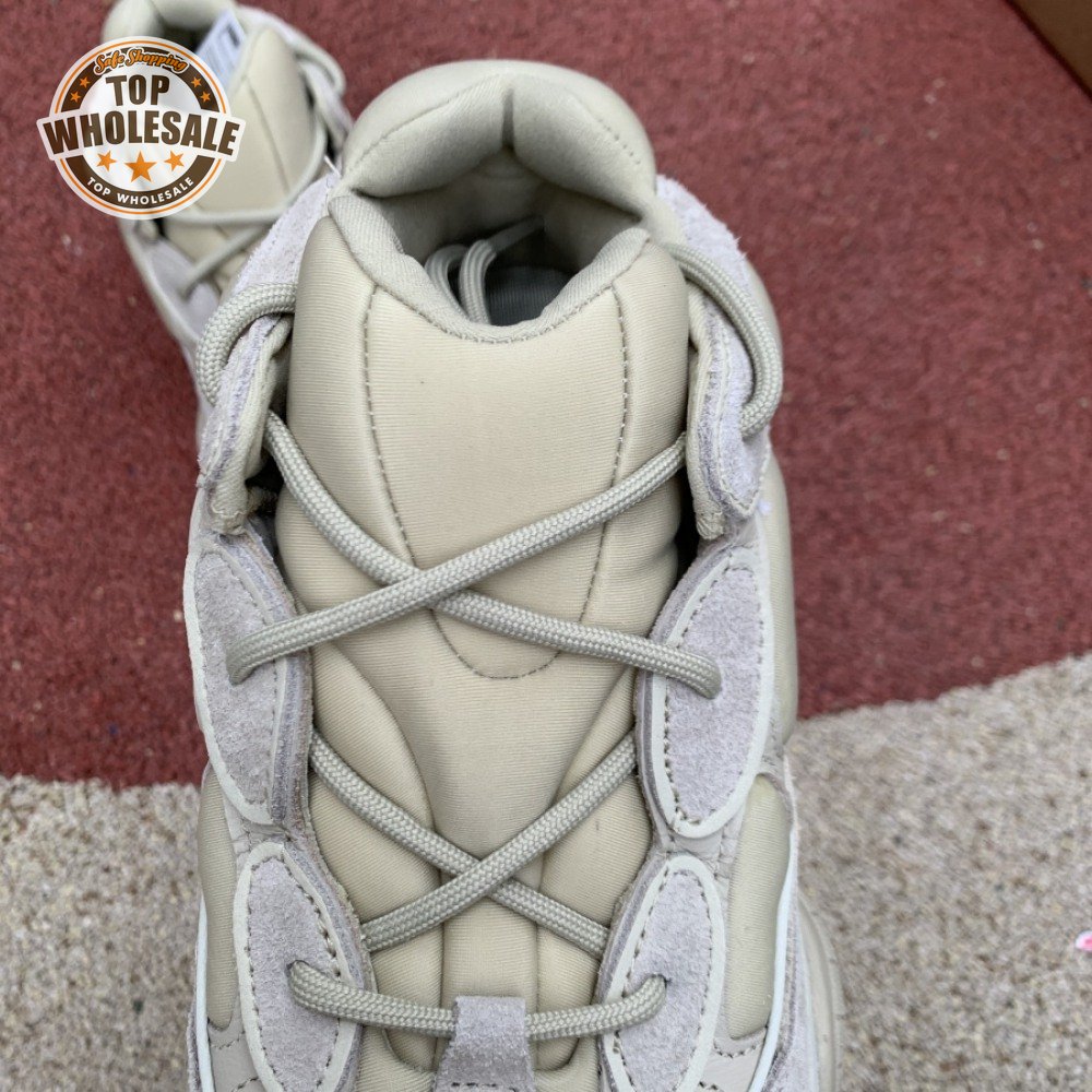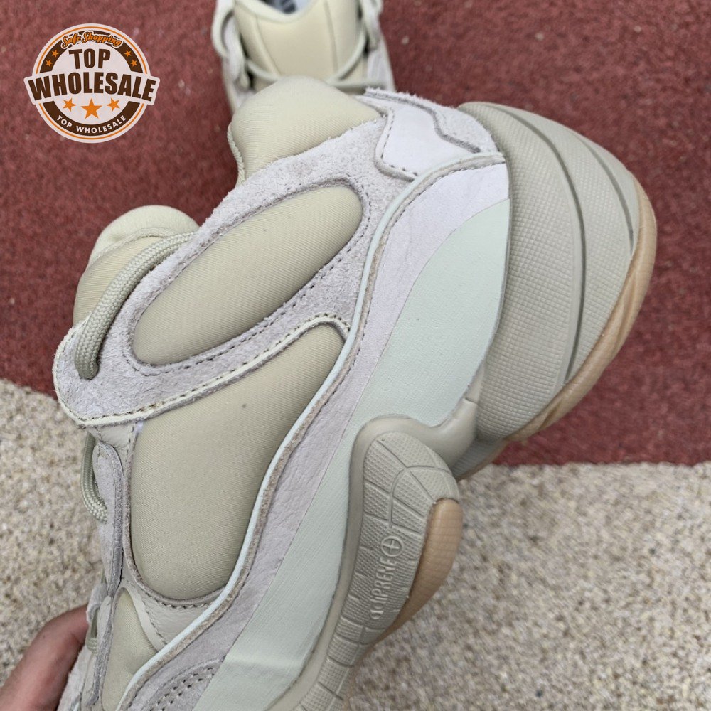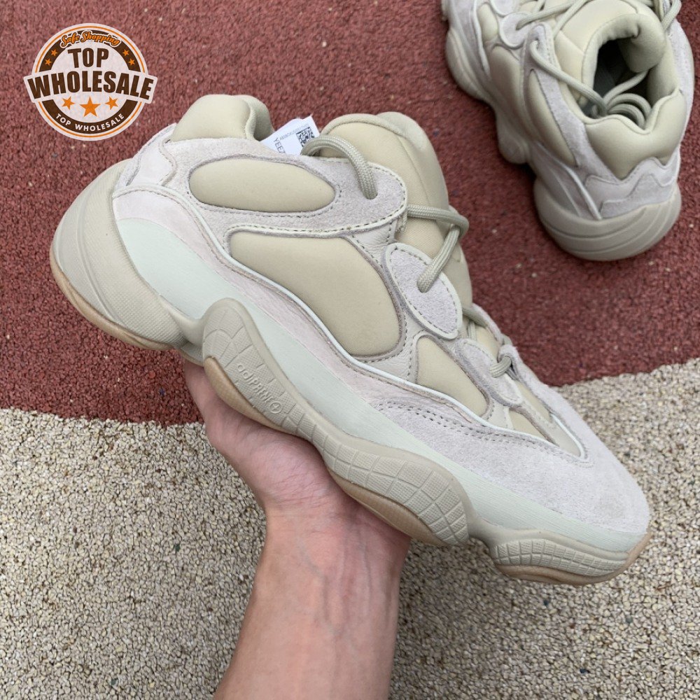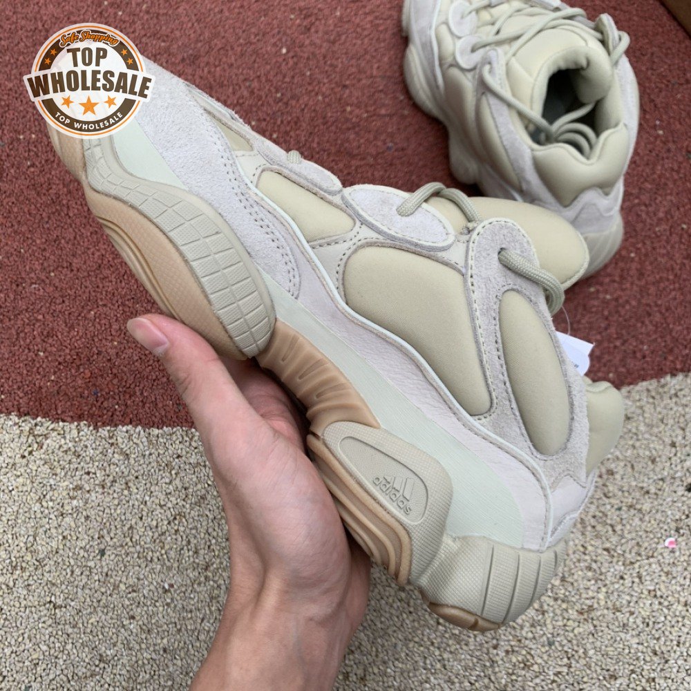 The adidas Yeezy 500 fuses the German brand's retro design principles and Kanye West's affinity for future-forward industrialism. Rendered in Stone mesh, this iteration"issued in November 2019"hosts tonal leather and suede panels, matching laces threaded through a tongue overlay and reflective piping. The sneaker utilizes a distinctive midsole with Adiprene technology for cushioned support and a curved gum rubber outsole.