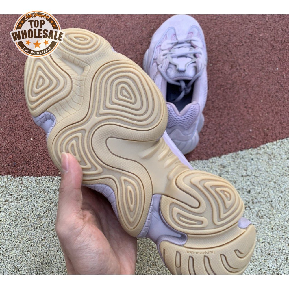 The adidas Yeezy 500 meets at the intersection of the German brand's past technical concepts and designer Kanye West's pairing of industrial ethos meets fashion. Introduced in November 2019, this edition's full tonal look is presented in Soft Vision mesh, leather and suede. Its laces are threaded through a matching tongue overlay. Inspired by retro Feet You Wear technology, a rounded Adiprene midsole and gum rubber outsole bolster the underfoot.