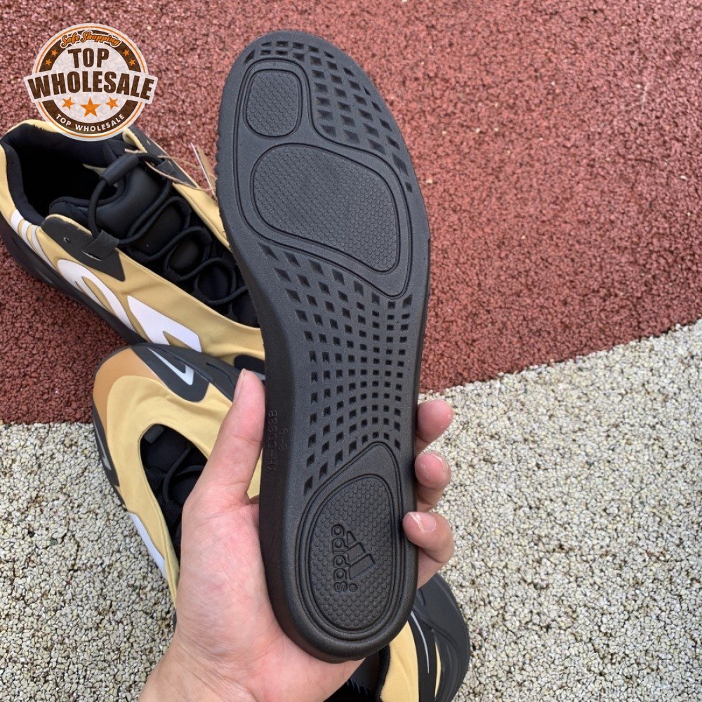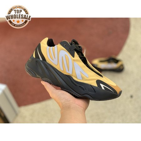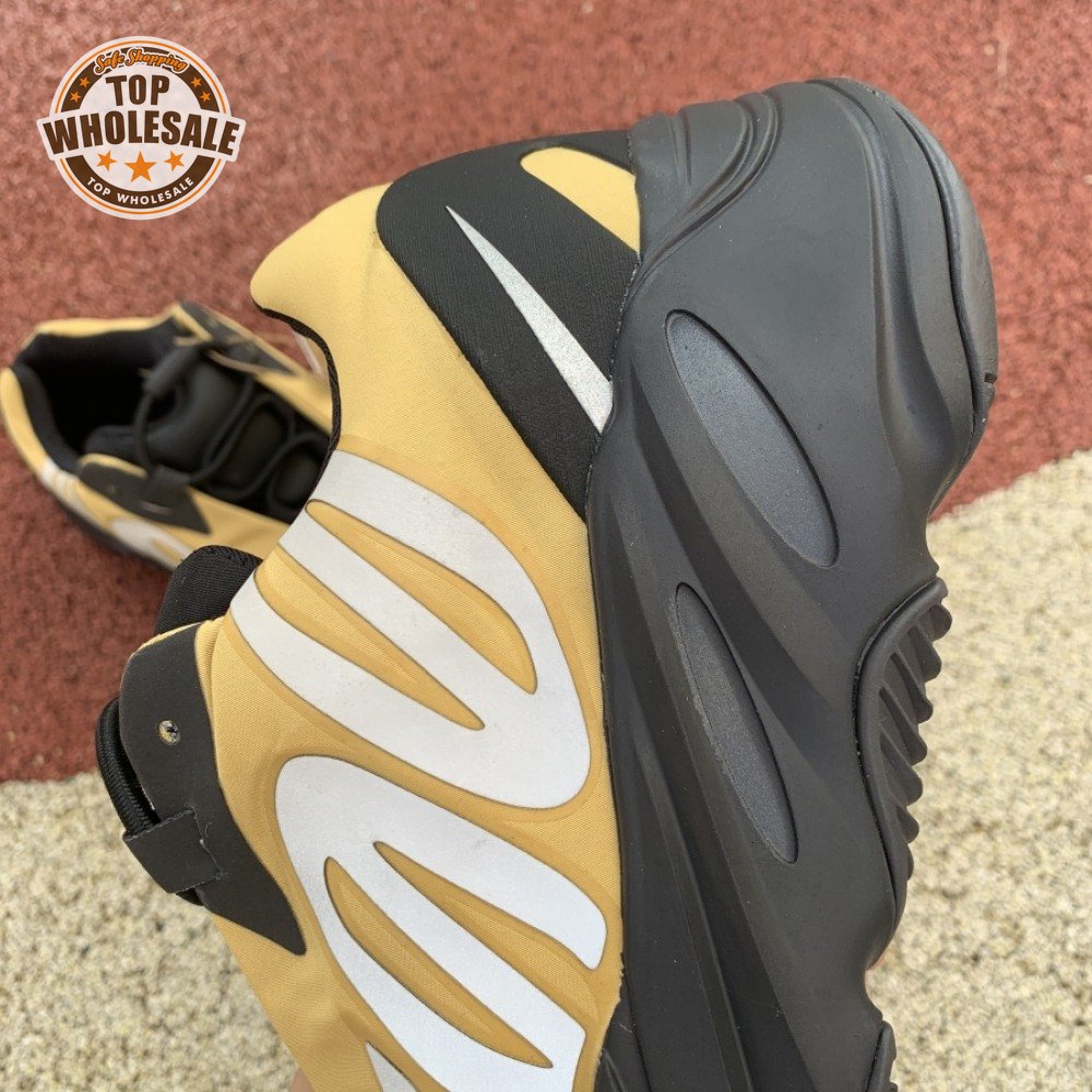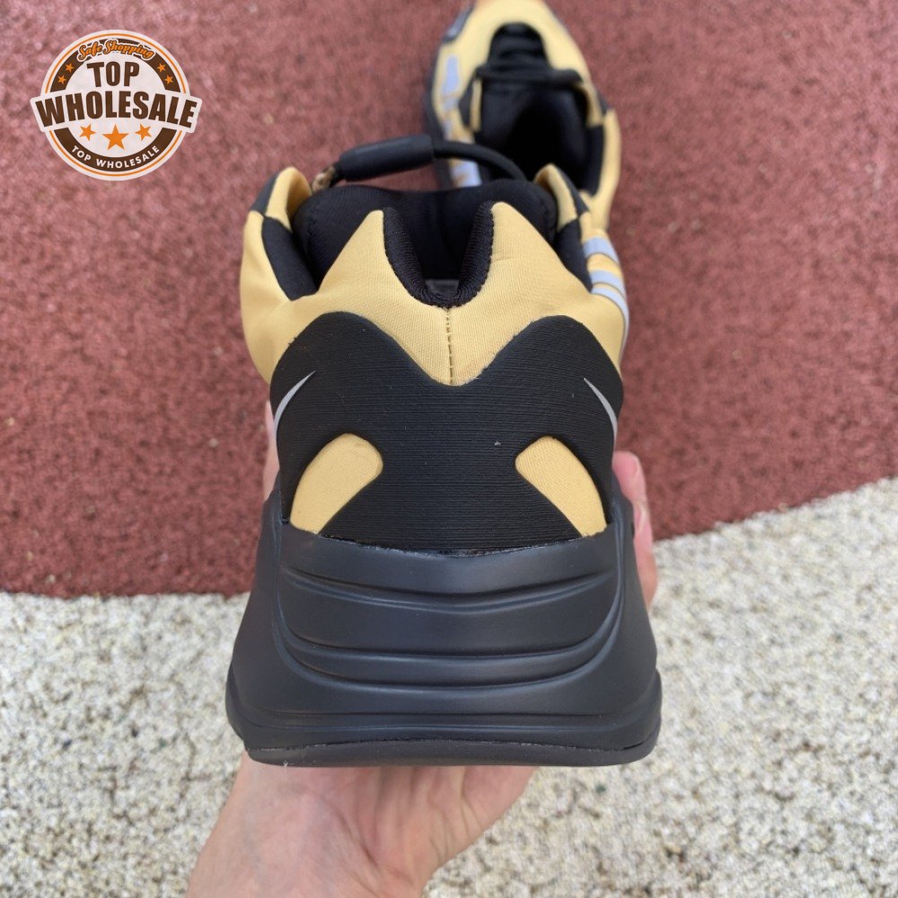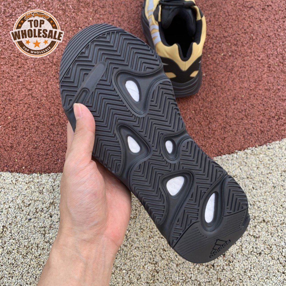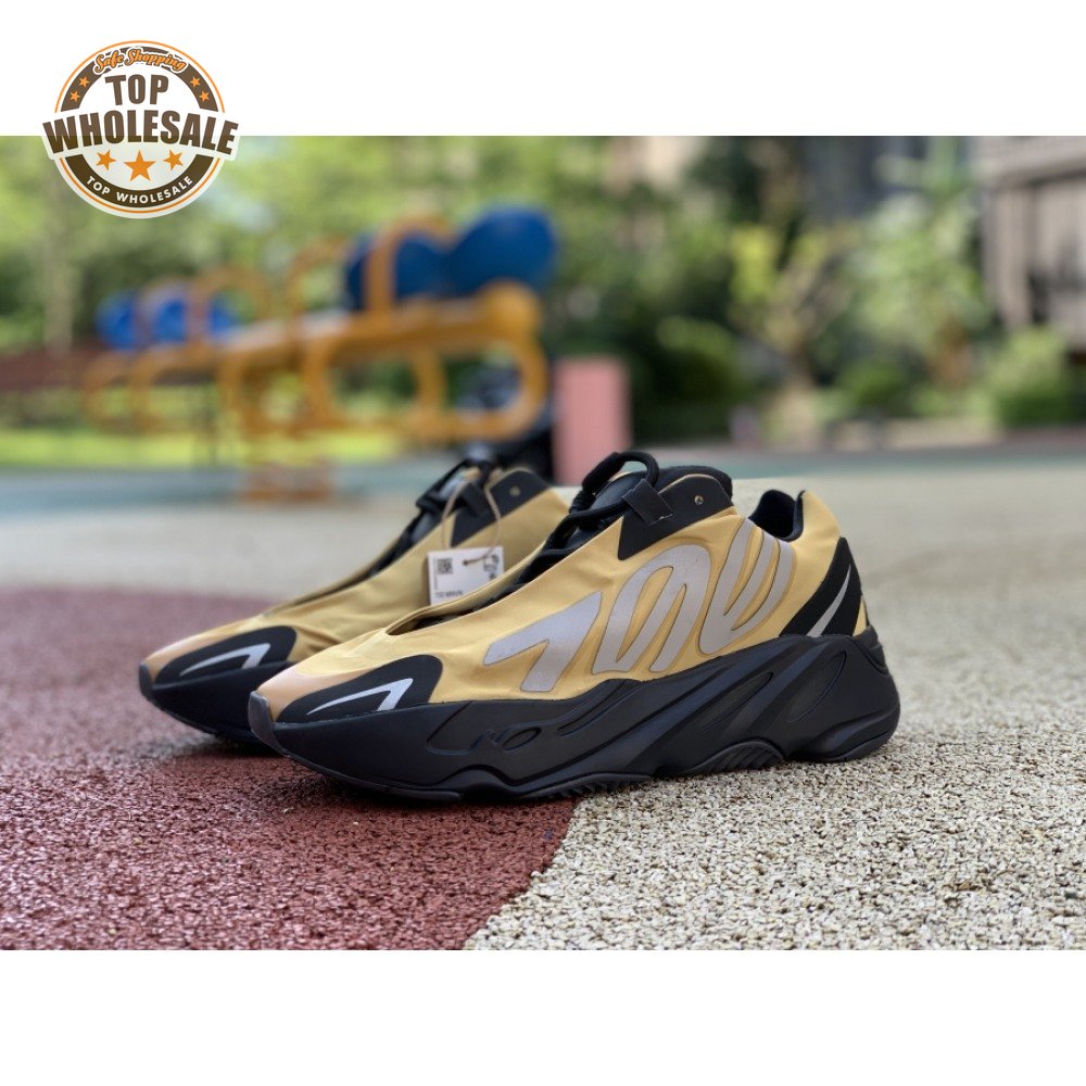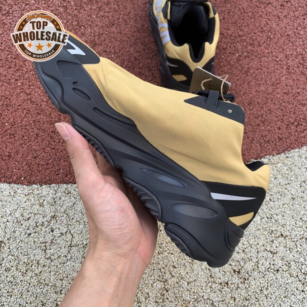 The adidas Yeezy Boost 700 MNVN "Bone" makes use of a high-contrast color scheme, highlighted by a cream polyester upper with black no-sew overlays at the toe and heel. No-tie bungee laces provide easy on and off, while reflective 700 branding on the sneaker"s quarter panel offers added visibility in low-light conditions. The seamless build rests on a sculpted black PU midsole, which houses drop-in Boost cushioning for a smooth ride.