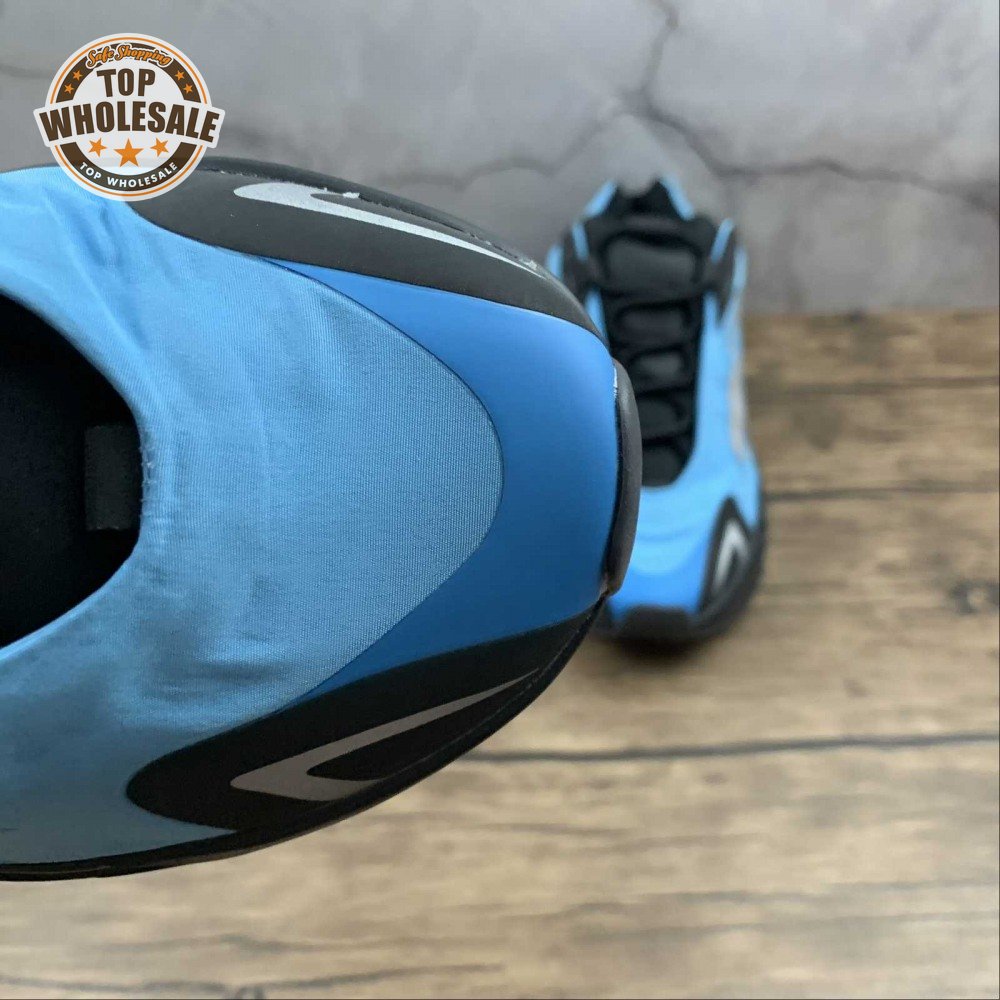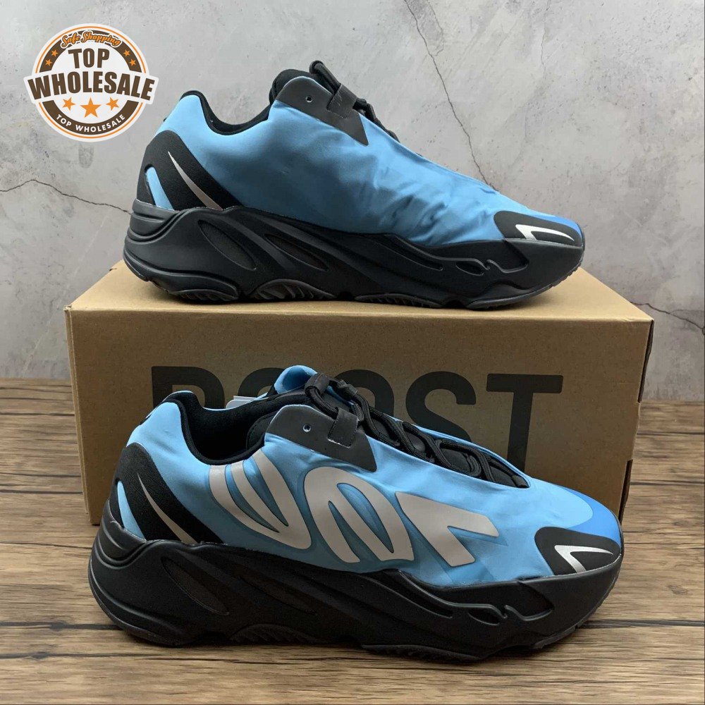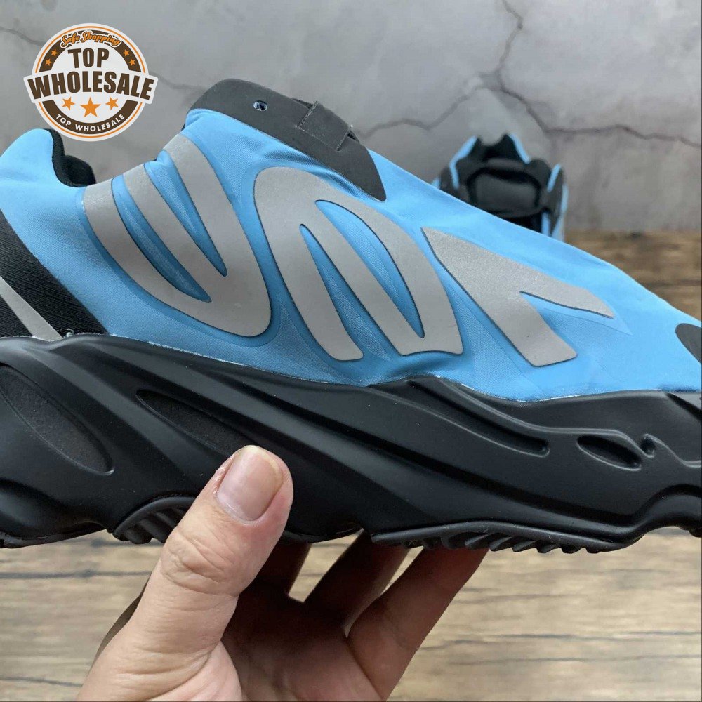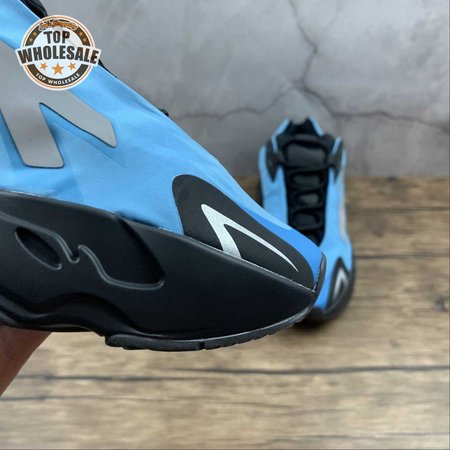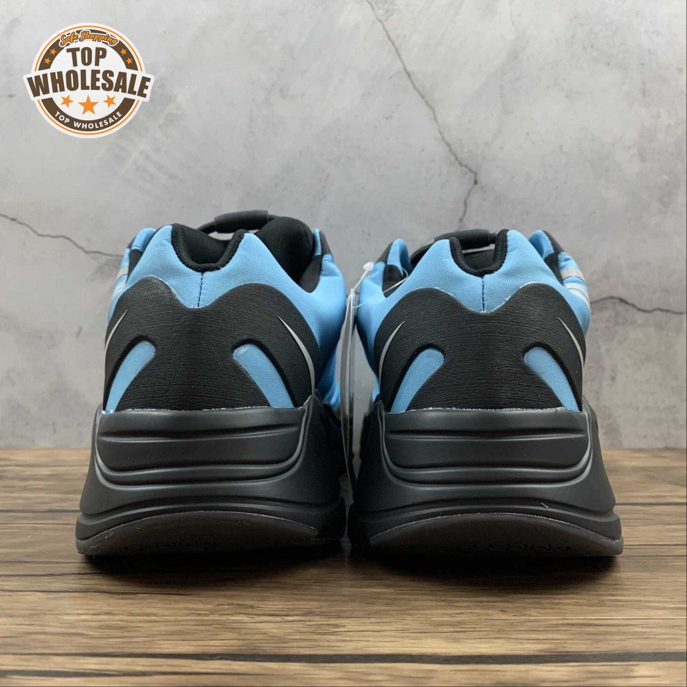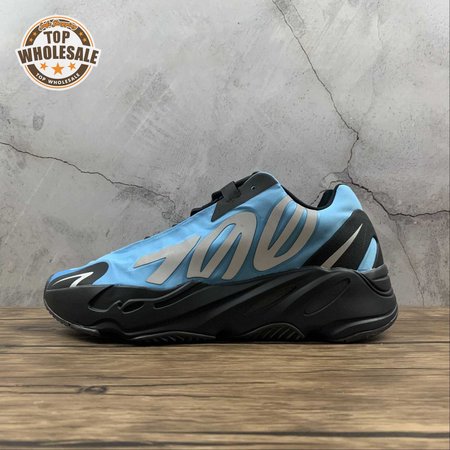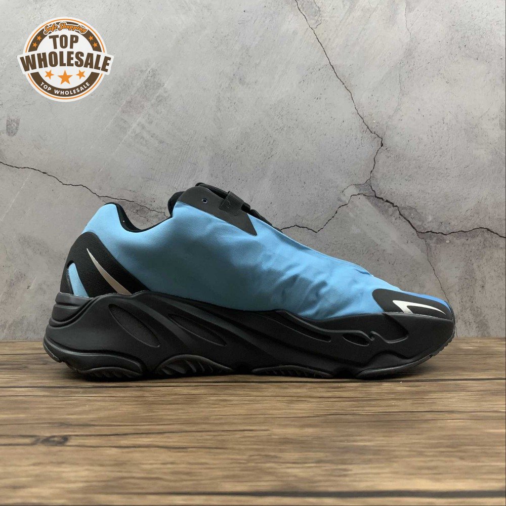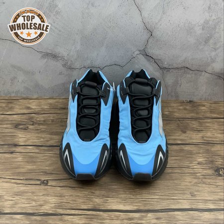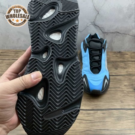 The adidas Yeezy Boost 700 MNVN "Bright Cyan" makes use of a lightweight polyester upper, secured with no-tie bungee laces and finished in a vibrant aqua hue. No-sew overlays provide lightweight durability and support, while reflective detailing offers added visibility in low-light conditions. The sneaker"s signature "700" branding adorns the lateral side. Responsive cushioning arrives via sculpted PU midsole, housing full-length Boost cushioning within and reinforced with a herringbone-tread outsole underfoot.