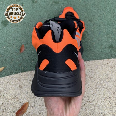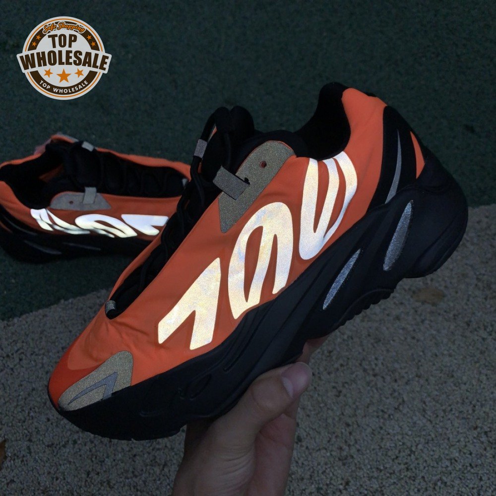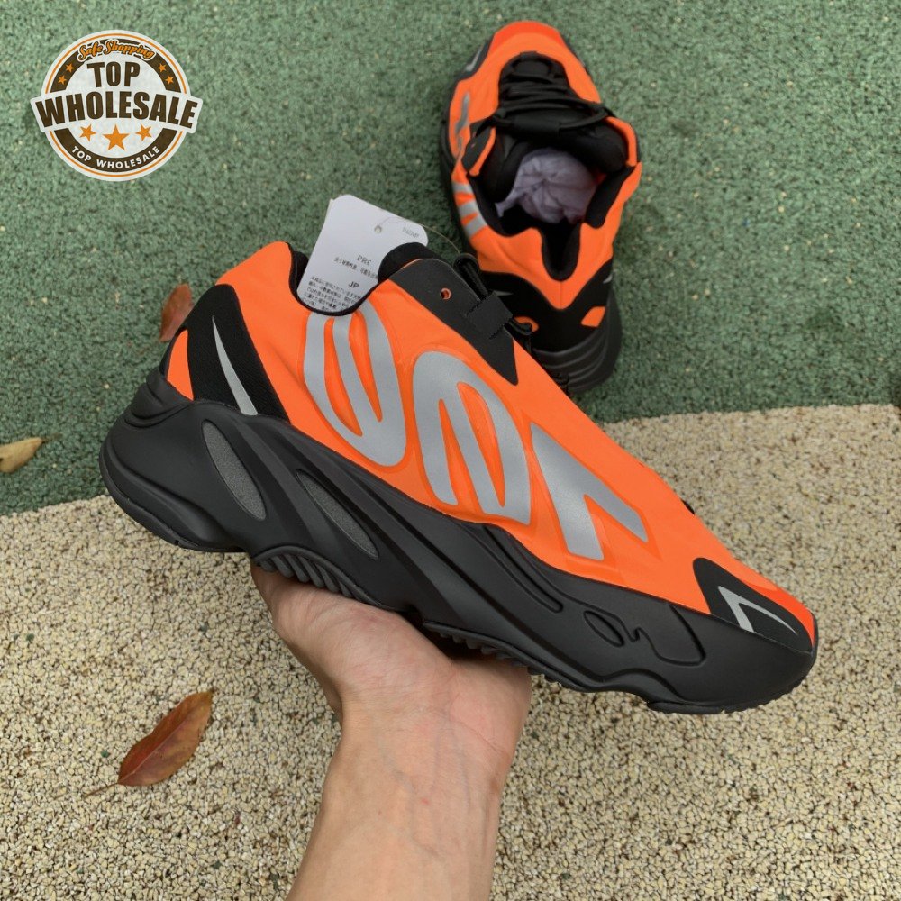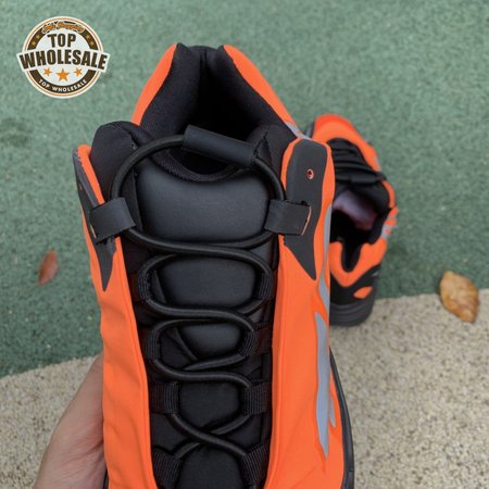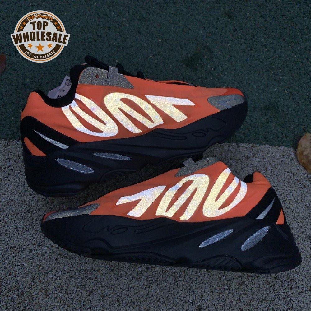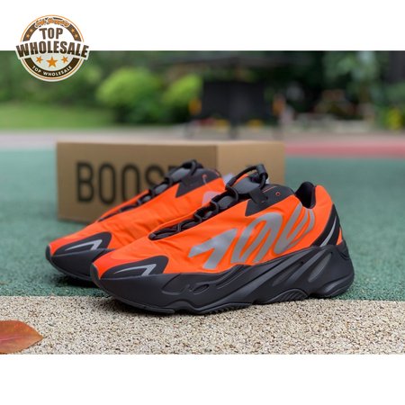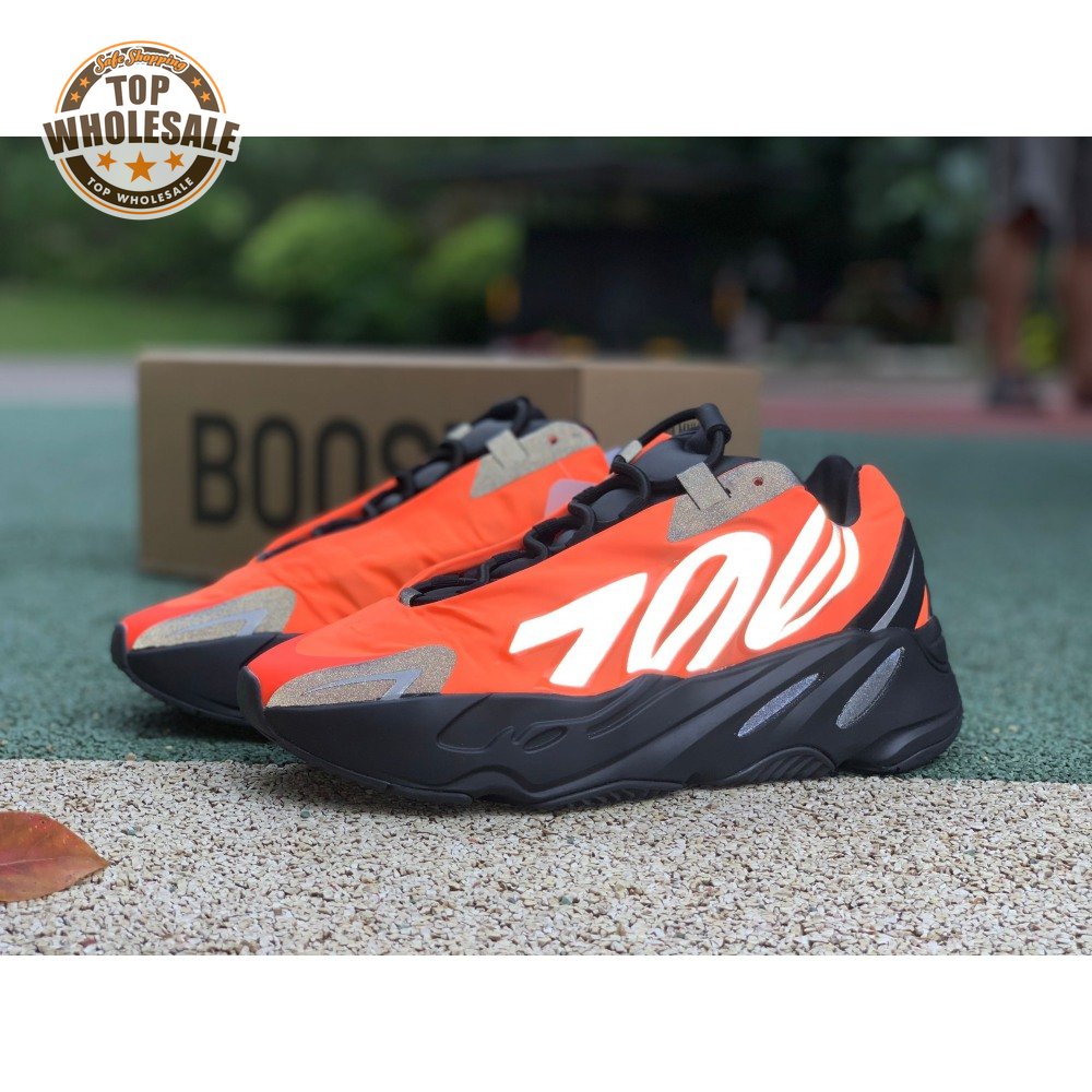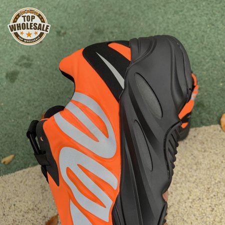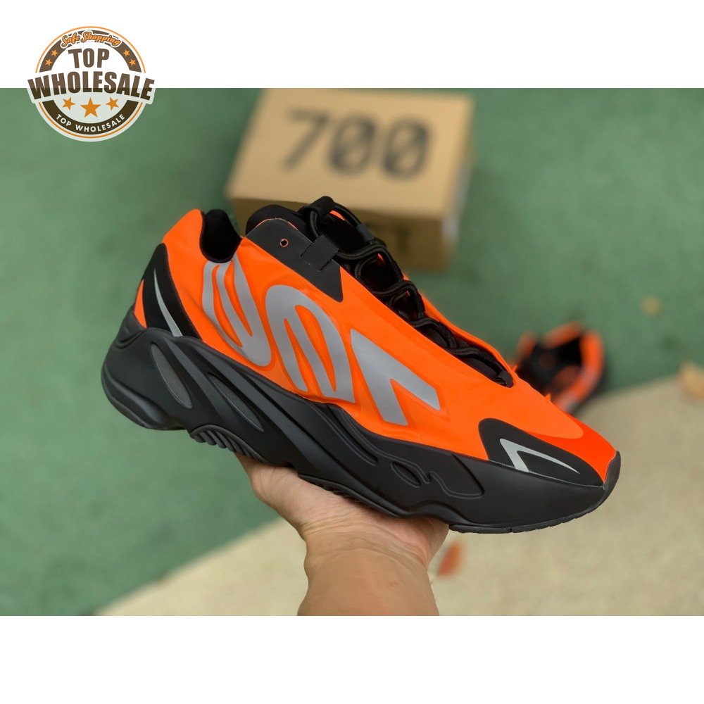 Kanye West brought together legendary designers Christian Tresser and Steven Smith for the adidas 700 MNVN. The sneaker's classic construction is ditched for an orange padded nylon upper complete with heat-welded overlays, a new heel tab and an oversized reflective '700' logo graphic across the lateral, omitting Three-Stripes branding. A black Boost-infused midsole is matched up with a herringbone rubber outsole. The 700 MNVN "Orange" release was available only in select stores in two cities: Los Angeles and Paris.