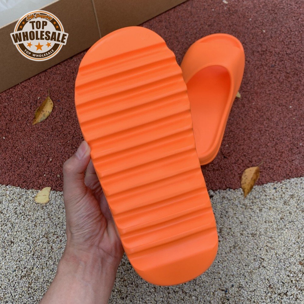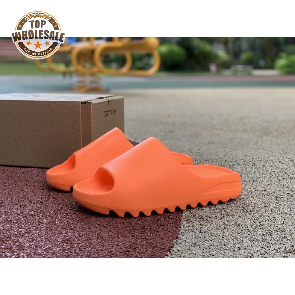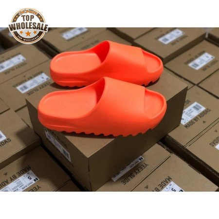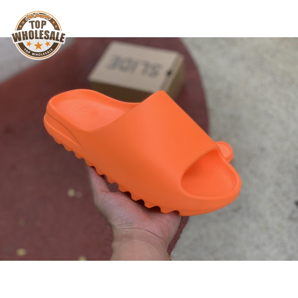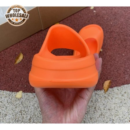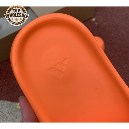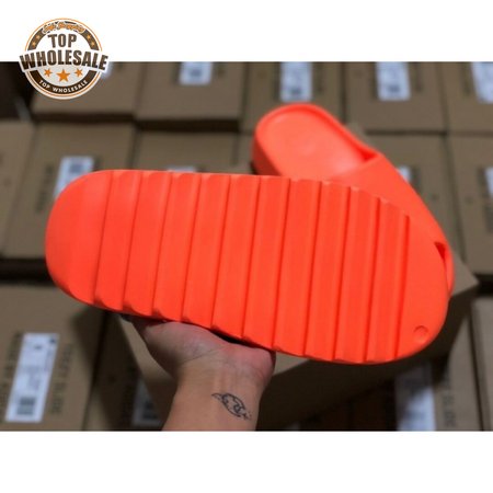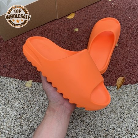 The adidas Yeezy Slide "Enflame Orange" updates the minimalist slip-on with a deep citrus hue. The lightweight build, formed with injected EVA, features breathable open-toe construction and a plush footbed for soft landings. The latter is marked with adidas" three-stripe logo, representing the only bit of exterior branding. Pronounced flex grooves distinguish the outsole, offering improved cushioning and durable traction.