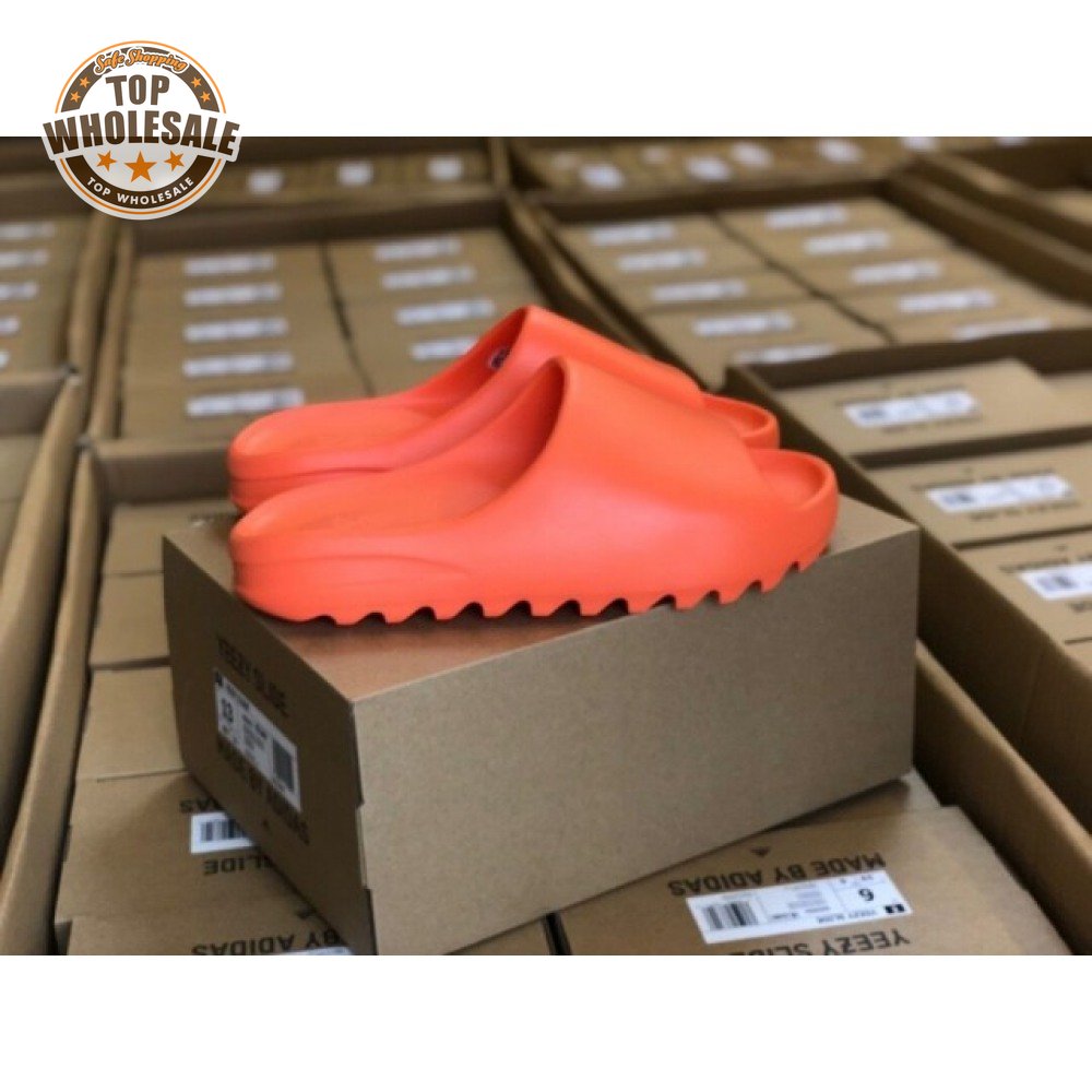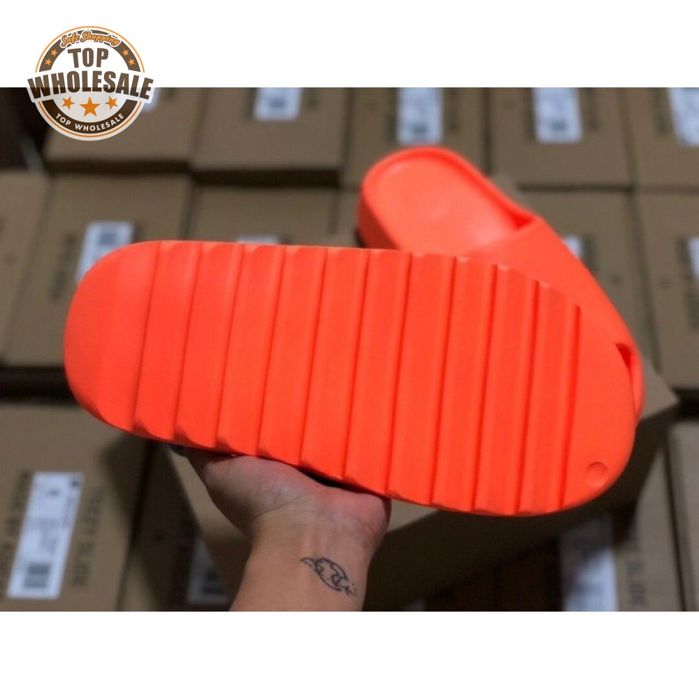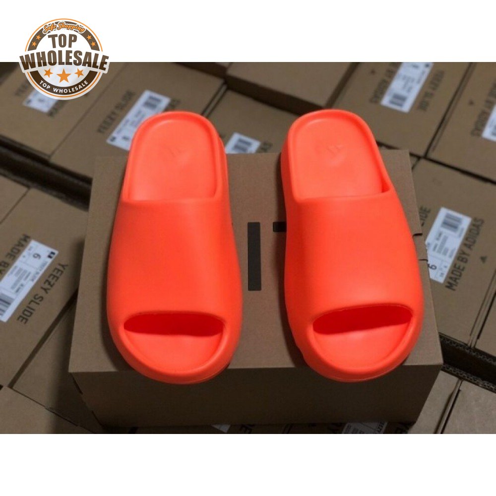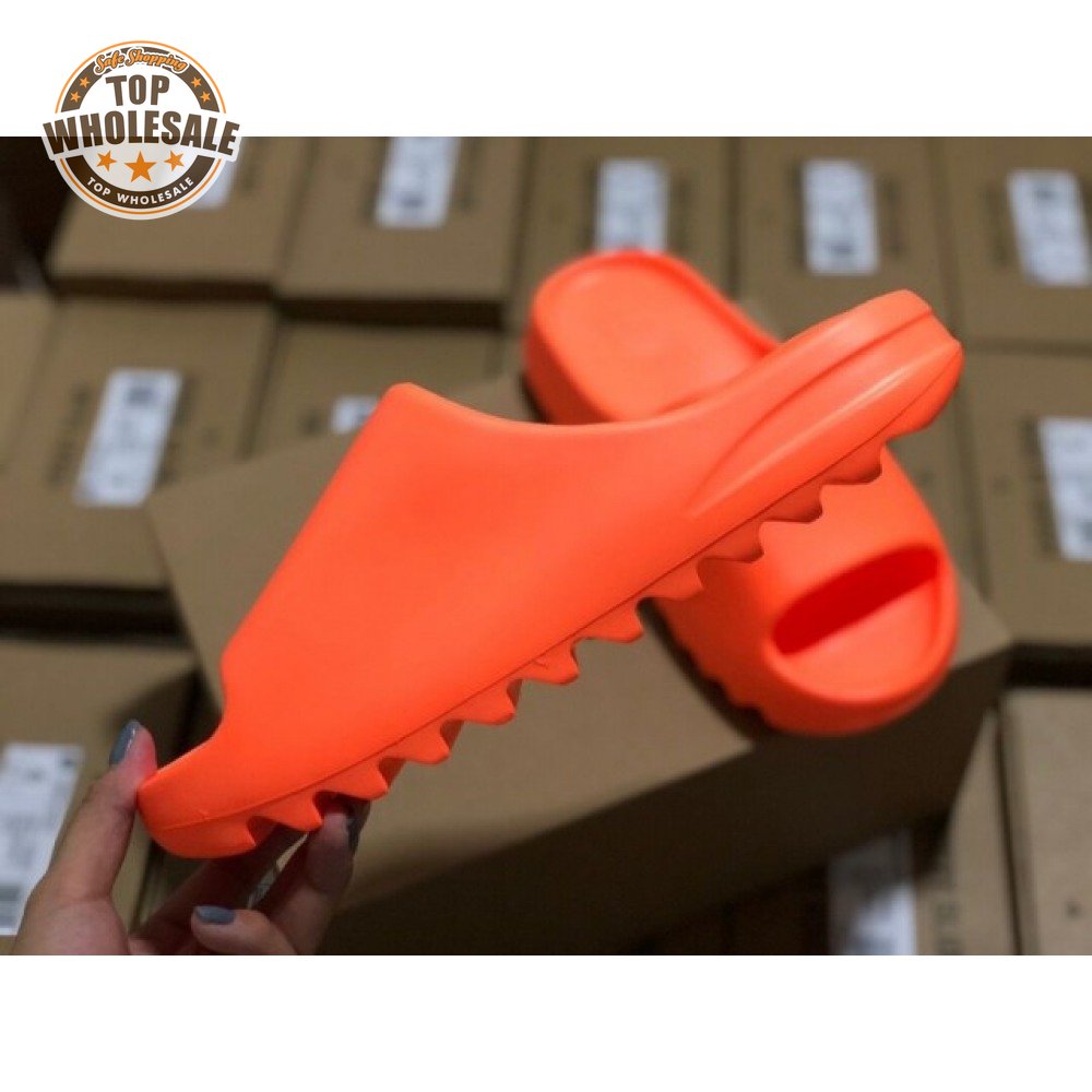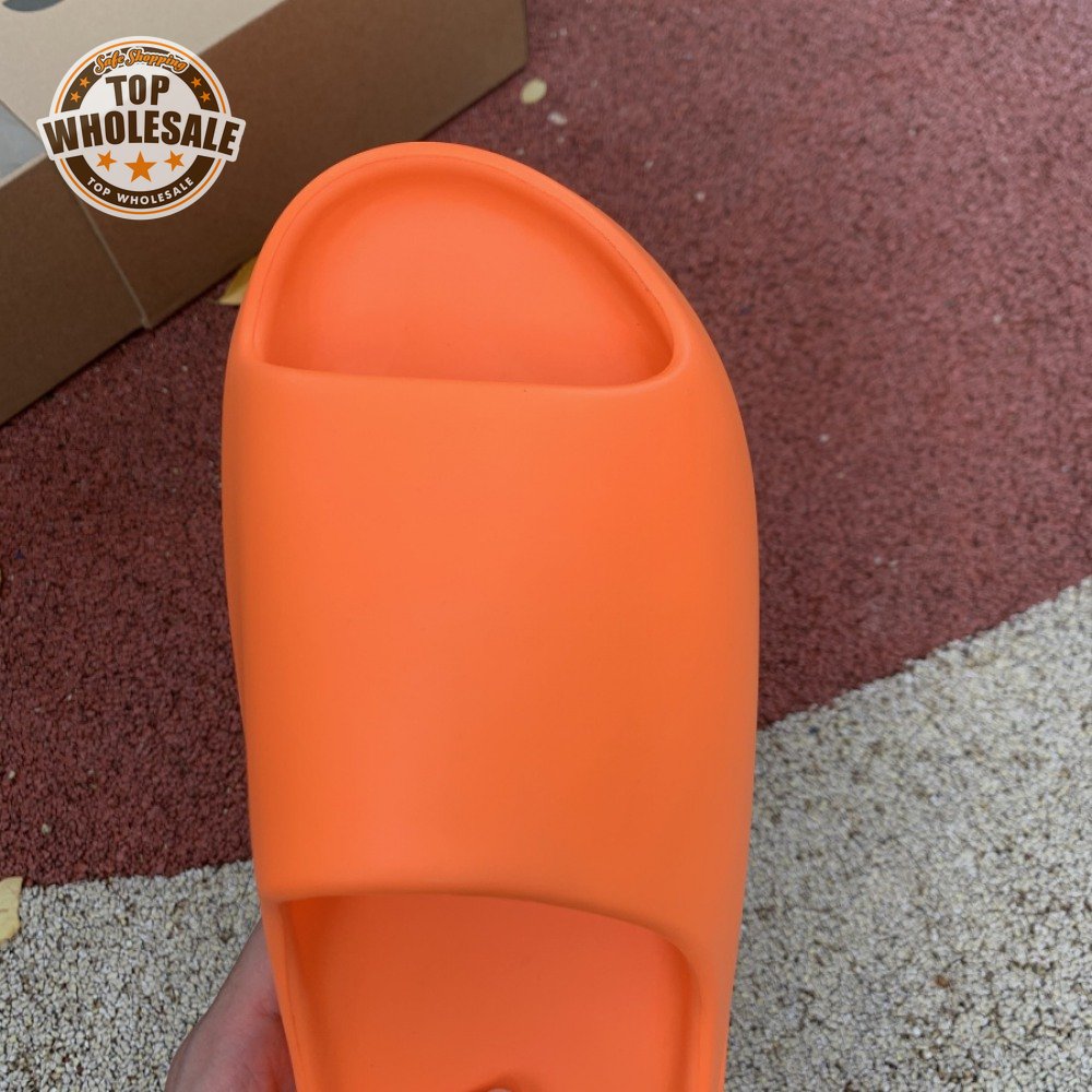 The adidas Yeezy Slide "Enflame Orange" updates the minimalist slip-on with a deep citrus hue. The lightweight build, formed with injected EVA, features breathable open-toe construction and a plush footbed for soft landings. The latter is marked with adidas" three-stripe logo, representing the only bit of exterior branding. Pronounced flex grooves distinguish the outsole, offering improved cushioning and durable traction.