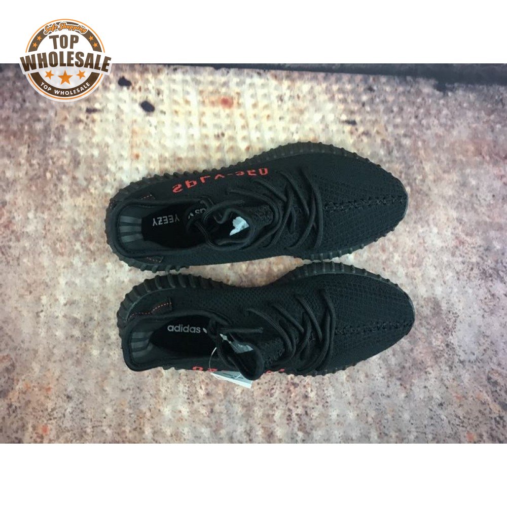 The adidas Yeezy Boost 350 V2 "Bred" delivers a simplistic colorway of the minimalist lace-up, highlighted by a black Primeknit upper accented with a pronounced center seam and red SPLY-350 branding on the lateral quarter panel. A pull tab at the heel features crimson embroidered detailing for a secondary pop of color. The lightweight build is mounted on a full-length Boost midsole, wrapped in semi-translucent black rubber for added durability and support. The original launch date was February 11, 2017, with a restock release on December 5, 2020.