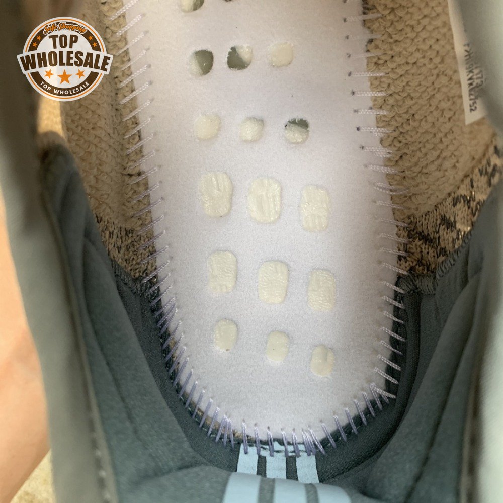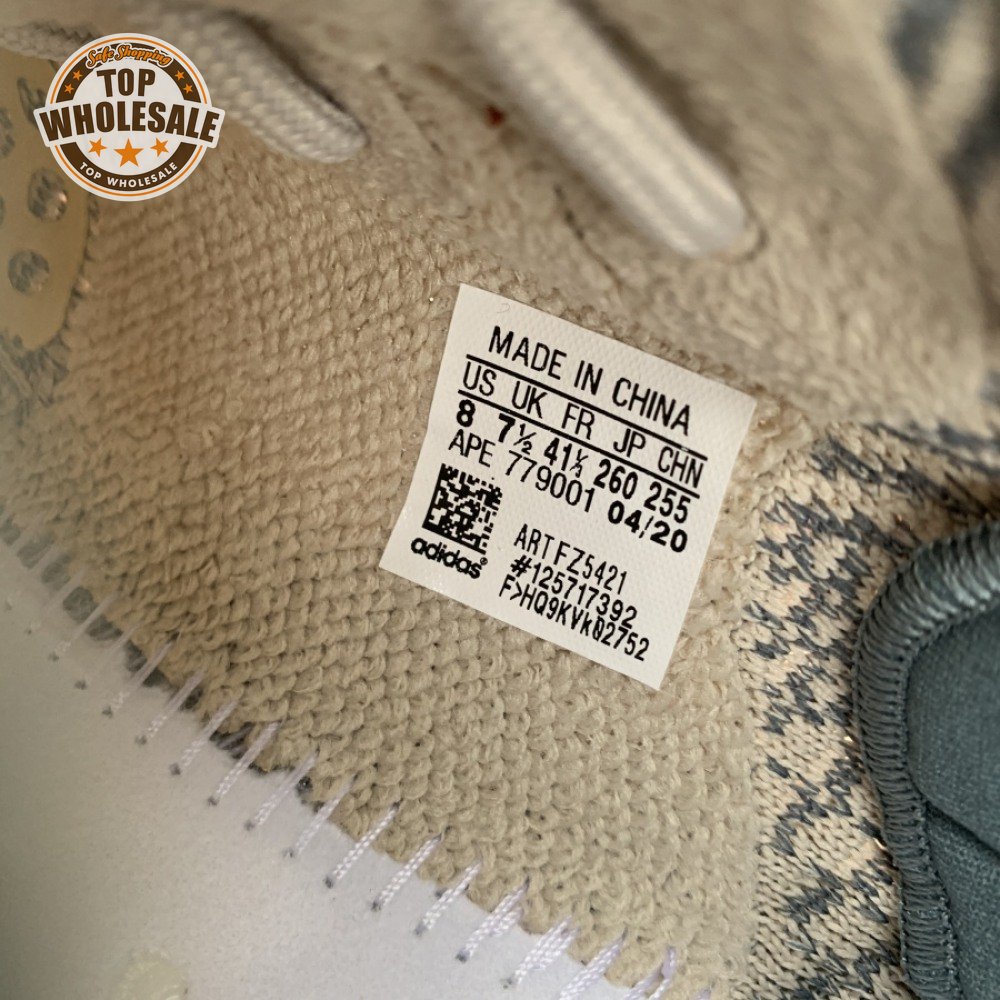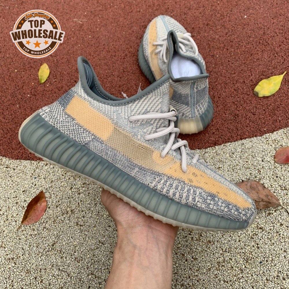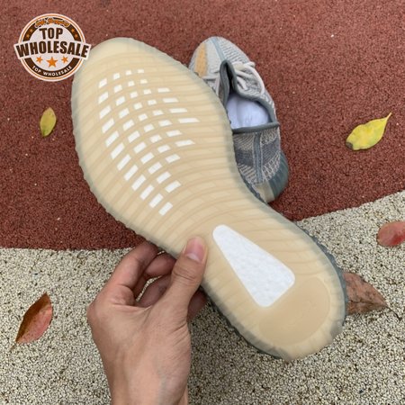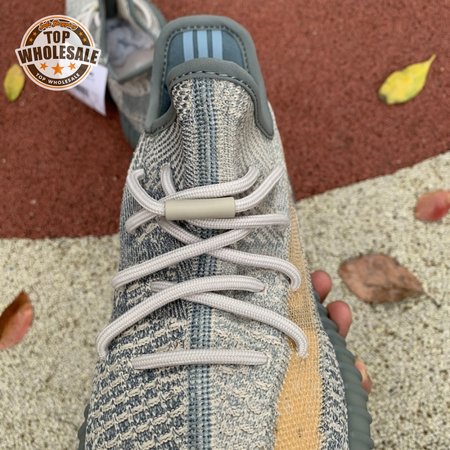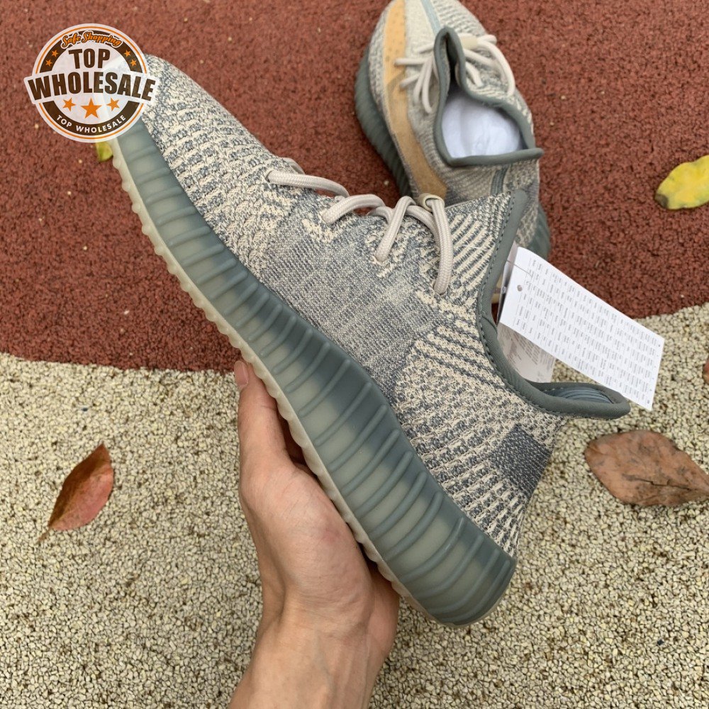 The adidas Yeezy Boost 350 V2 "Israfil" features a patchwork-like composition on the Primeknit upper, constructed from a two-tone blend of tan and grey yarns. The neutral hues are enlivened by a streak of yellow on the signature post-dyed monofilament side stripe. Responsive cushioning comes courtesy of the standard full-length Boost midsole, encased in a semi-translucent rubber sidewall. A grippy gum rubber outsole provides durable traction underfoot.