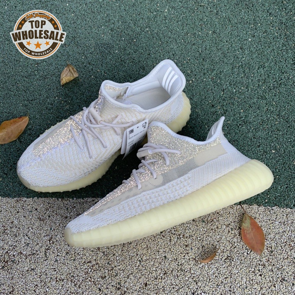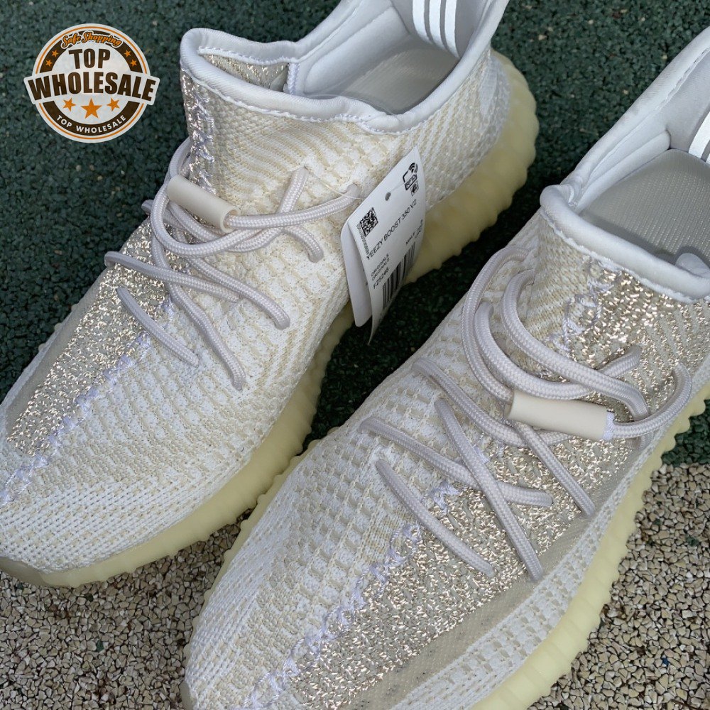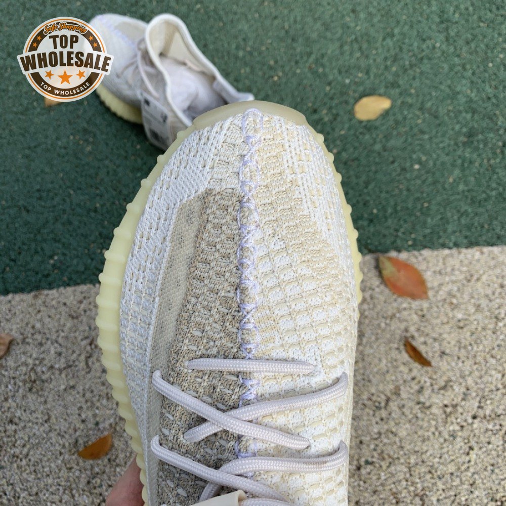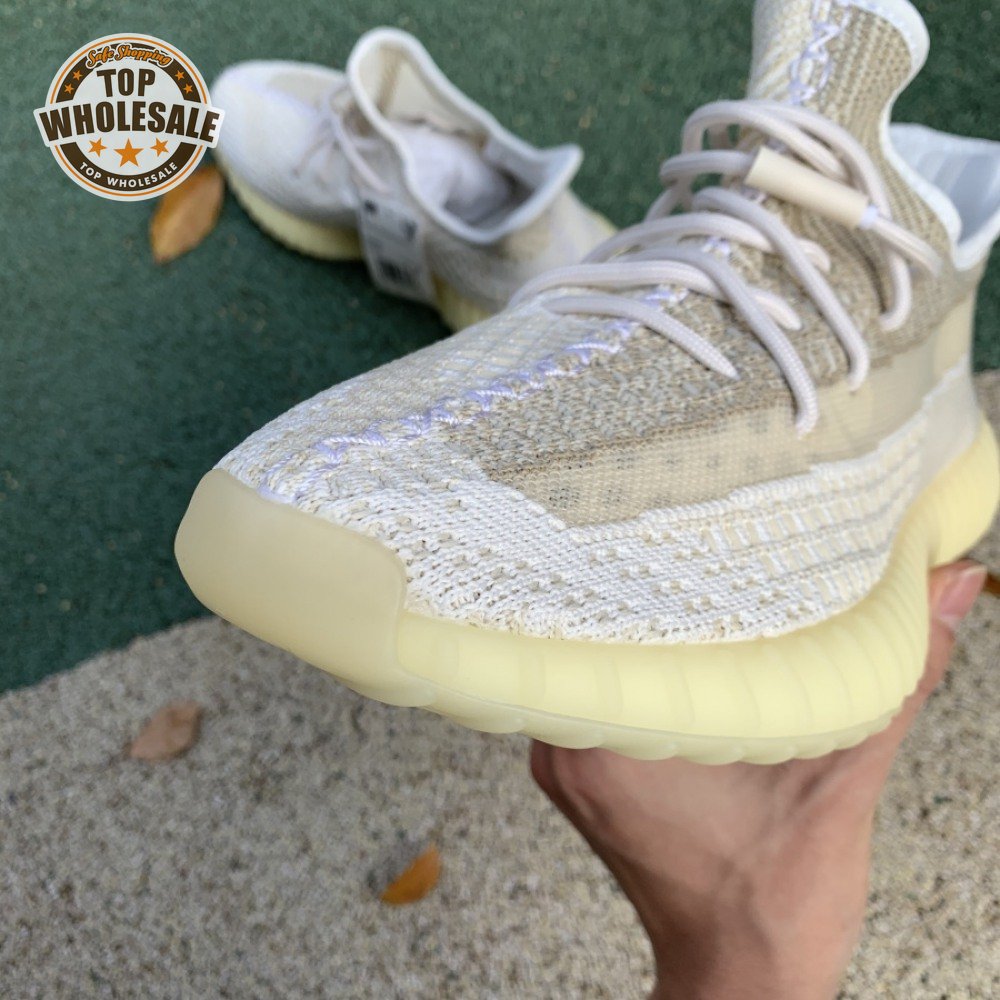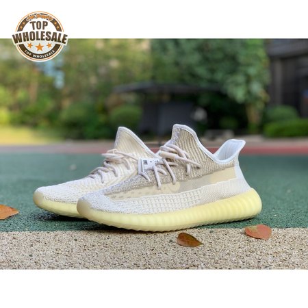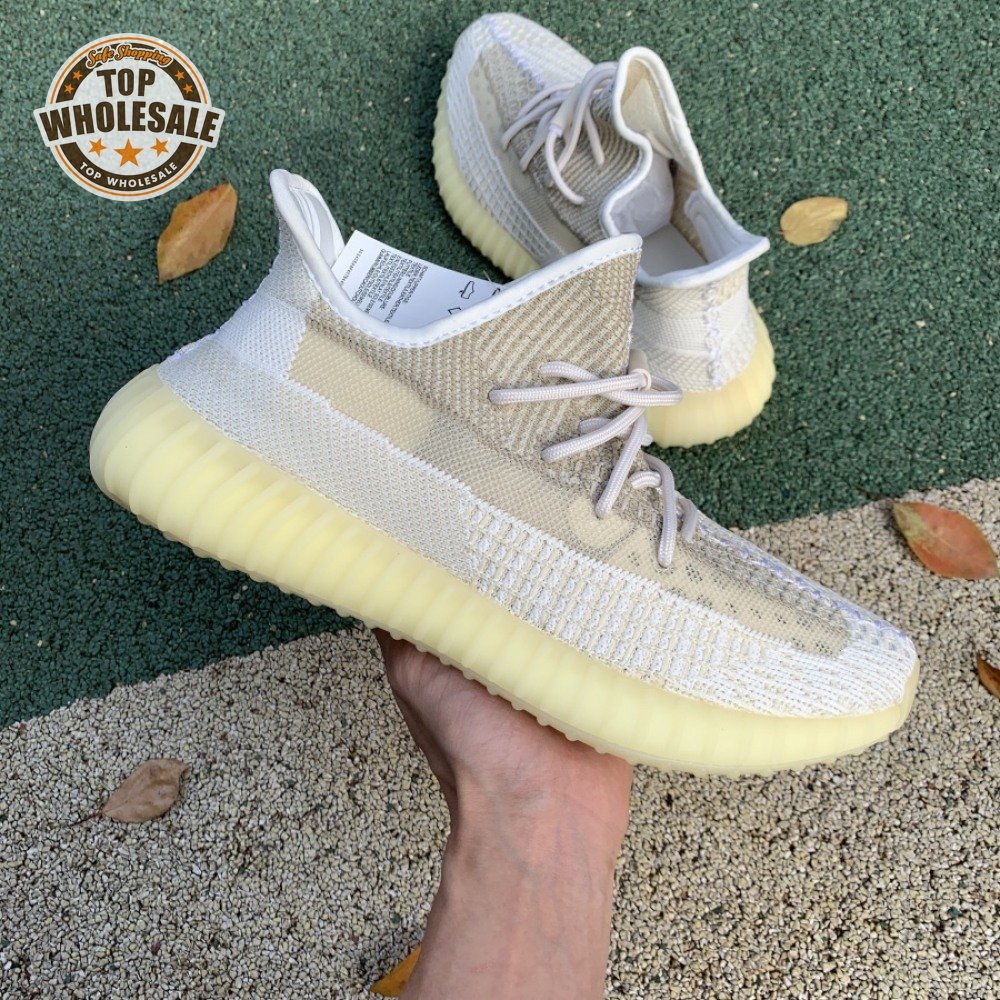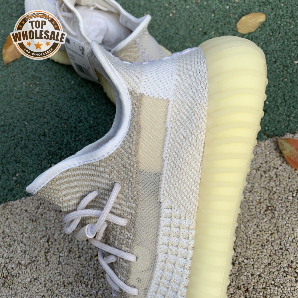 The adidas Yeezy Boost 350 V2 "Natural" presents an understated colorway of the lifestyle silhouette, featuring a stretchy Primeknit upper in a blend of varying cream and beige tones. On the sneaker"s lateral side, a post-dyed monofilament side stripe adds a see-through element to the lightweight build. Details include no-tie bungee laces and adidas" three-stripe branding on the interior heel. A full-length Boost midsole, wrapped in a yellow-tinted rubber cage, delivers a responsive ride.