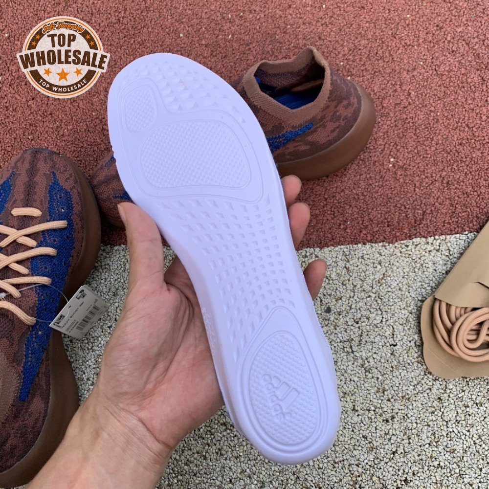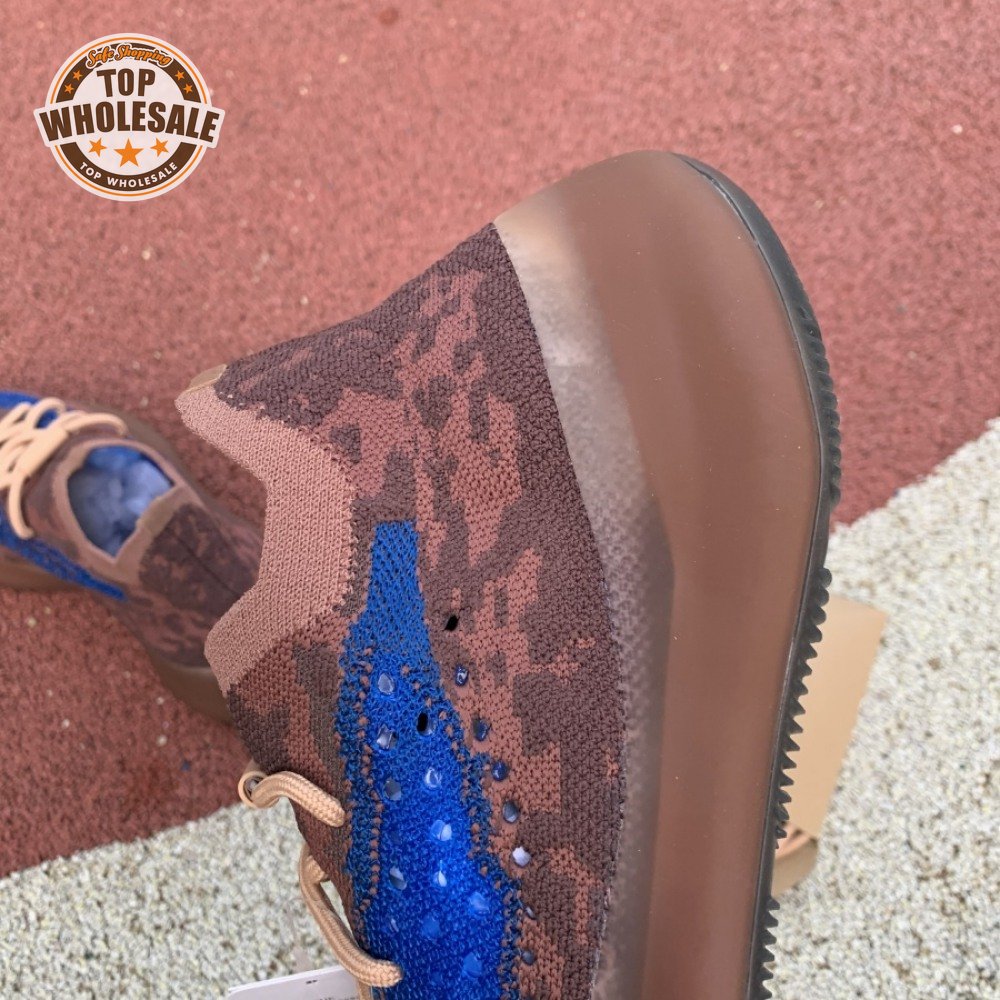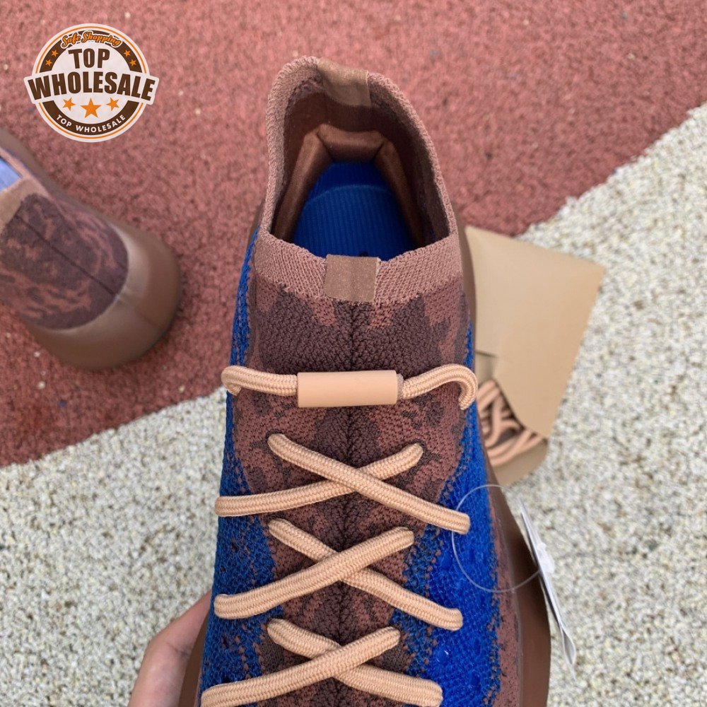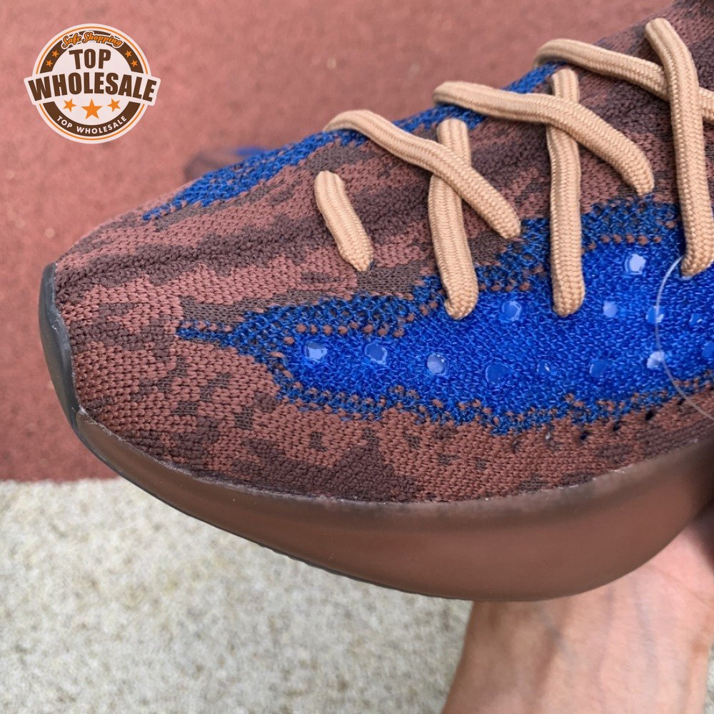 The adidas Yeezy Boost 380 "Azure Non-Reflective" utilizes a re-engineered Primeknit upper finished in muddy brown tones. A contrasting splash of royal blue distinguishes the translucent monofilament window that"s woven into the lateral side of the sock-like construction. Responsive cushioning comes courtesy of a full-length Boost midsole, featuring an elevated heel for a fluid transition. Underfoot, a herringbone rubber outsole provides grippy traction. The Yeezy Boost 380 "Azure Non-Reflective" is a regional exclusive and only launched in Europe.