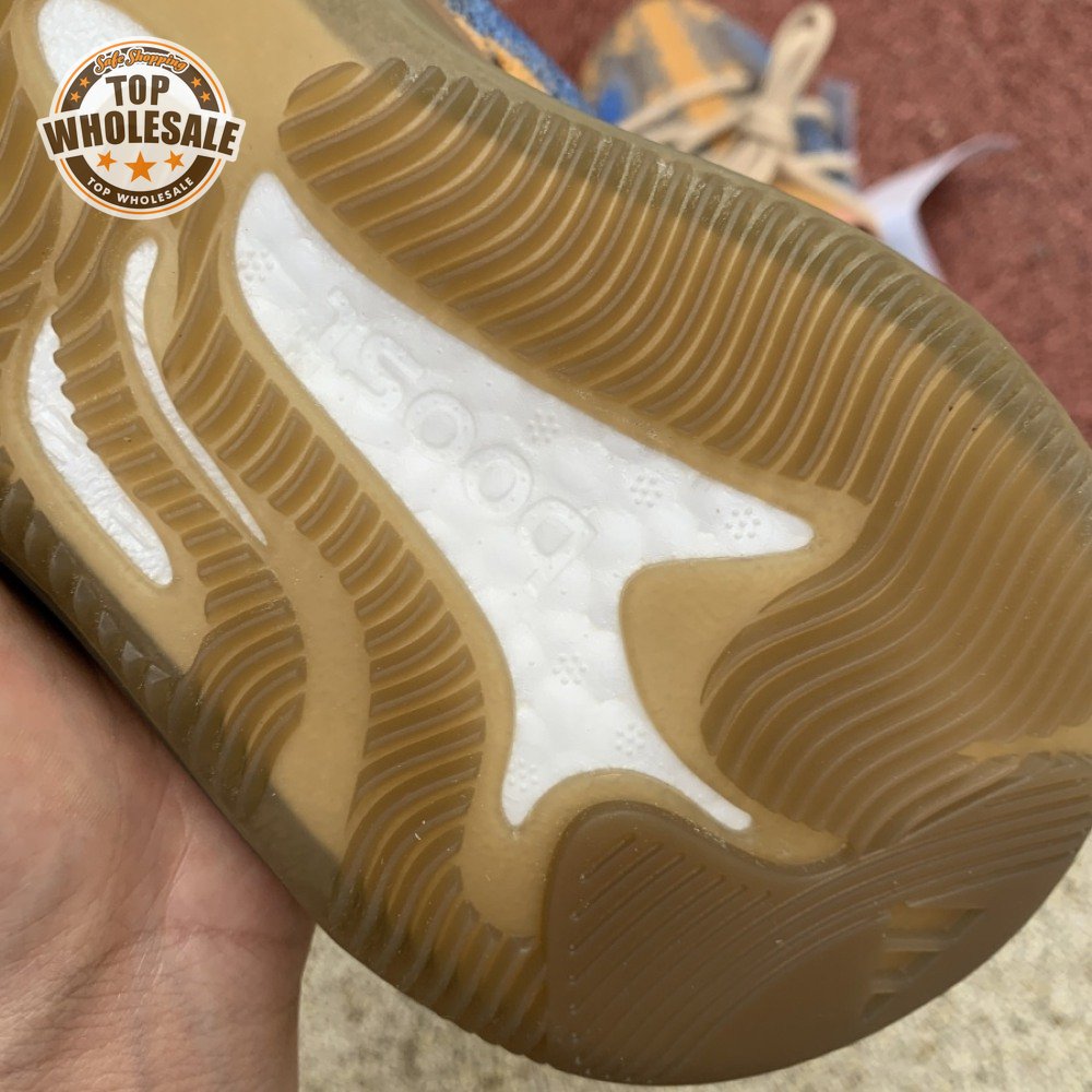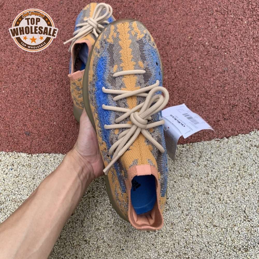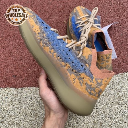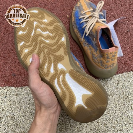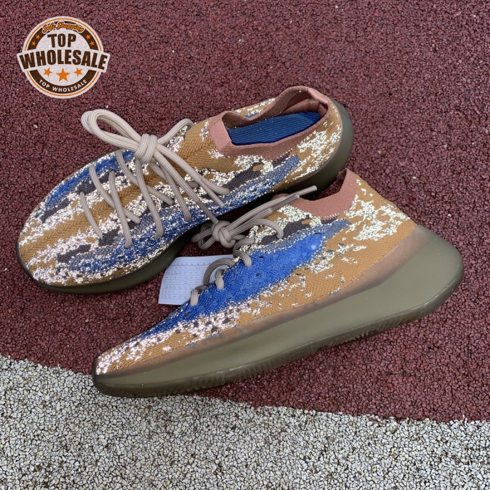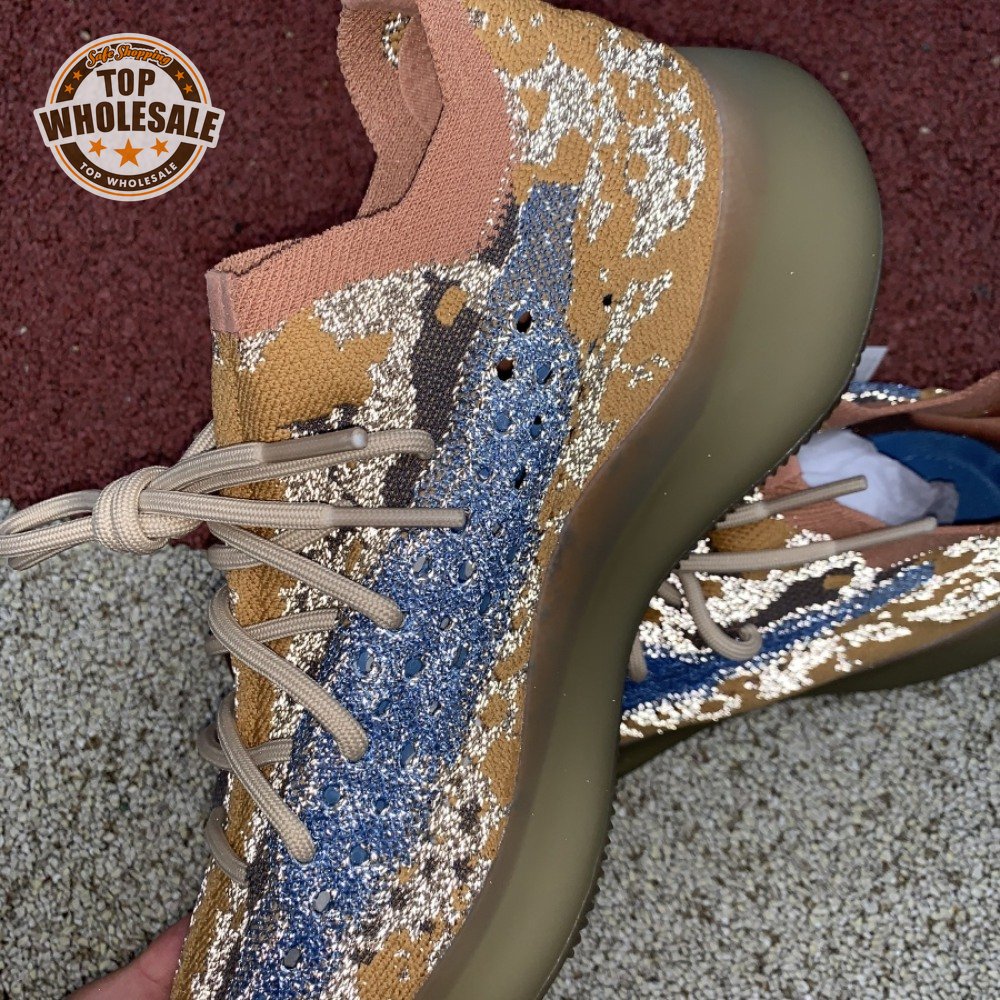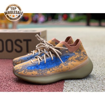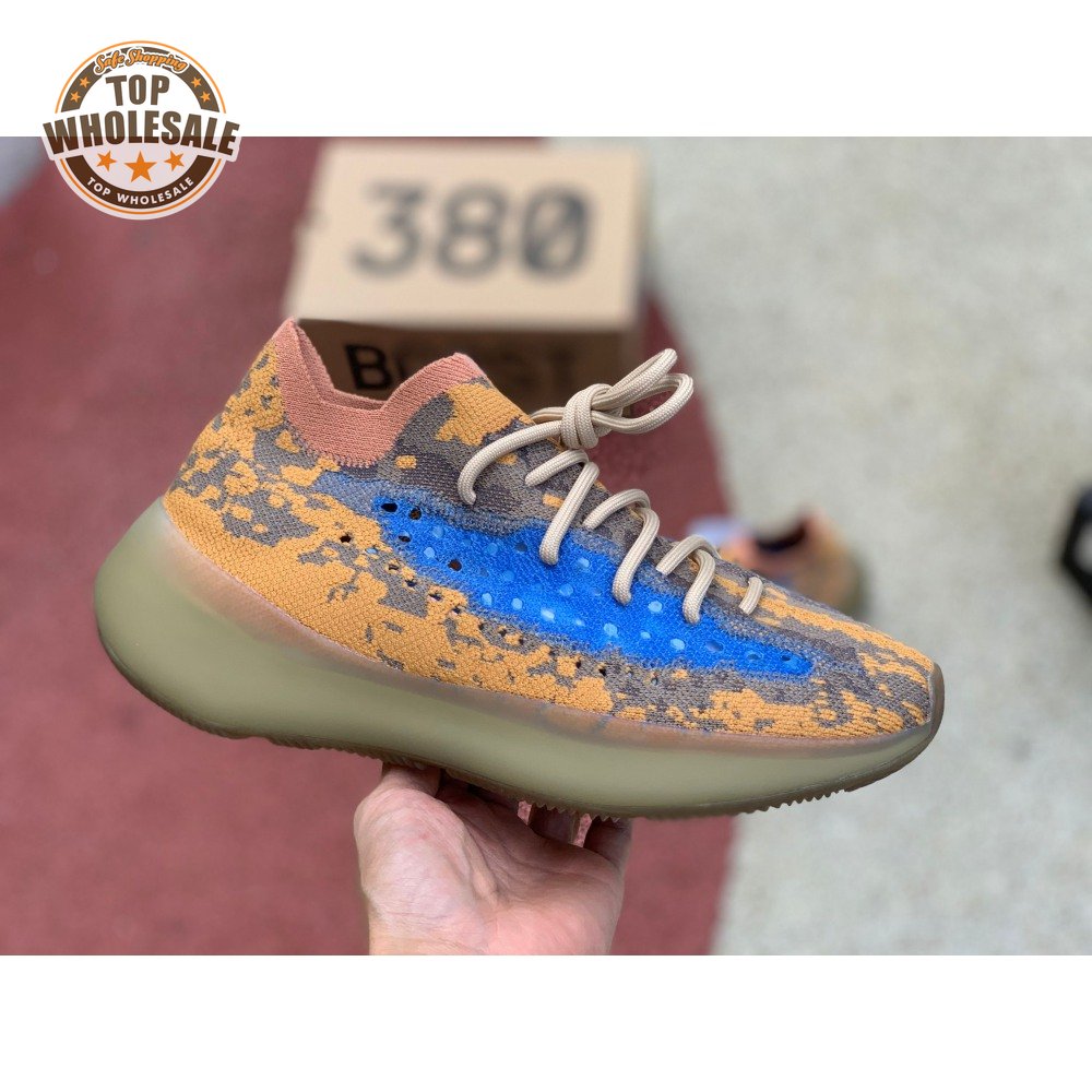 The adidas Yeezy Boost 380 "Blue Oat Reflective" makes use of a Primeknit upper in a blend of orange and brown hues, resulting in a unique camo-like pattern that"s enlivened with a contrasting pop of blue on the translucent monofilament window. Reflective thread is woven into the sock-like build, offering added visibility in low-light conditions. The responsive Boost midsole is encased in semi-translucent rubber and supported by a herringbone rubber outsole.