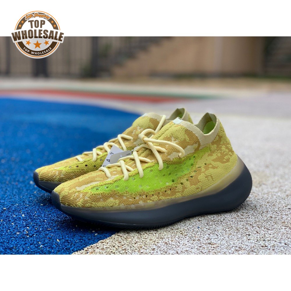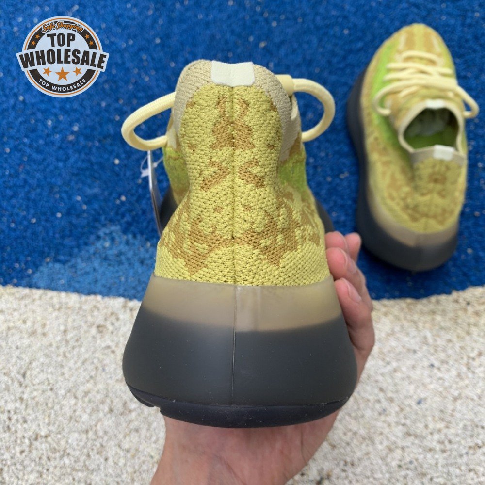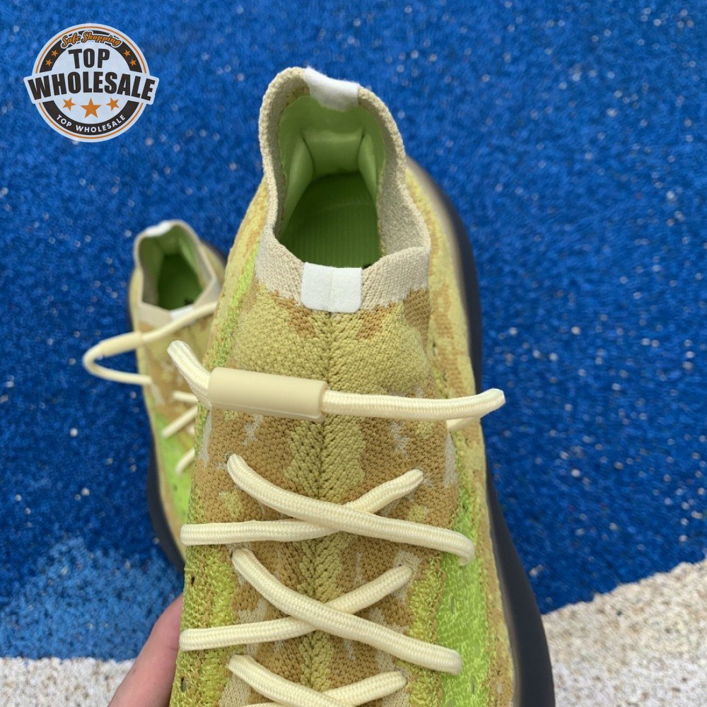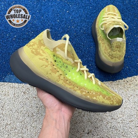 The adidas Yeezy Boost 380 "Hylte" features an eye-catching color scheme that strays from the signature Yeezy palette, which traditionally leans heavily on muted earth tones. A splash of fluorescent green is applied to the the sneaker"s translucent monofilament window, contrasted by the camo-like tan and yellow composition that makes up the Primeknit upper. Standard Boost cushioning is enveloped in grey rubber and reinforced with a herringbone-traction outsole. The Yeezy Boost 380 "Hylte" is a regional exclusive and only launched in North America and Latin America.