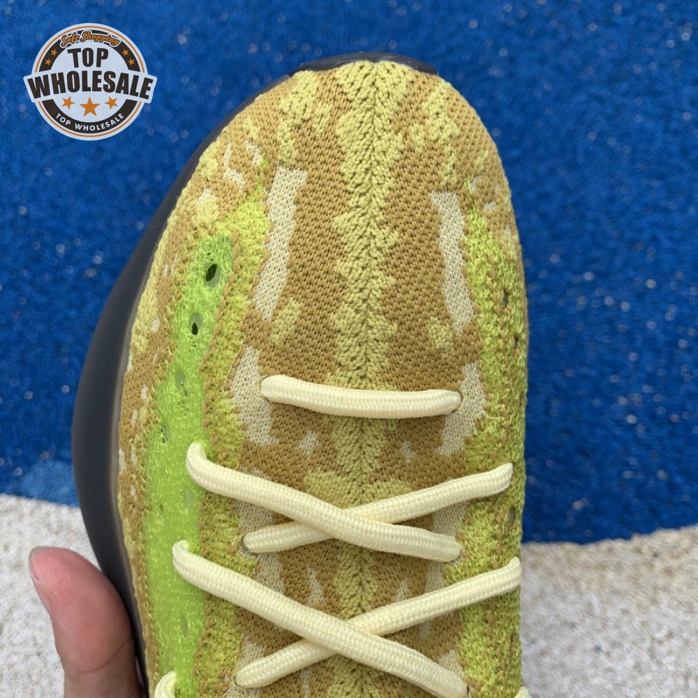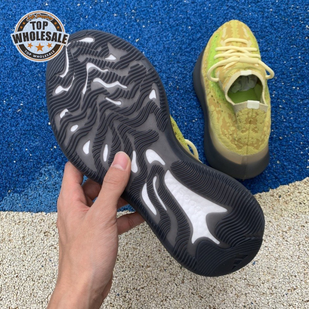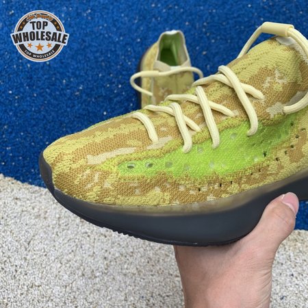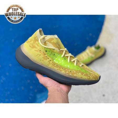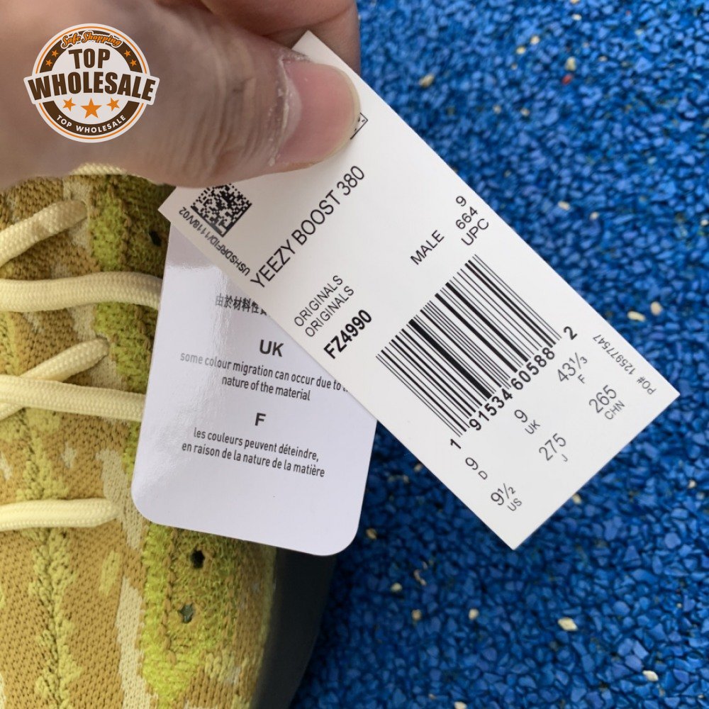 The adidas Yeezy Boost 380 "Hylte" features an eye-catching color scheme that strays from the signature Yeezy palette, which traditionally leans heavily on muted earth tones. A splash of fluorescent green is applied to the the sneaker"s translucent monofilament window, contrasted by the camo-like tan and yellow composition that makes up the Primeknit upper. Standard Boost cushioning is enveloped in grey rubber and reinforced with a herringbone-traction outsole. The Yeezy Boost 380 "Hylte" is a regional exclusive and only launched in North America and Latin America.