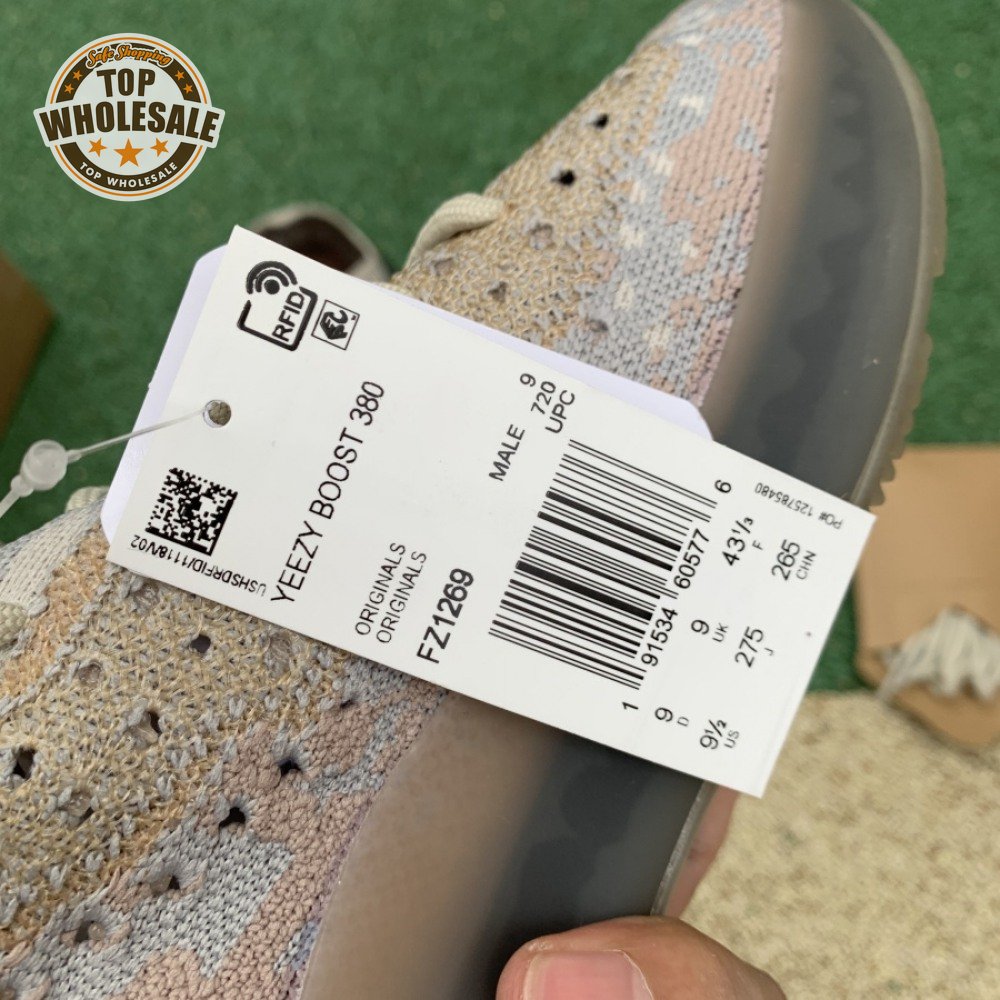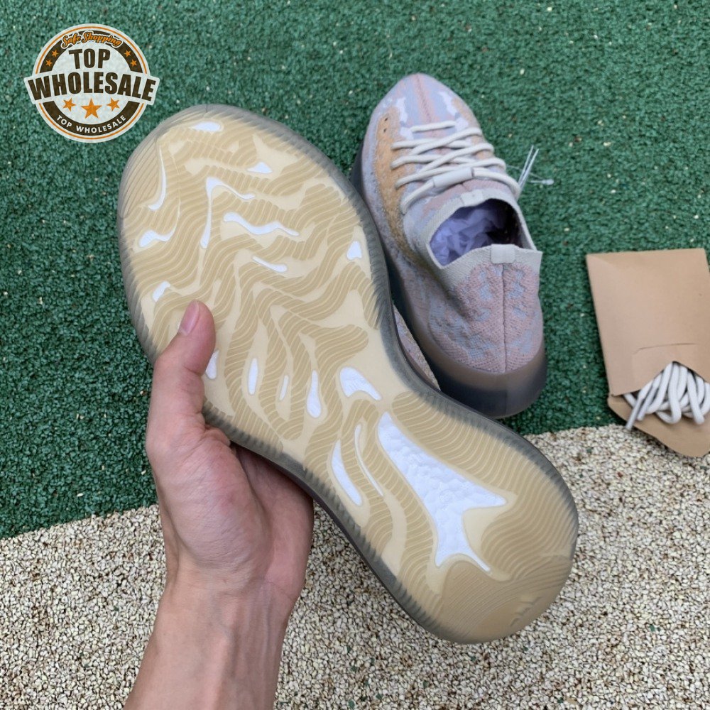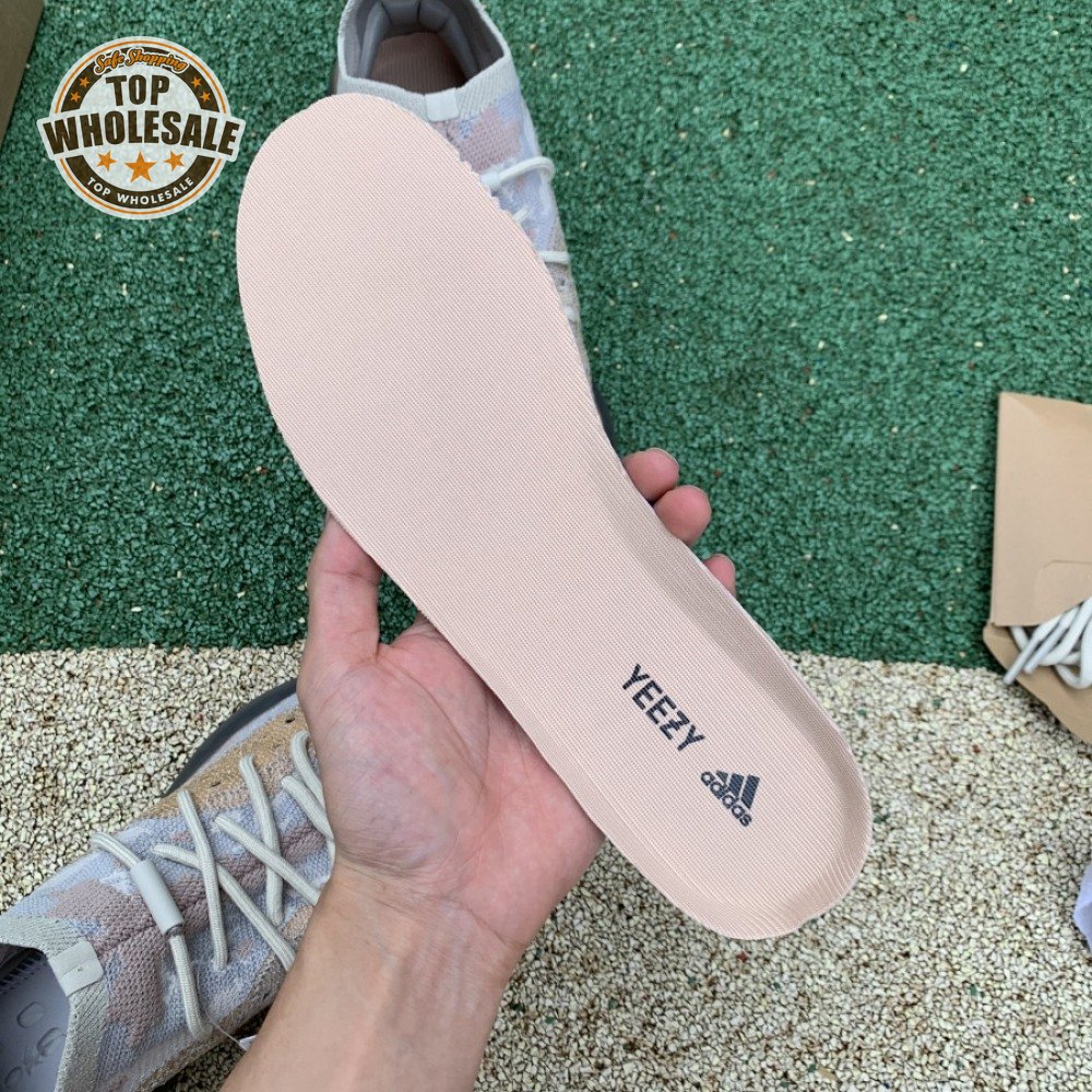The Yeezy Boost 380 "Pepper Non-Reflective" applies a neutral color scheme to its breathable Primeknit upper, featuring a snug, sock-like fit that allows for a secure fit with or without laces. A muddy tan finish distinguishes the sneaker"s translucent monofilament window, allowing the signature detail to stand out against a knit backdrop in lighter grey and Off-White tones. A full-length Boost midsole supports the lightweight build, equipped with a raised heel for a smooth ride.