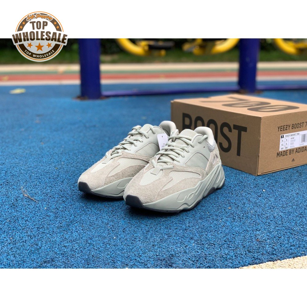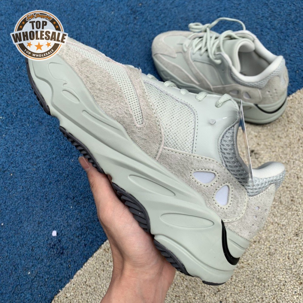 The Yeezy Boost 700 "Salt" follows a design trail originally blazed by the Yeezy 500 in November 2018. Like its predecessor, the lifestyle silhouette features a monochromatic light grey finish on a mesh base with tonal overlays in suede and leather. A sculpted midsole in matching grey, concealing full-length Boost cushioning within, features a subtle black accent, matched by the rubber outsole underfoot.