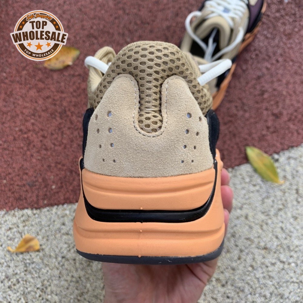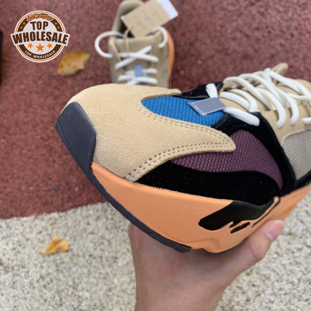 The adidas Yeezy Boost 700 "Sun" treats the lifestyle runner to a lively color scheme that accentuates the silhouette"s multi-layered build. The majority of the mesh and leather upper is rendered in varying shades of yellow, contrasted by a black suede overlay that extends to mesh forefoot panels in blue and teal. A clashing coral finish is applied to the bulky midsole, featuring full-length drop-in Boost cushioning for a smooth ride. Underfoot, a herringbone rubber outsole delivers optimal grip.