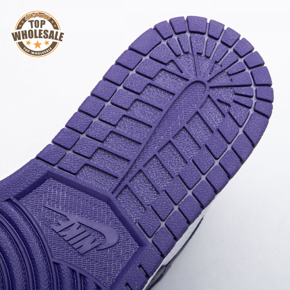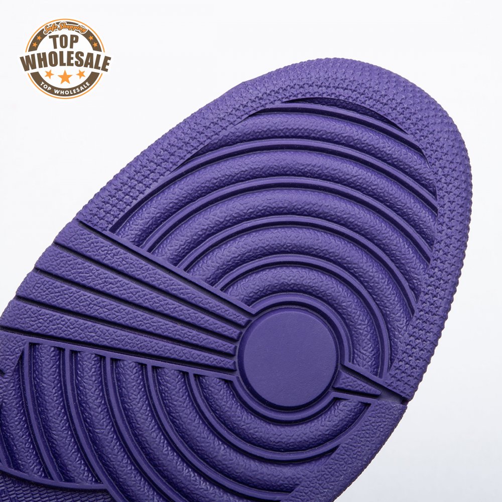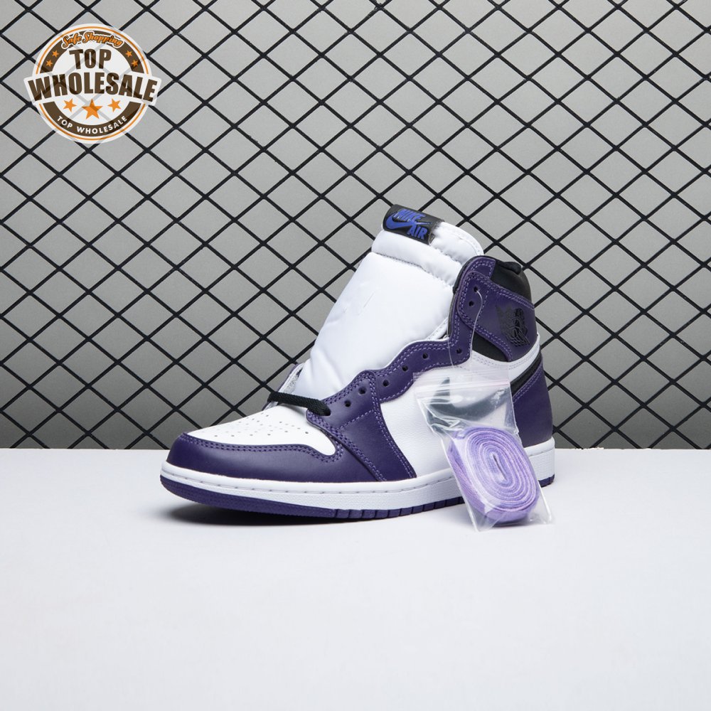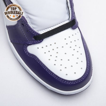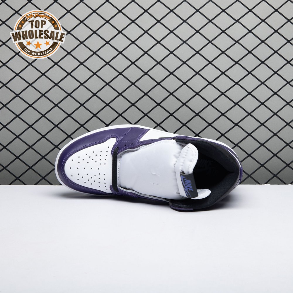 Launching in 2020, the Air Jordan 1 Retro High OG 'Court Purple 2.0' is a sequel of sorts to the 2018 colorway that also featured the same violet accents. Unlike its predecessor, this pair makes use of color blocking reminiscent of the OG "Chicago" colorway, with Court Purple replacing the red paneling of the original. The kicks are finished with a black Nike Swoosh and matching black at the laces and padded collar.