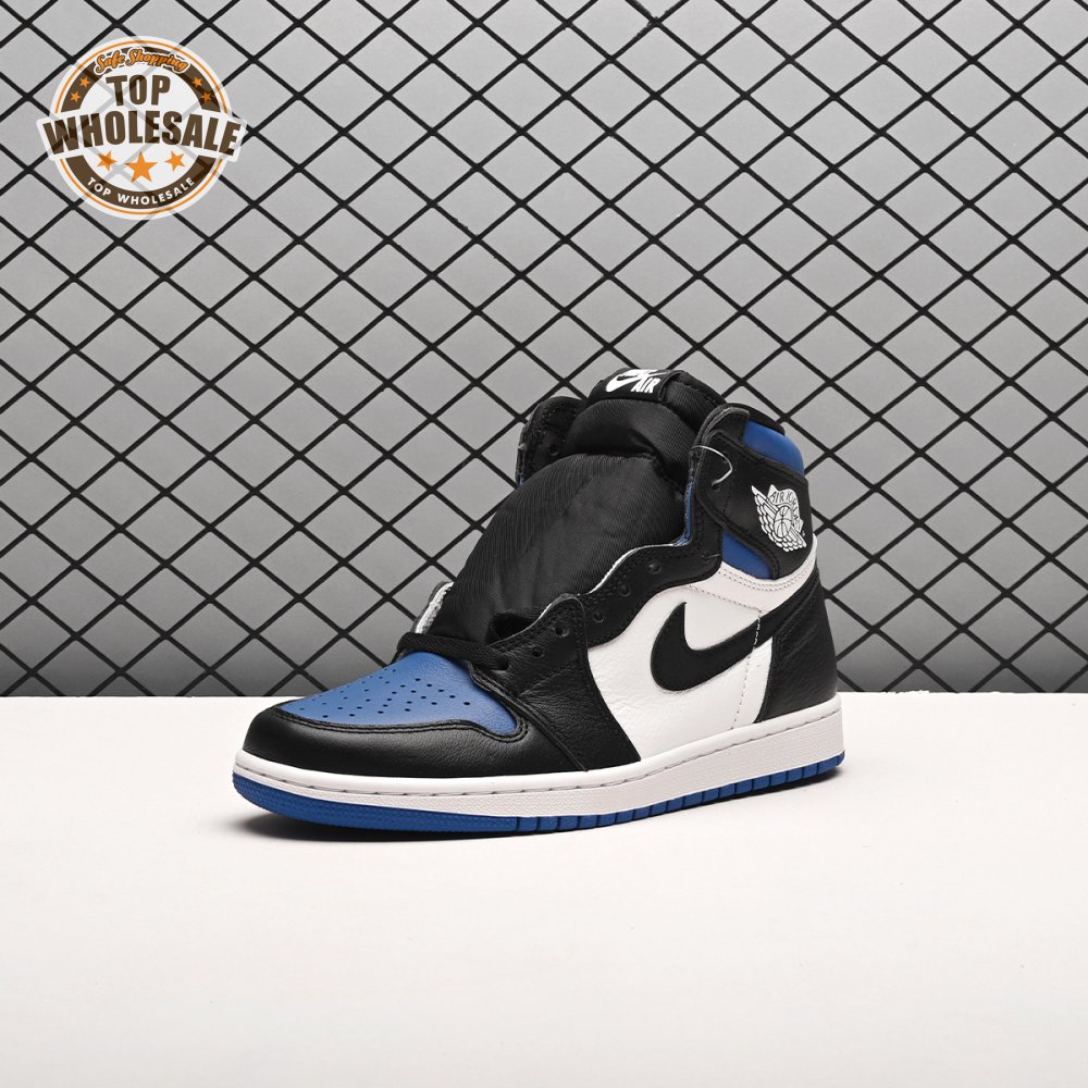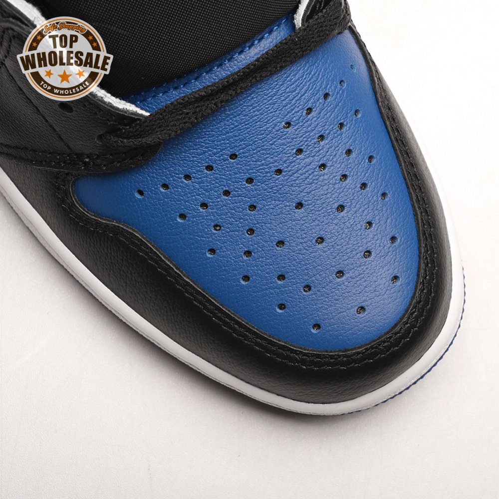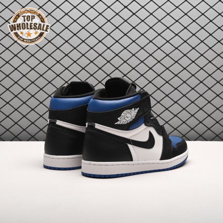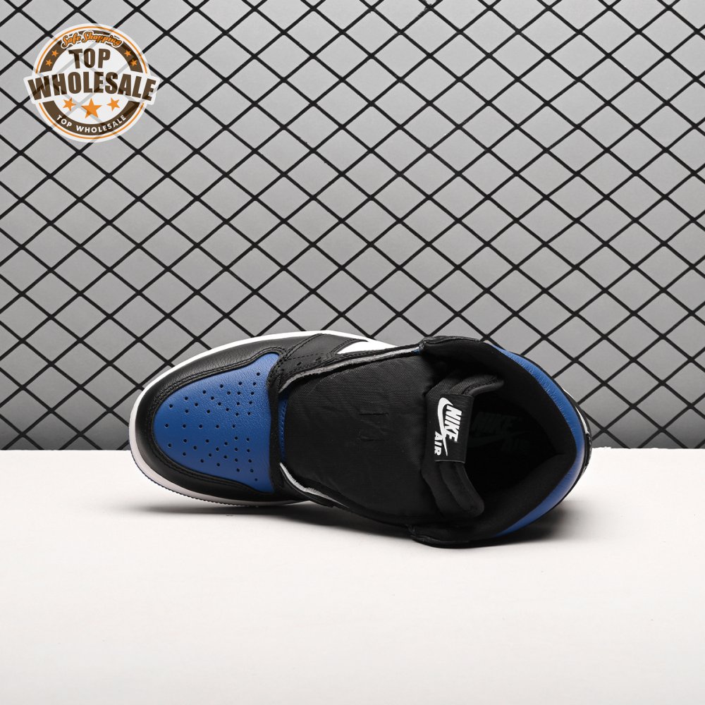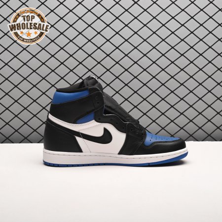 The Air Jordan 1 Retro High OG 'Royal Toe' applies a familiar blend of colors to the iconic silhouette. The all-leather upper features a white base with contrasting black overlays and pops of Game Royal at the collar, toe box and rubber outsole. A lightly padded nylon tongue in black is topped with a Nike Air tongue tag, while the classic Jordan Wings logo appears in white on the lateral collar flap.