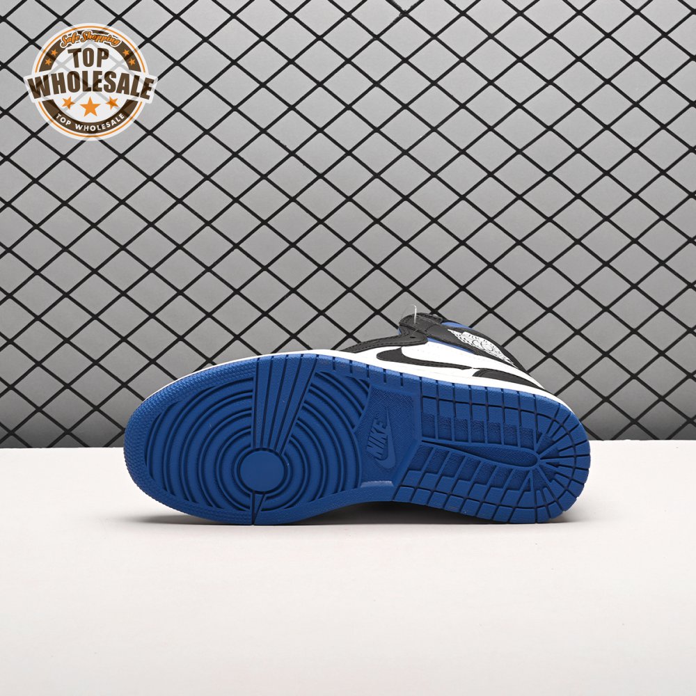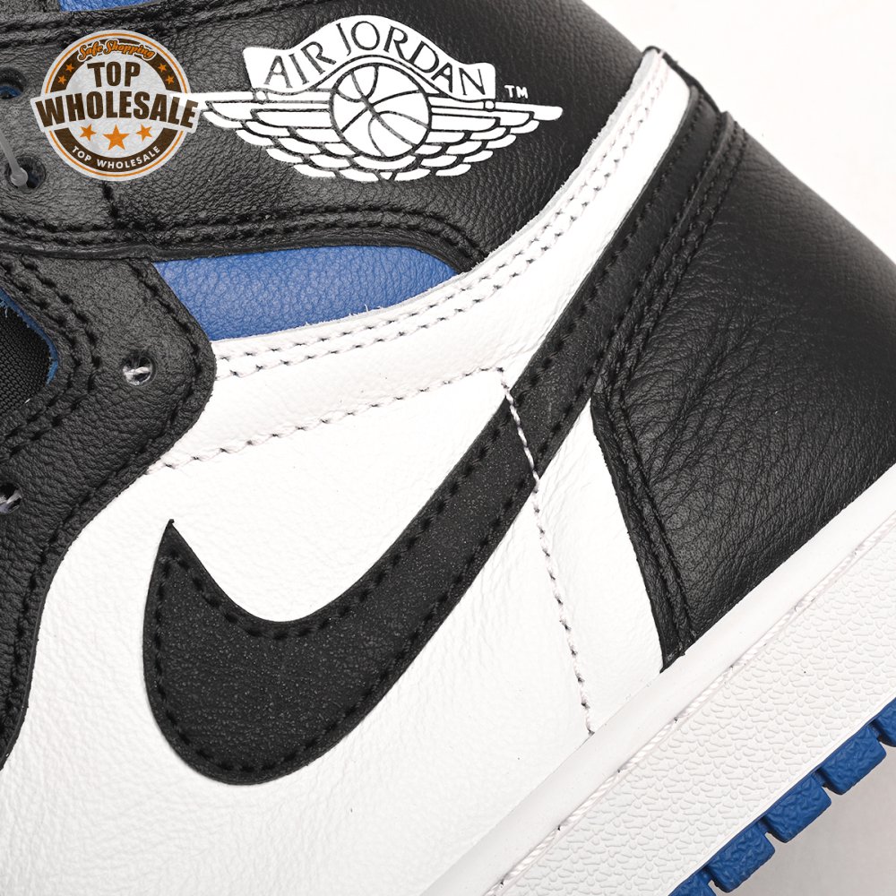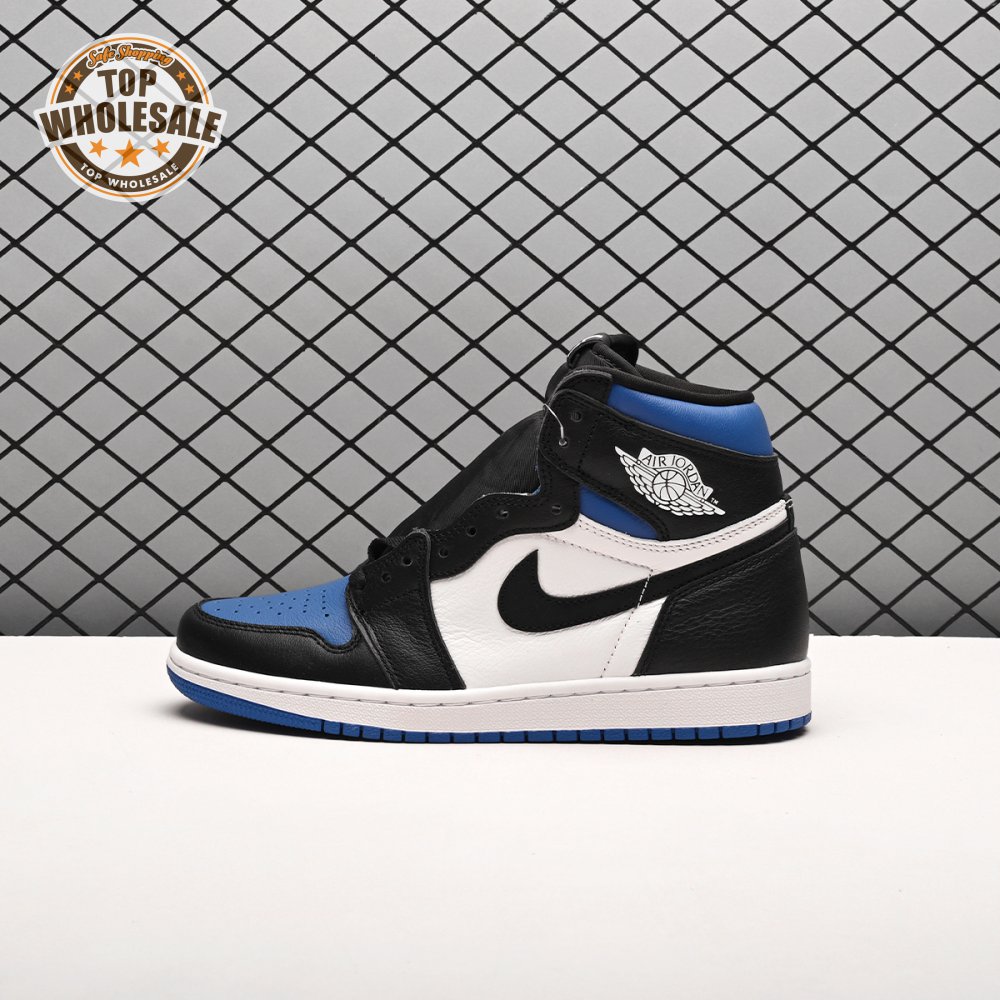The Air Jordan 1 Retro High OG 'Royal Toe' applies a familiar blend of colors to the iconic silhouette. The all-leather upper features a white base with contrasting black overlays and pops of Game Royal at the collar, toe box and rubber outsole. A lightly padded nylon tongue in black is topped with a Nike Air tongue tag, while the classic Jordan Wings logo appears in white on the lateral collar flap.