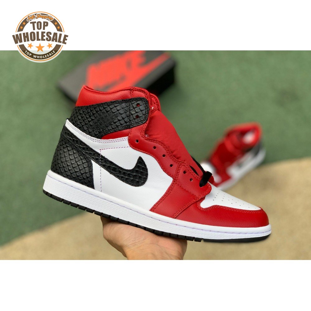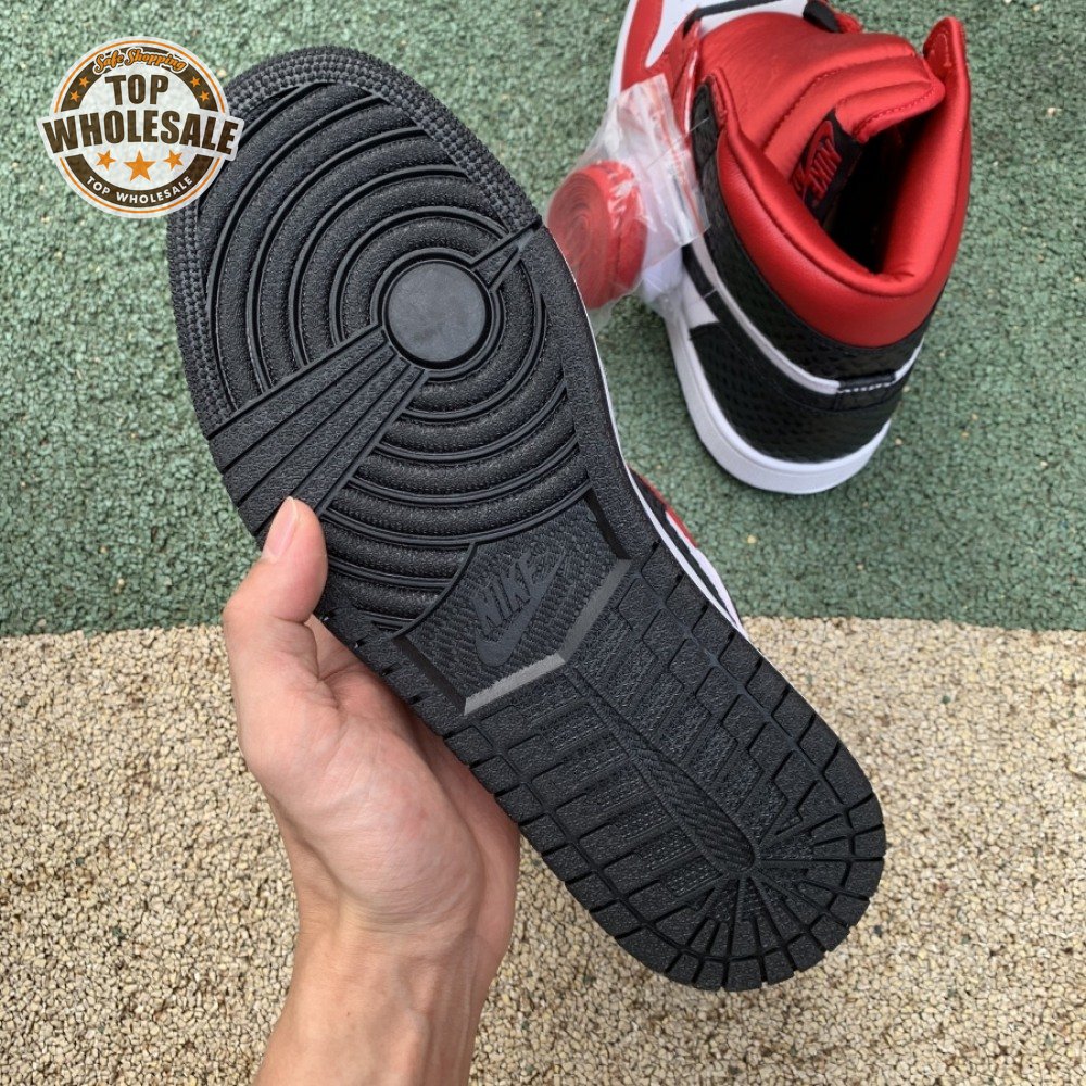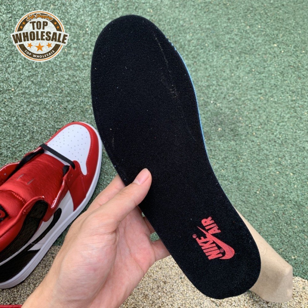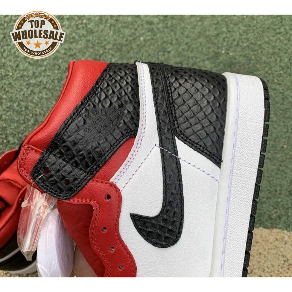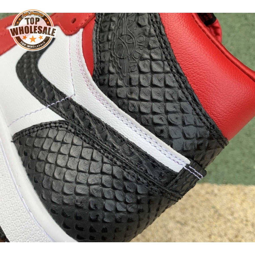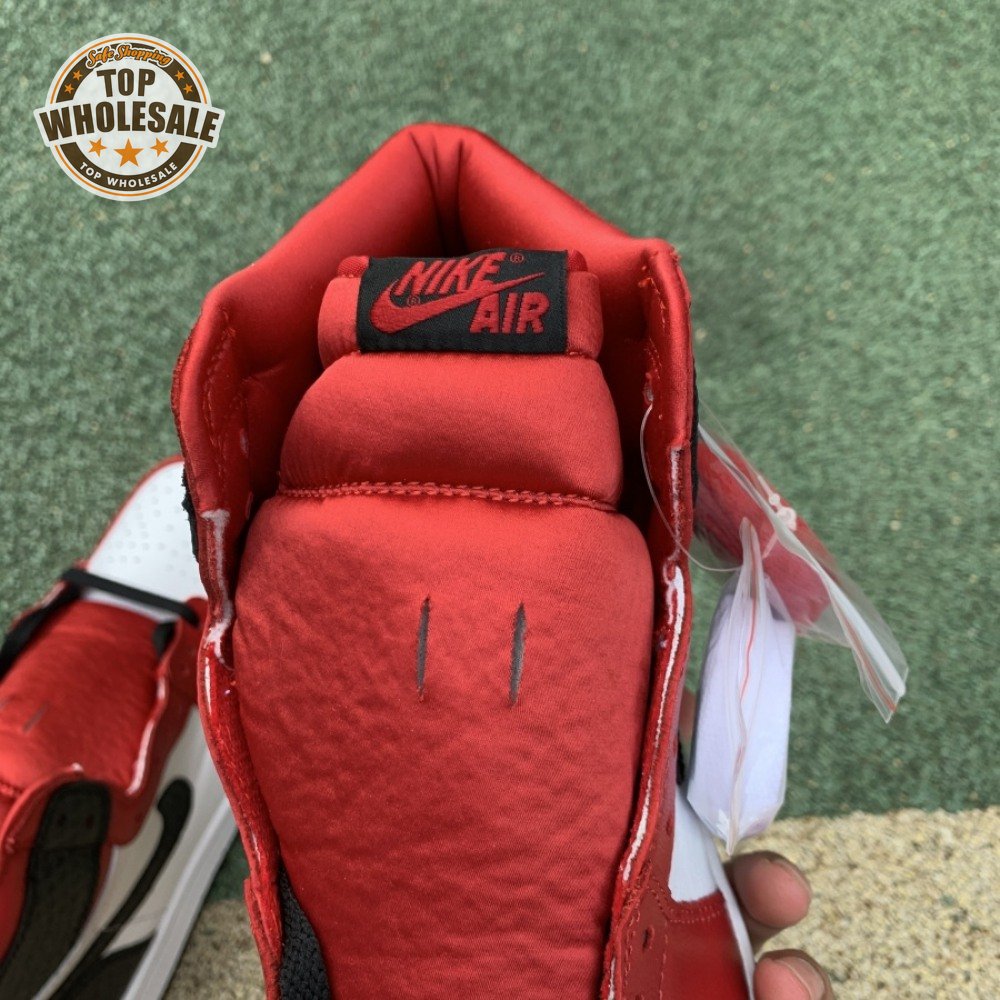 The women"s Air Jordan 1 Retro High OG "Satin Red" is the sequel to the women"s "Satin Black Toe" release from 2019. This pair features the same Chicago-based palette as its predecessor but the color blocking is flipped, so that the forefoot is finished in red and the heel and collar overlays are rendered in basic black. The latter two components " along with the Swoosh " are embellished with a snakeskin texture, while satin is utilized on the tongue and interior lining.