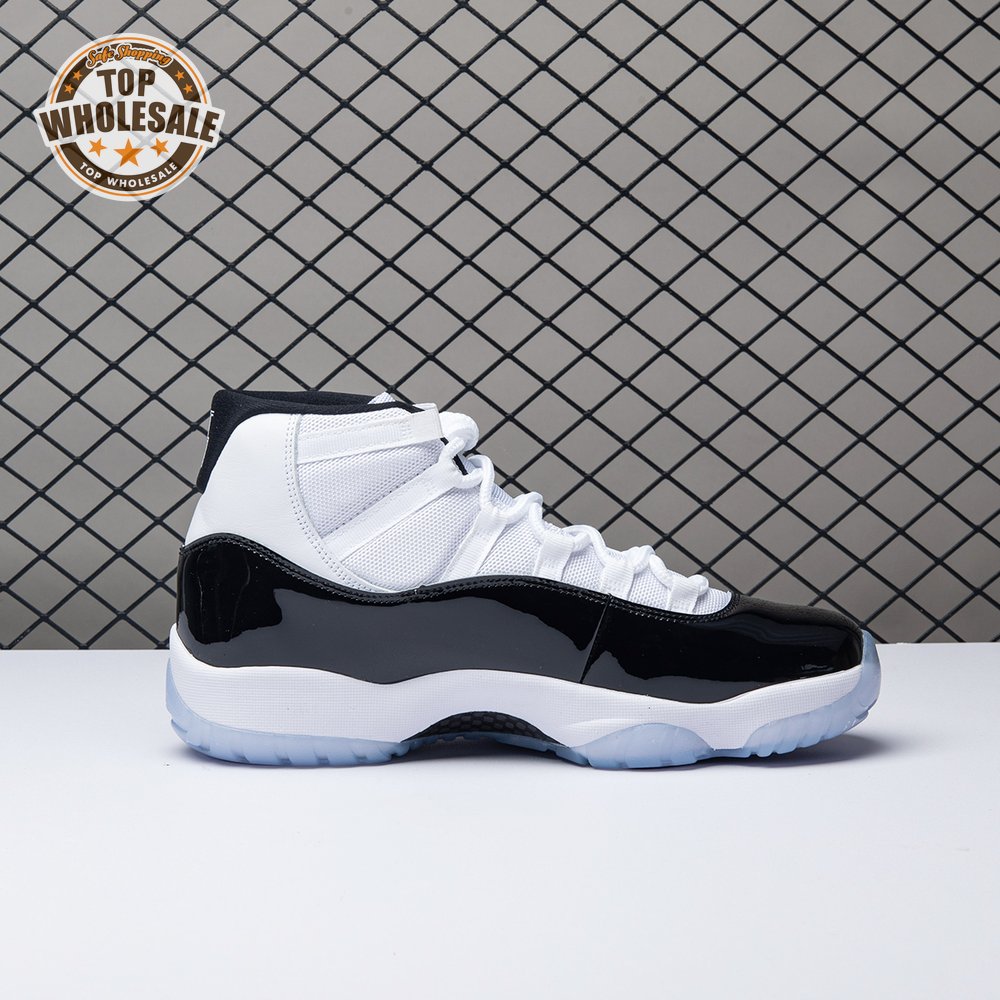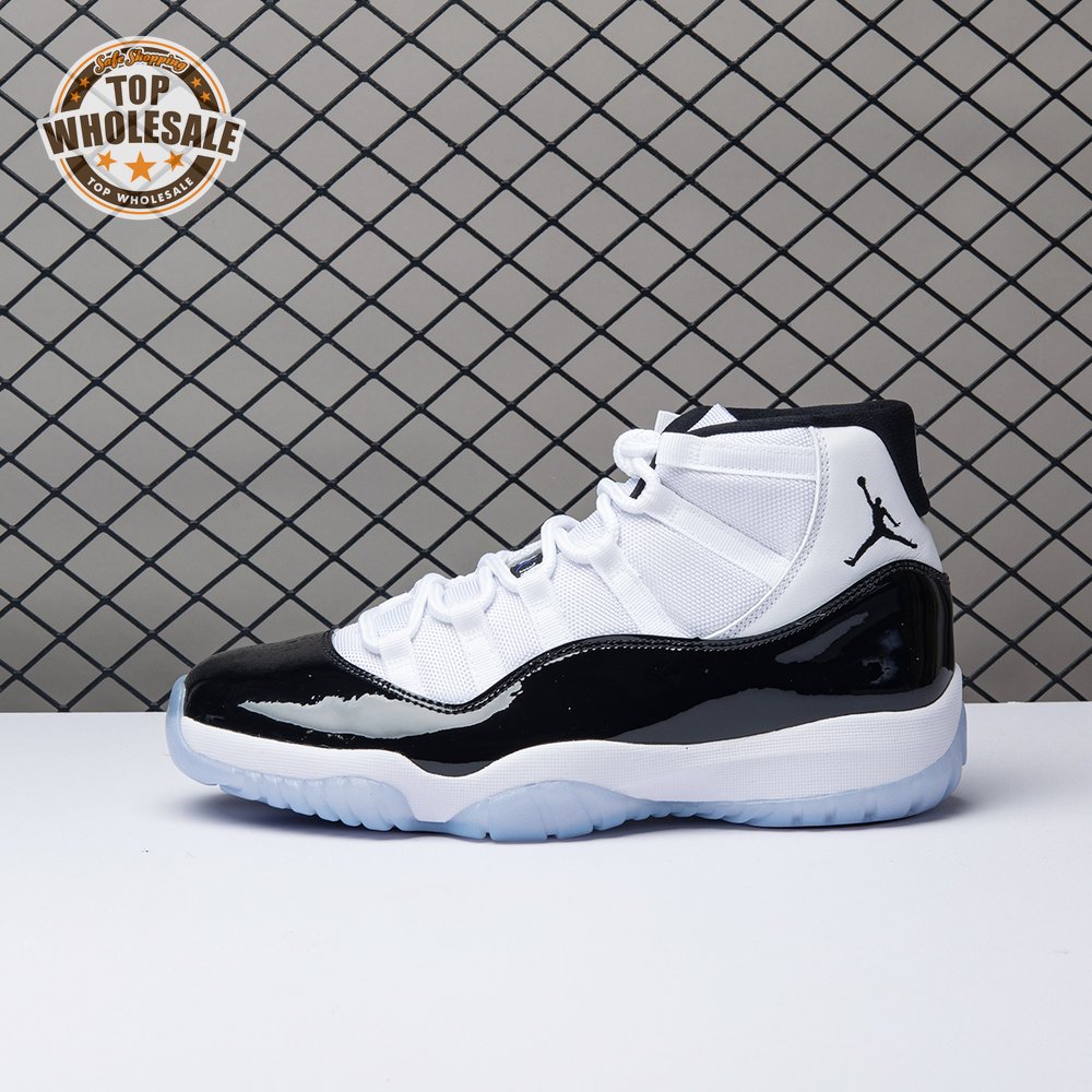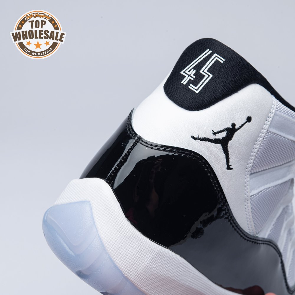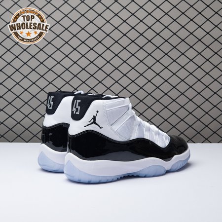 The 2018 edition of the Air Jordan 11 Retro "Concord" features "45" stamped on the black heel tab"a nod to the jersey number that Michael Jordan wore upon his return to basketball following his first retirement. The rest of the build keeps the shoe"s signature details intact, including a white ballistic mesh upper, black patent leather overlays and an icy translucent outsole underfoot.