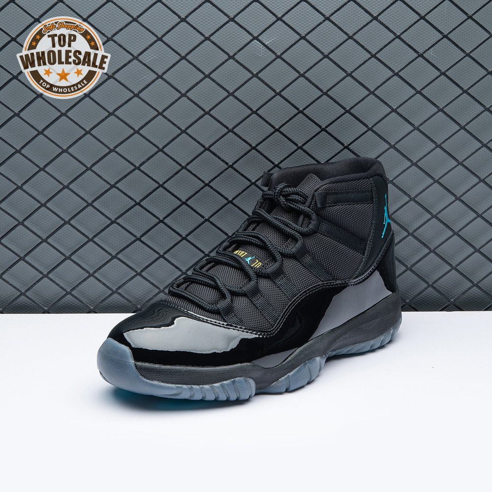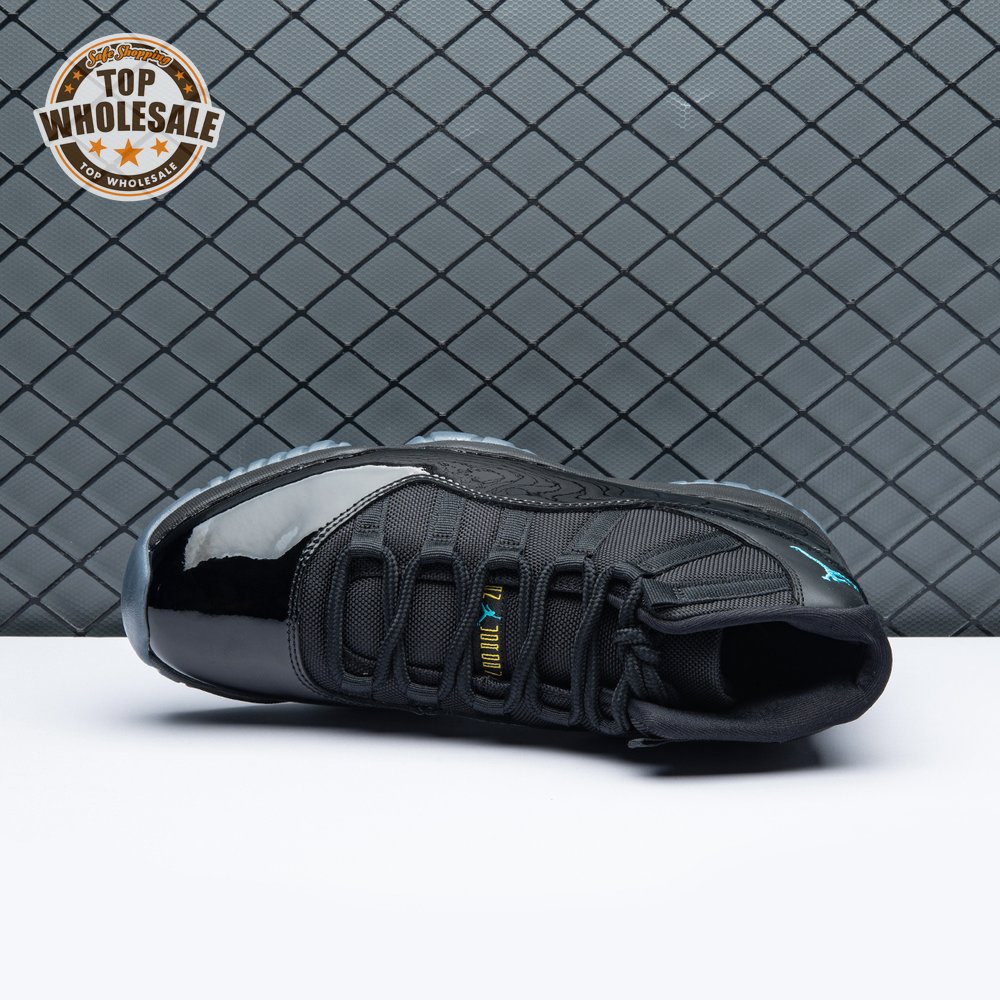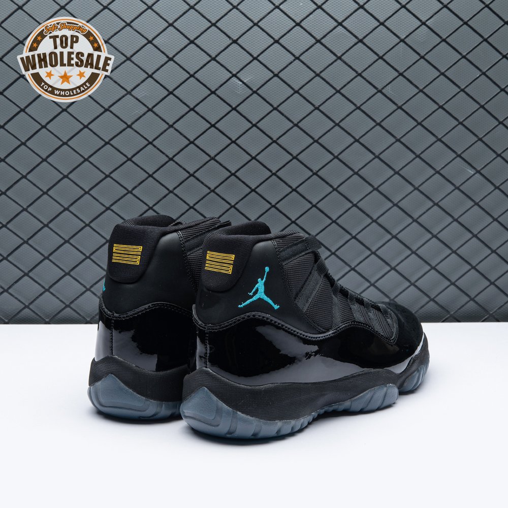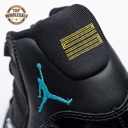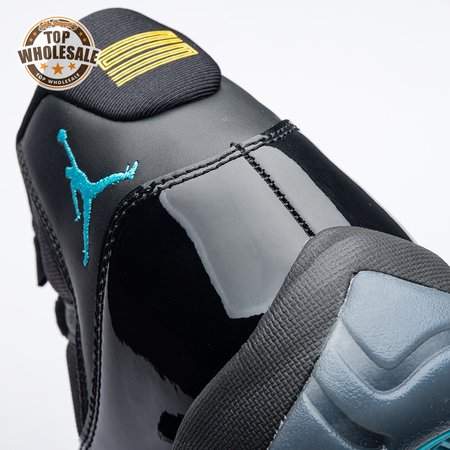 The Air Jordan 11 Retro "Gamma Blue" released in 2013 as Jordan Brand"s requisite AJ11 holiday release. The non-OG colorway features a sleek black finish throughout the upper, constructed from a traditional blend of ballistic mesh and shiny patent leather. Contrasting pops of color arrive via the sneaker"s branding hits, which include a turquoise Jumpman and "23" stamped in Varsity Maize on the heel tab. A cushy Phylon midsole is enhanced with a top-loaded full-length Air unit and supported by a carbon fiber spring plate. A translucent rubber outsole utilizes herringbone traction pods for superior grip.