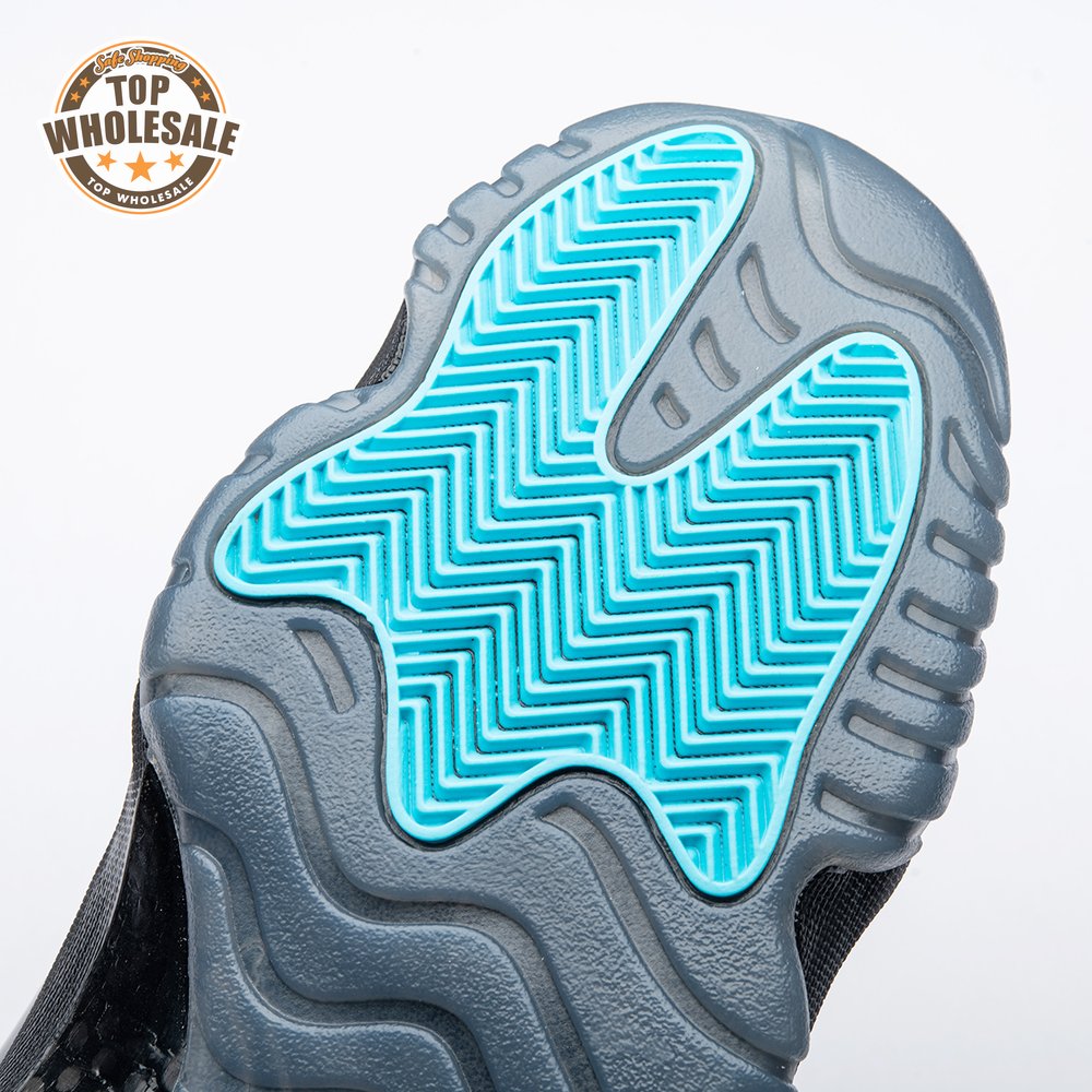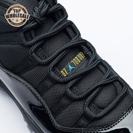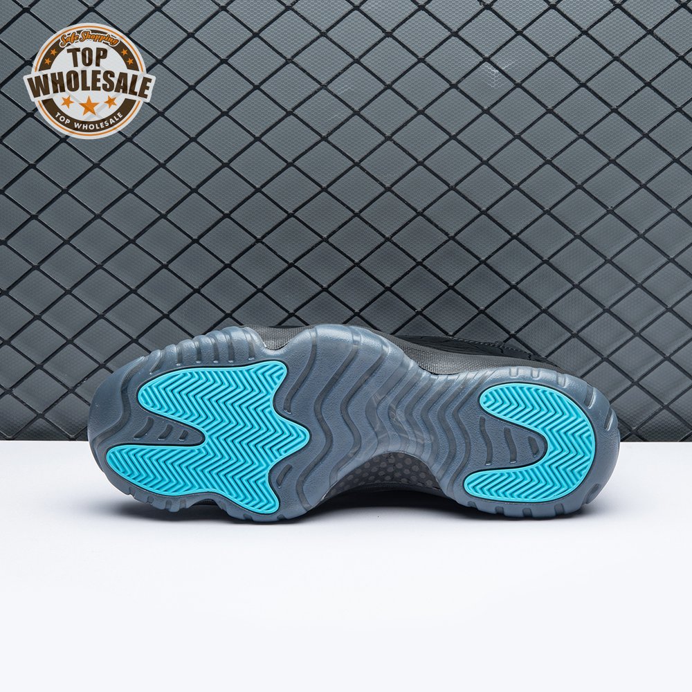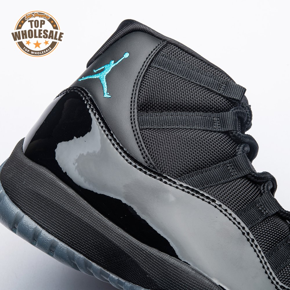 The Air Jordan 11 Retro "Gamma Blue" released in 2013 as Jordan Brand"s requisite AJ11 holiday release. The non-OG colorway features a sleek black finish throughout the upper, constructed from a traditional blend of ballistic mesh and shiny patent leather. Contrasting pops of color arrive via the sneaker"s branding hits, which include a turquoise Jumpman and "23" stamped in Varsity Maize on the heel tab. A cushy Phylon midsole is enhanced with a top-loaded full-length Air unit and supported by a carbon fiber spring plate. A translucent rubber outsole utilizes herringbone traction pods for superior grip.
