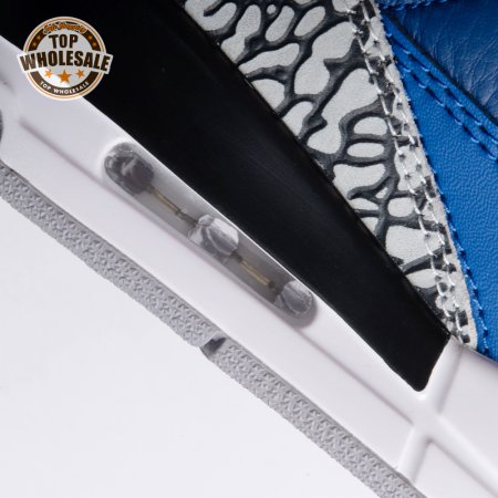 The Air Jordan 3 Retro "Varsity Royal" showcases an OG-inspired look, complete with signature details inextricably tied to Jordan heritage. They include embroidered Jumpman branding atop the tongue, visible Air cushioning in the midsole and grey elephant-print overlays at the toe and heel. The tumbled leather upper is rendered in a royal blue finish, a non-Chicago hue that figures prominently throughout the history of the franchise. A second Jumpman logo adorns the molded heel panel.