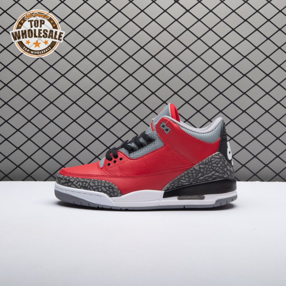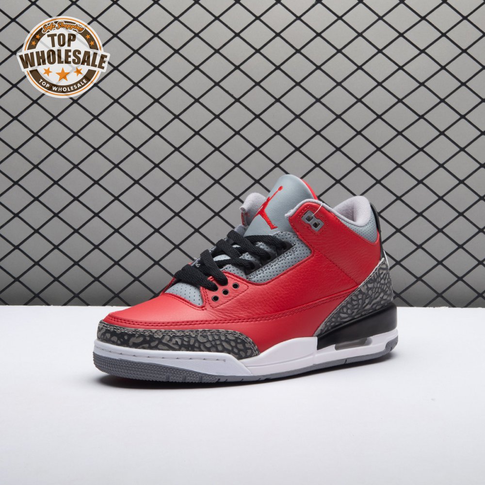 Dropping in conjunction with the 2020 NBA All-Star Weekend in Chicago, the Air Jordan 3 Retro SE 'Unite' showcases classic color blocking that stays true to the sneaker"s Windy City heritage. The tumbled leather upper is finished in a bold Fire Red hue, complete with Nike Air branding and grey cement-print overlays at the toe and heel. The mid-top is anchored by a contrasting white midsole with visible Air sole cushioning.