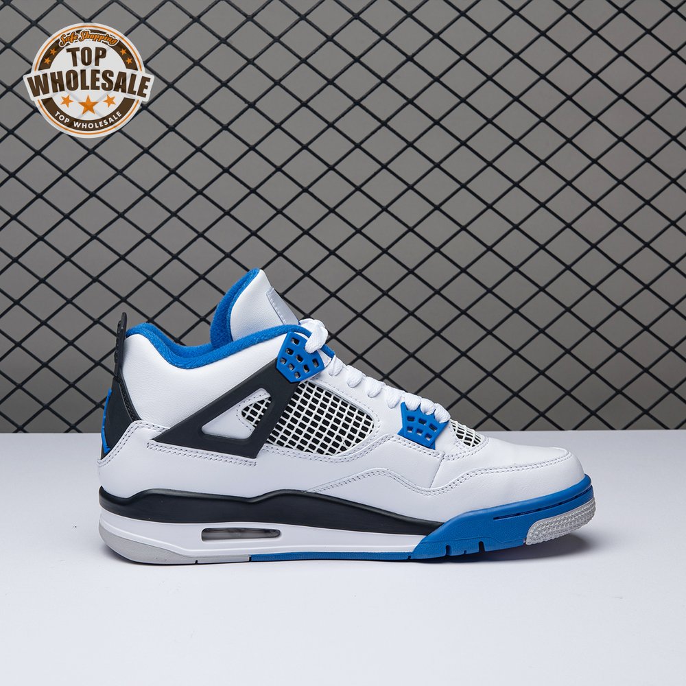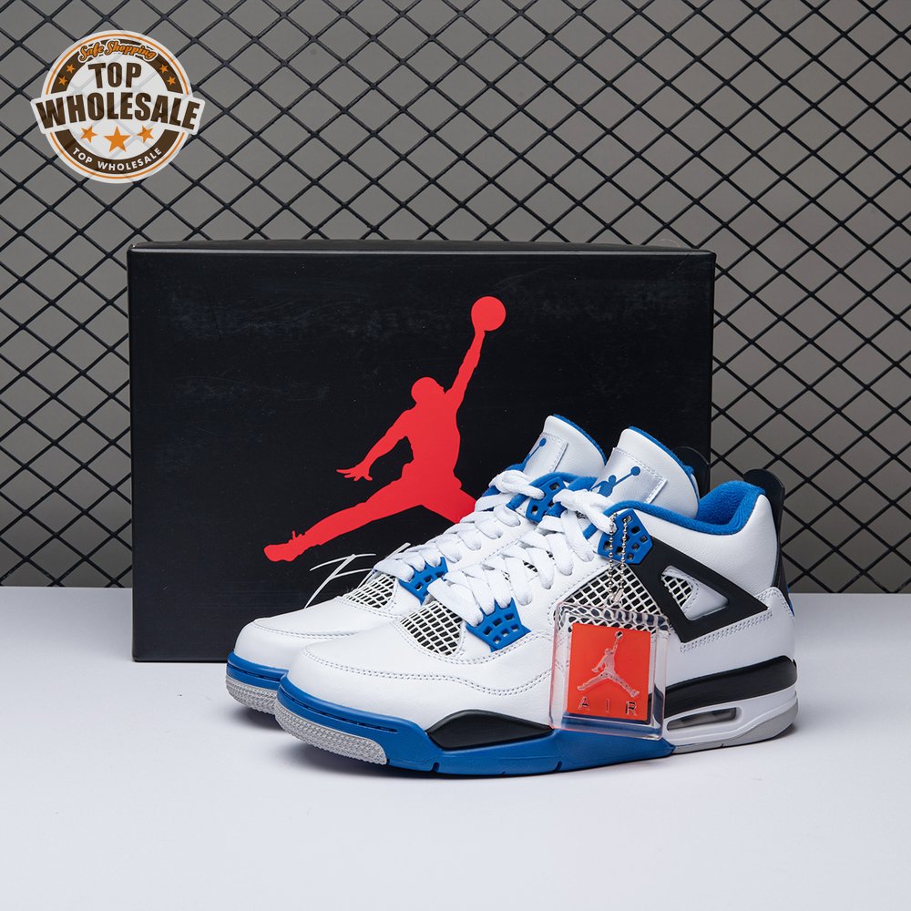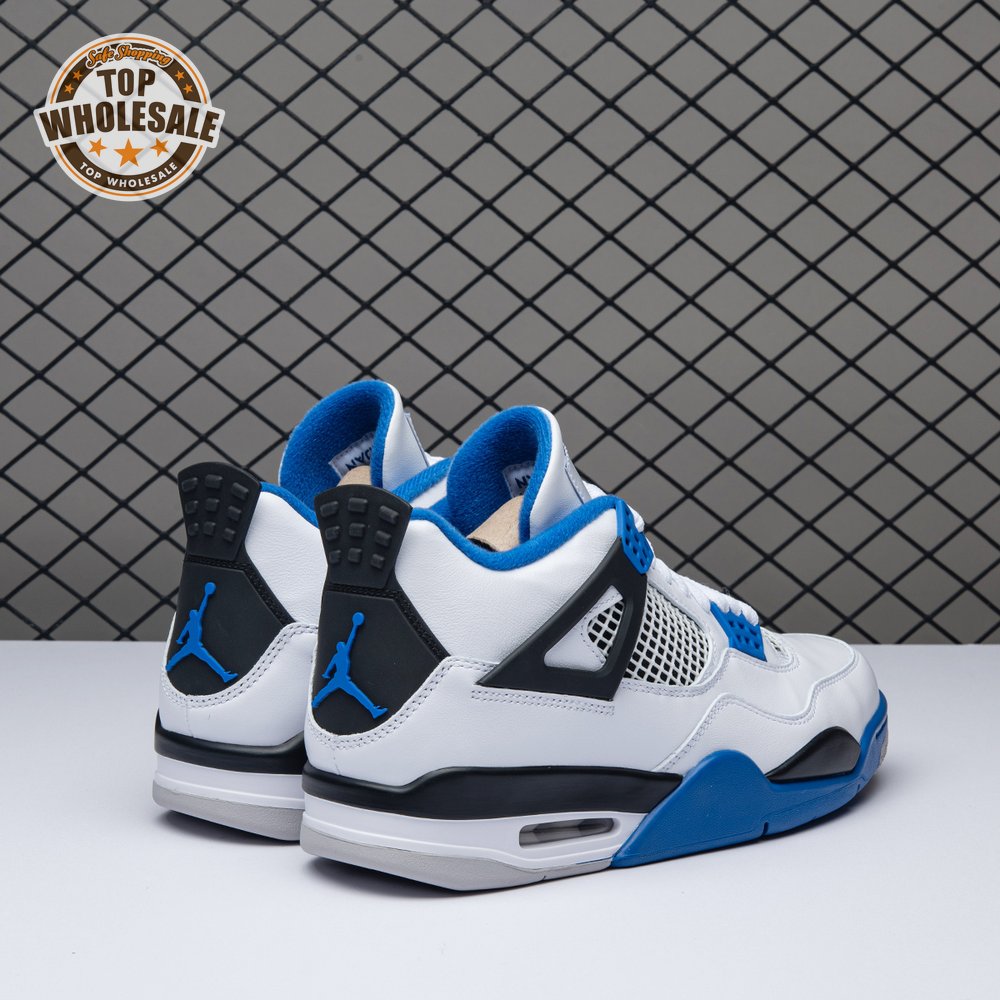 The Air Jordan 4 Retro "Motorsports" is inspired by a 2006 friends and family colorway created for the 4th anniversary of MJ"s Motorsport"s Racing team. Released to the general public in March of 2017, the sneaker incorporates the teams" white, black, and varsity royal blue colors, but removes the Mars Blackmon heel accent that graced the 2006 sneake. An Air Jordan 4 Retro 'Motorsports Alternate," released a few months later in a black colorway.