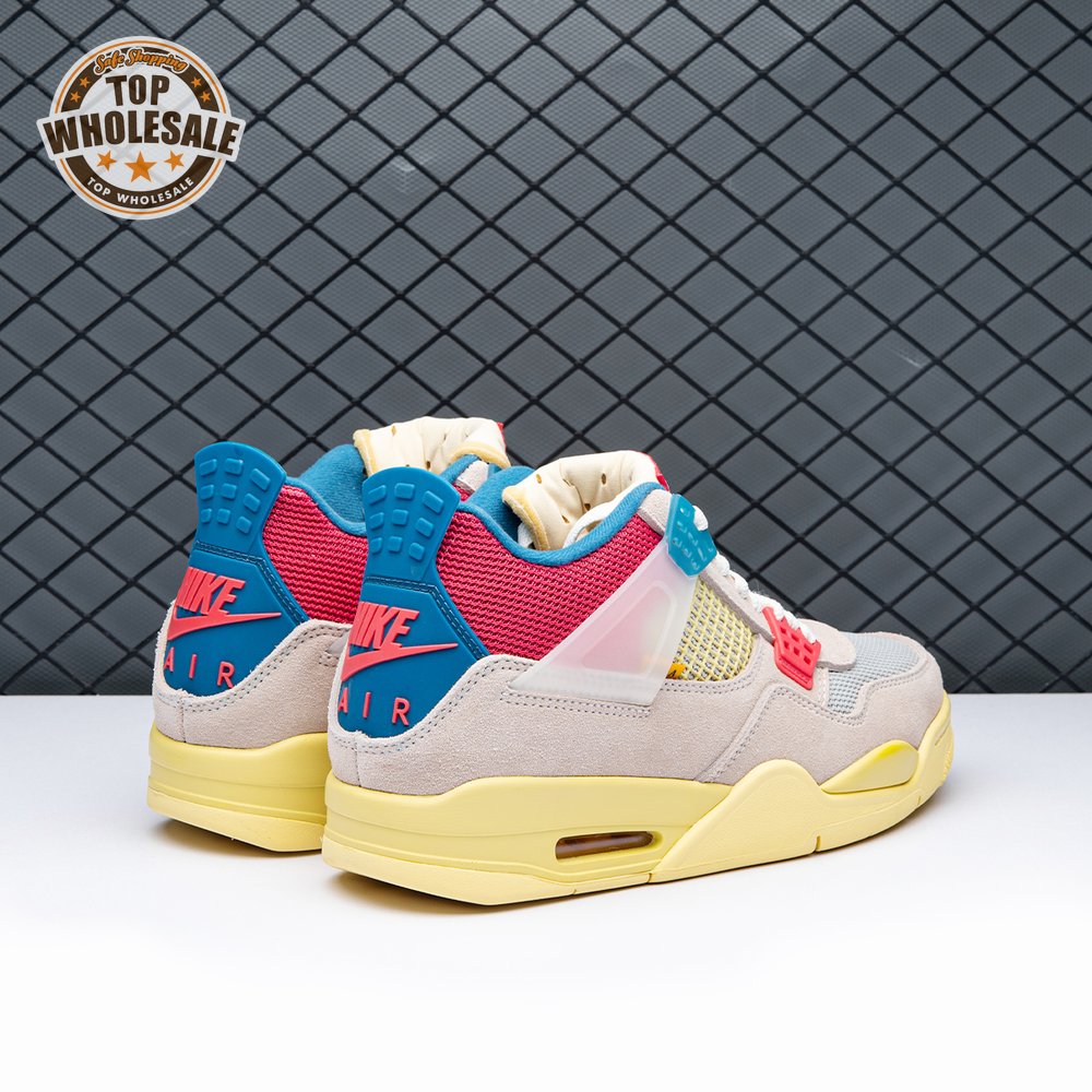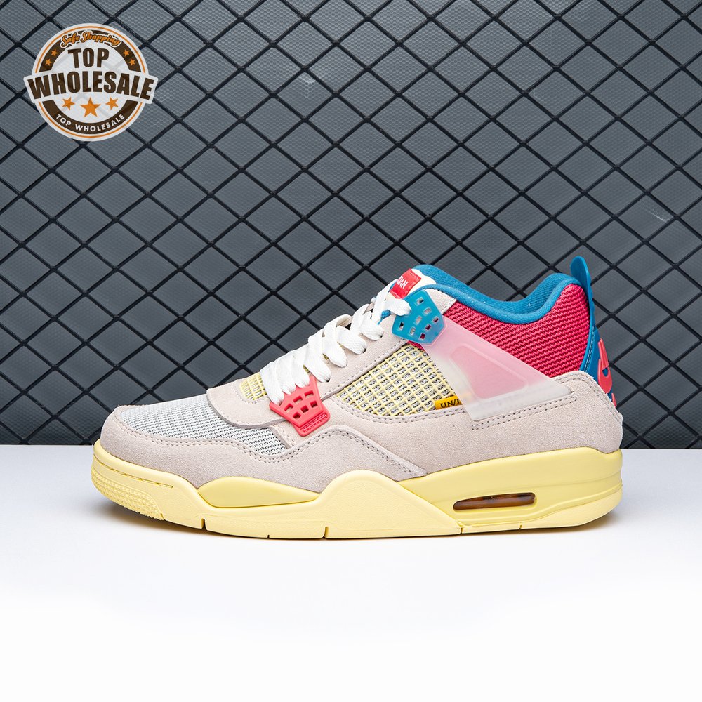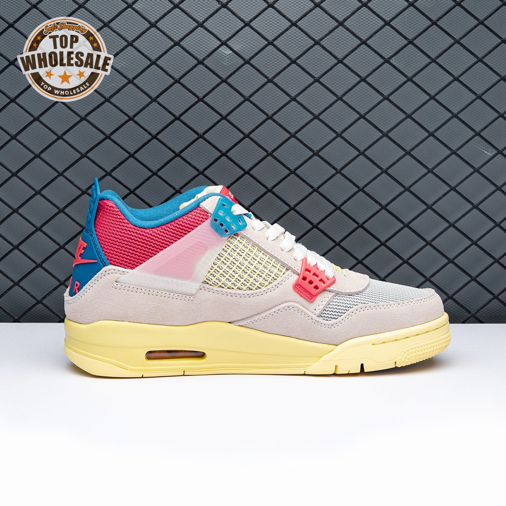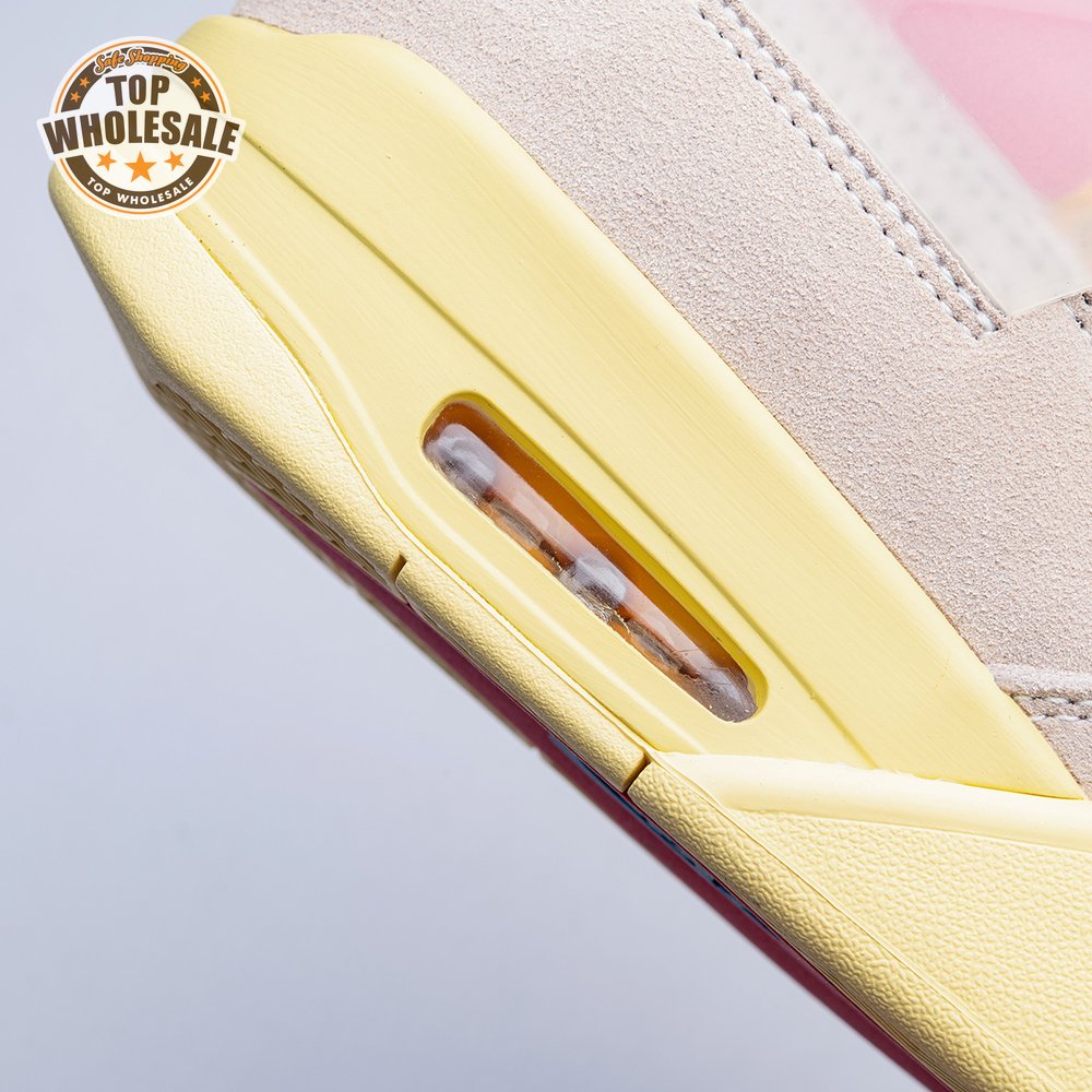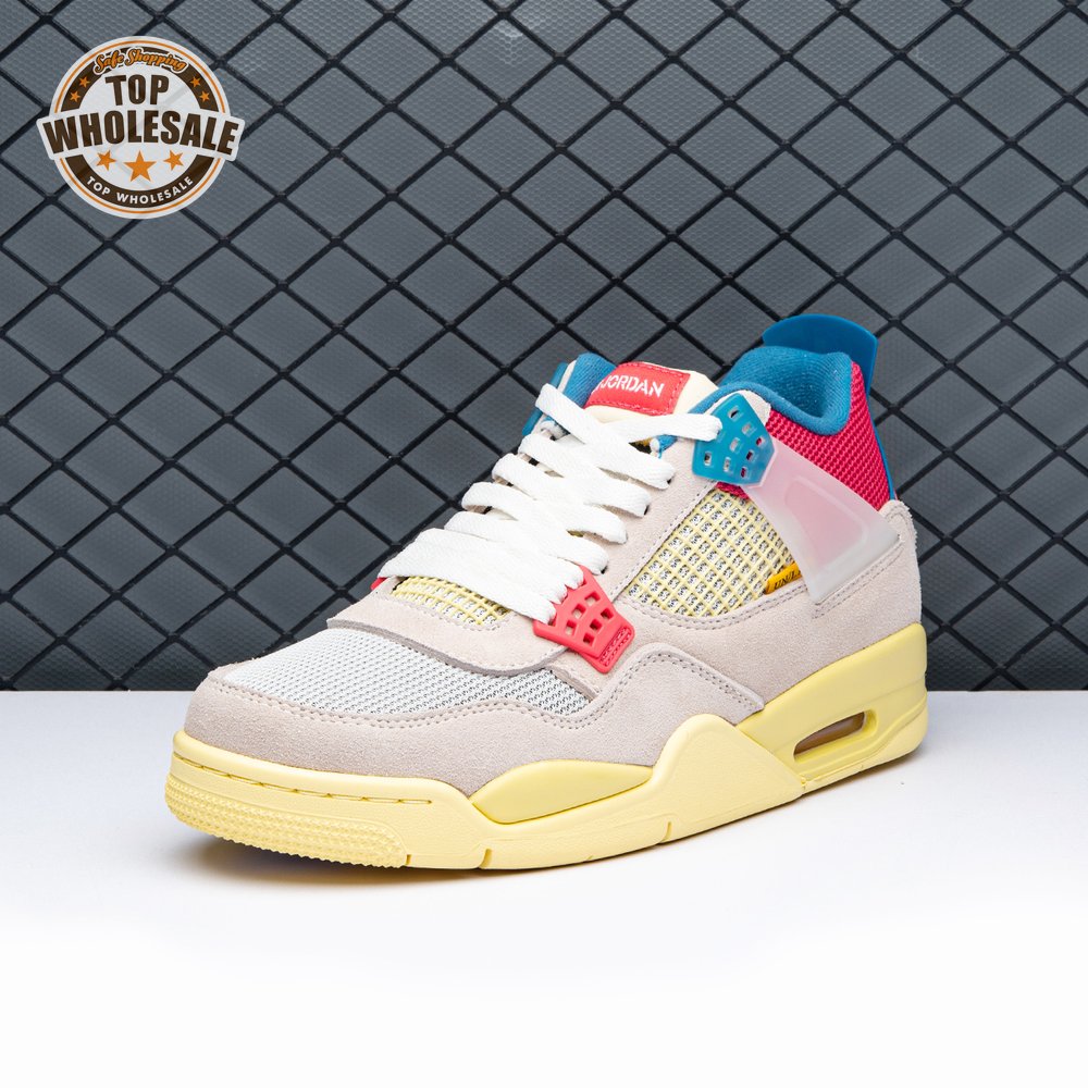 The sequel to the creative partners" Air Jordan 1 collaboration from 2018, the Union LA x Air Jordan 4 Retro "Guava Ice" delivers a vibrant take on the classic silhouette. The upper combines soft pink suede with breathable mesh on the collar and toe box. Semi-translucent TPU wings provide structural support, taking cues from an original Tinker Hatfield sketch. Additional branding hits include a yellow Union tab on the lateral quarter panel, Nike Air on the back heel and a woven Air Jordan tag atop the folded-over tongue.