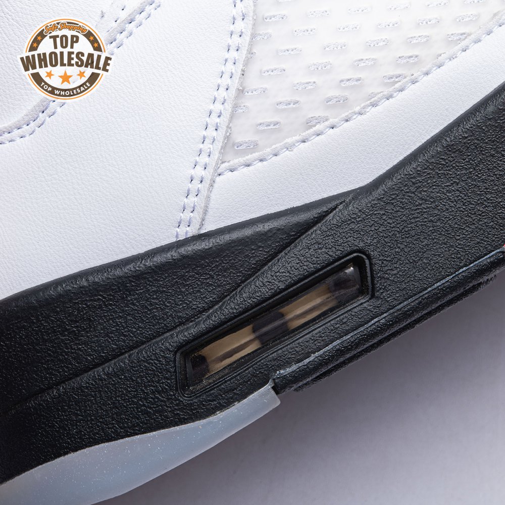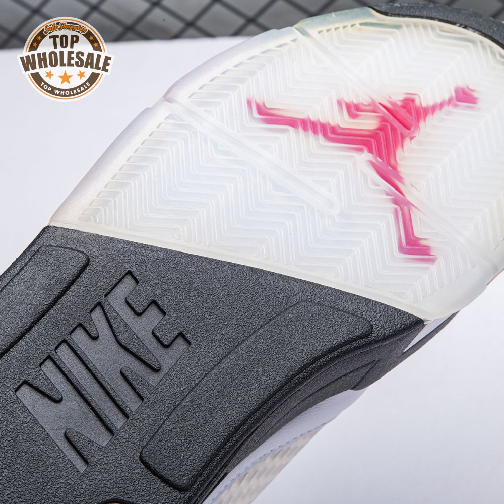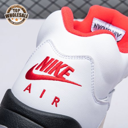 The 2020 edition of the Air Jordan 5 Retro "Fire Red" brings back the OG colorway of the classic silhouette on the occasion of its 30th anniversary. The build is faithful to the original, featuring a white leather upper with a silver reflective tongue and Nike Air branding on the heel. The black midsole, embellished with red shark tooth detailing inspired by a WWII P-51 Mustang fighter plane, is reinforced by an icy translucent outsole.