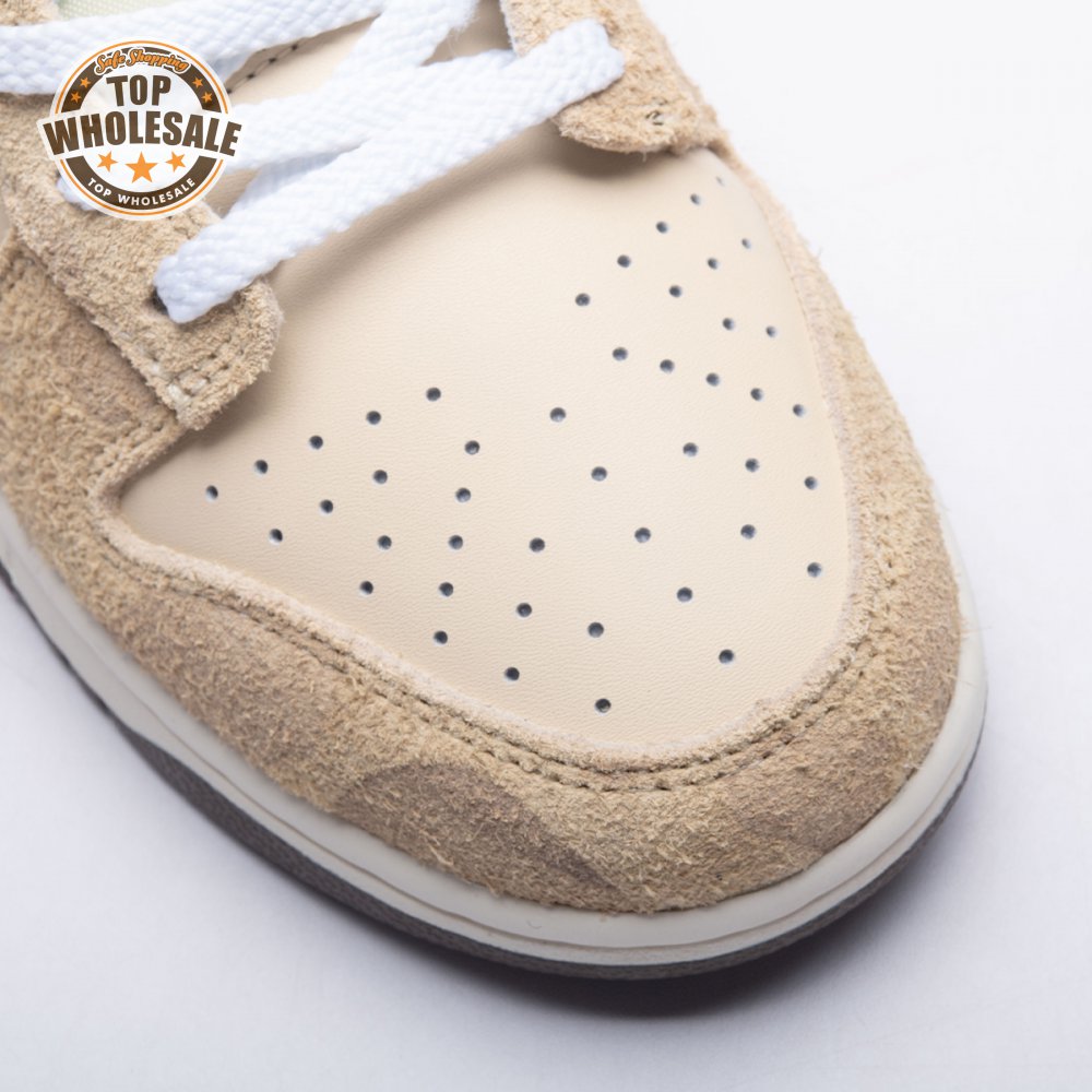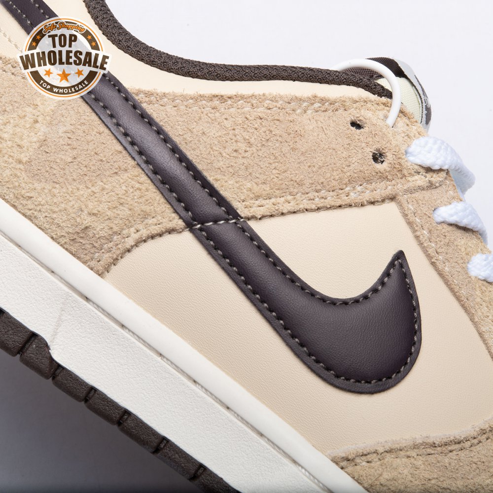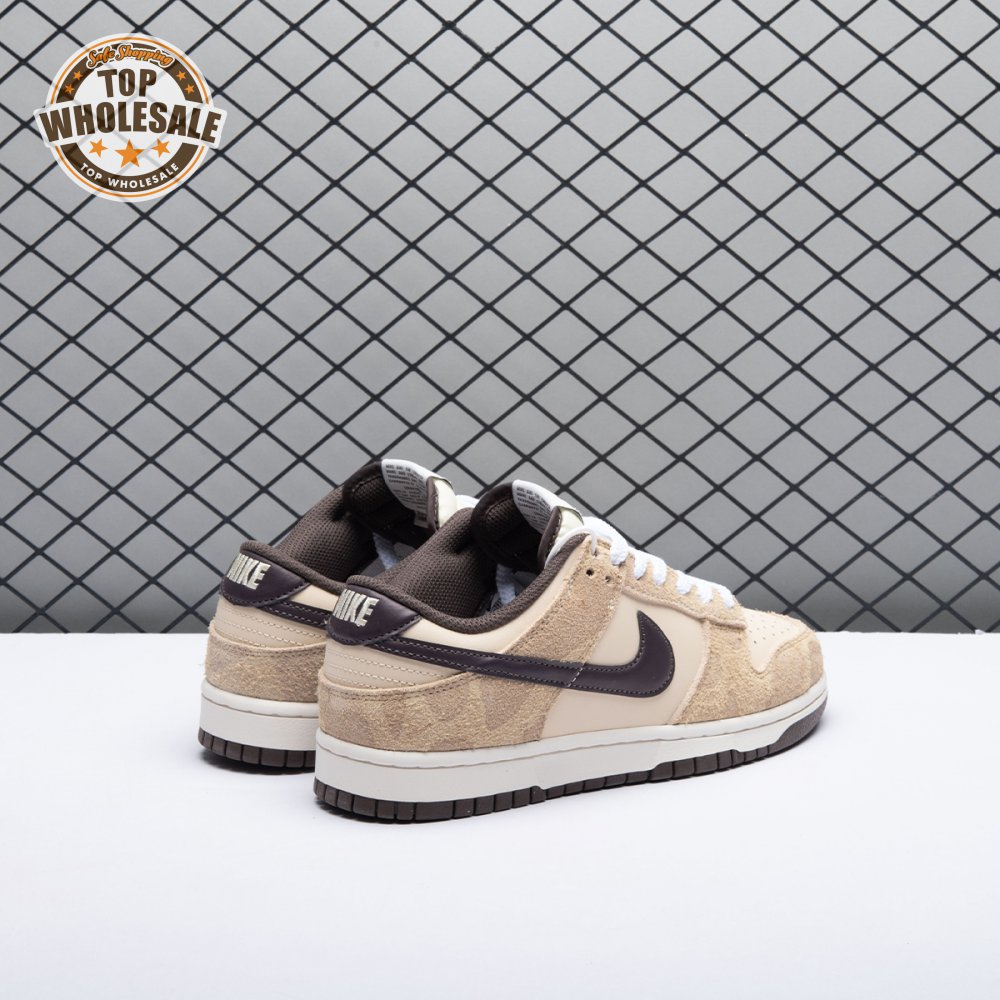 Releasing as one-half of the two-piece "Animal Pack," the Nike Dunk Low Premium "Cheetah" updates the vintage silhouette with a cream-colored leather upper. Tonal suede overlays are embellished with a subtle cheetah print, while contrasting brown accents make their way to the collar lining, leather Swoosh and heel tab, featuring an embroidered Nike wordmark. Additional Nike branding lands on the sockliner and a woven tag stitched atop a lightly padded nylon tongue.