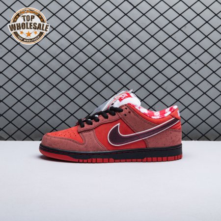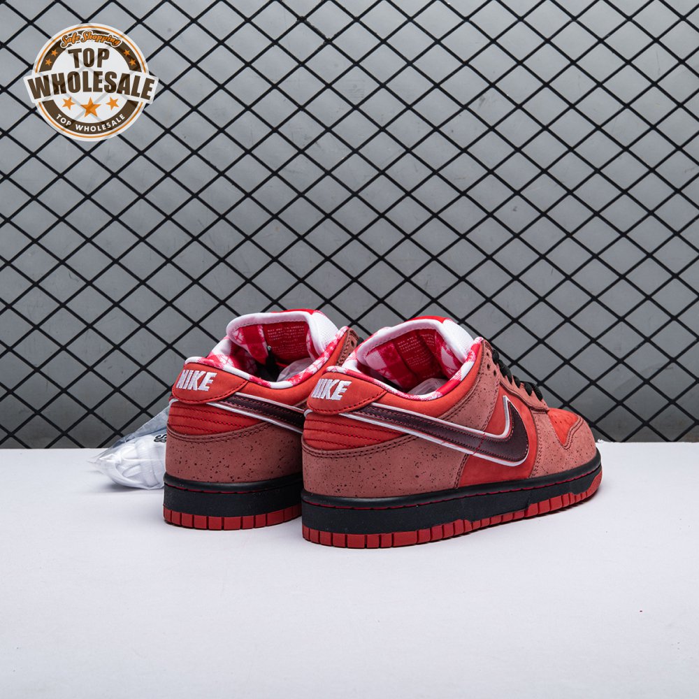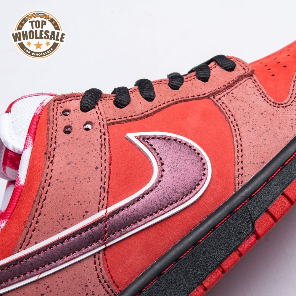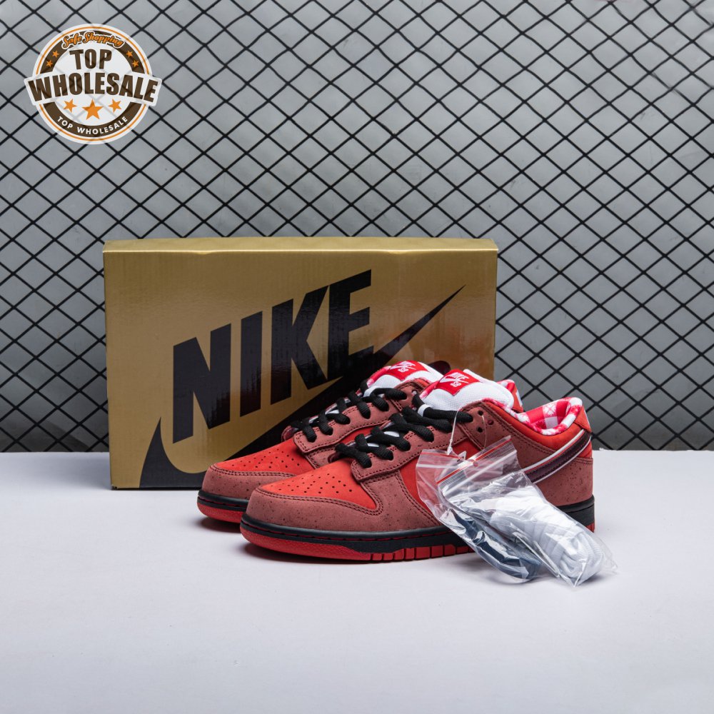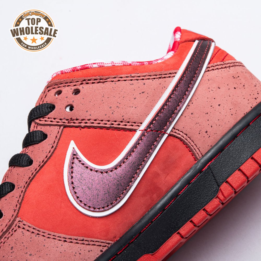 Boston based Concepts and Nike SB used lobster dinner as inspiration for this exclusive colorway. The Dunk Low Premium SB 'Lobster' features a soft suede upper dressed in an alternating Pink Clay and Sport Red color scheme as a nod to the crustacean"s iconic colors. The sneaker also boasts an oversized leather Swoosh, bib-inspired insole and sock liners and a bright blue wristband around the toe, which alludes to the blue elastic bands placed around a lobster's claws.