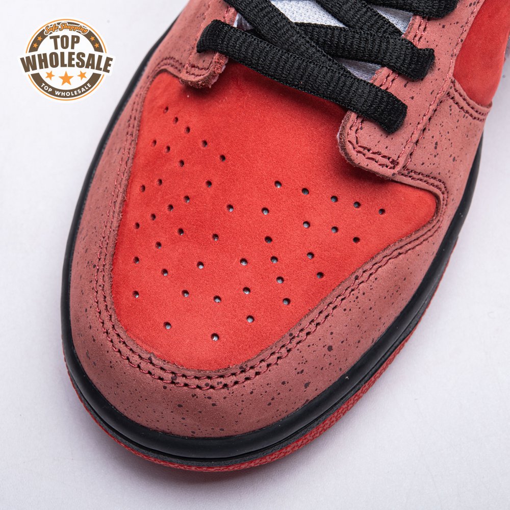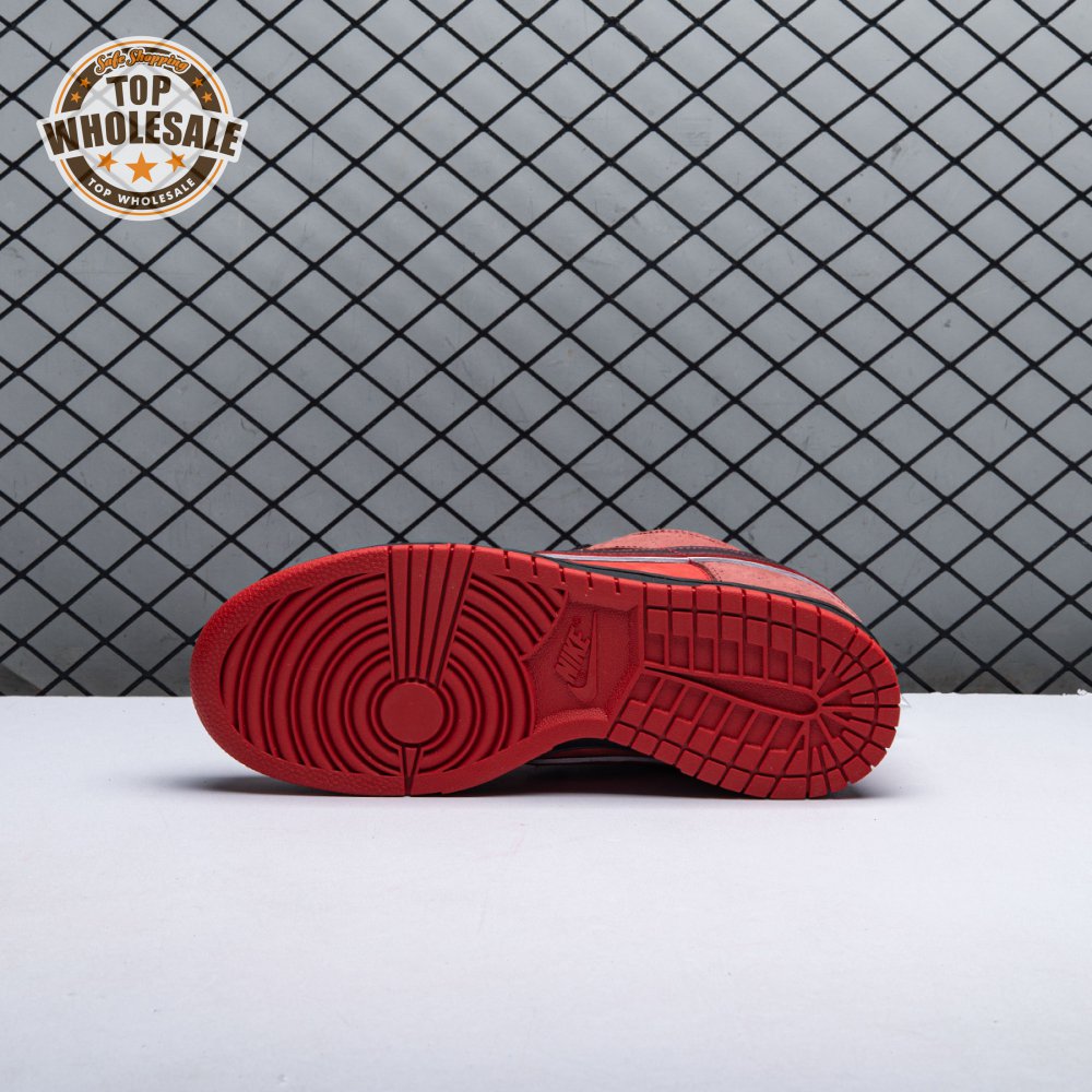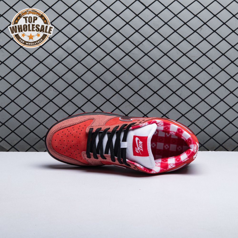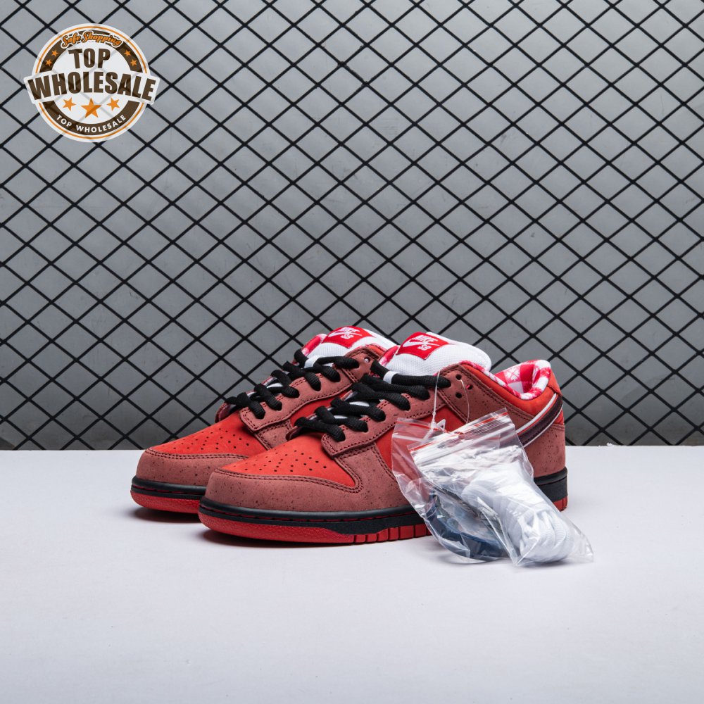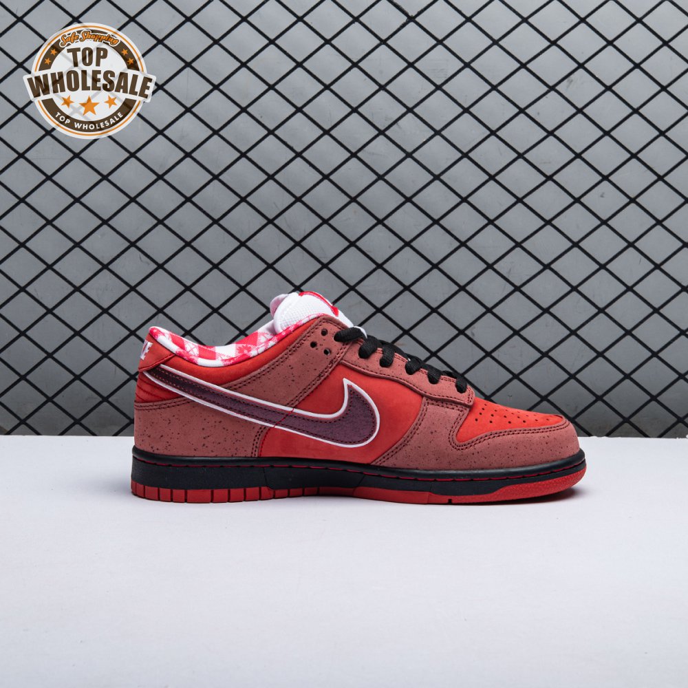 Boston based Concepts and Nike SB used lobster dinner as inspiration for this exclusive colorway. The Dunk Low Premium SB 'Lobster' features a soft suede upper dressed in an alternating Pink Clay and Sport Red color scheme as a nod to the crustacean"s iconic colors. The sneaker also boasts an oversized leather Swoosh, bib-inspired insole and sock liners and a bright blue wristband around the toe, which alludes to the blue elastic bands placed around a lobster's claws.