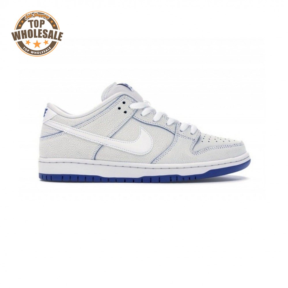 Nike Skateboarding released a fresh version of the Dunk Low in July 2019. The Nike SB Dunk Low Premium 'Cracked Leather" features a low top silhouette constructed from a premium cracked leather with smooth leather on the Swoosh branding. A padded tongue and Zoom Air unit in the sockliner help provide comfort and support. Underneath, a white midsole sits atop a Game Royal rubber outsole with a pivot point tread pattern.