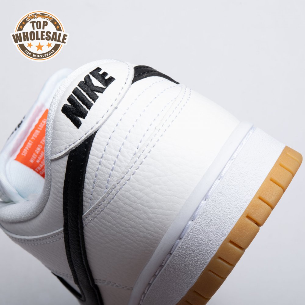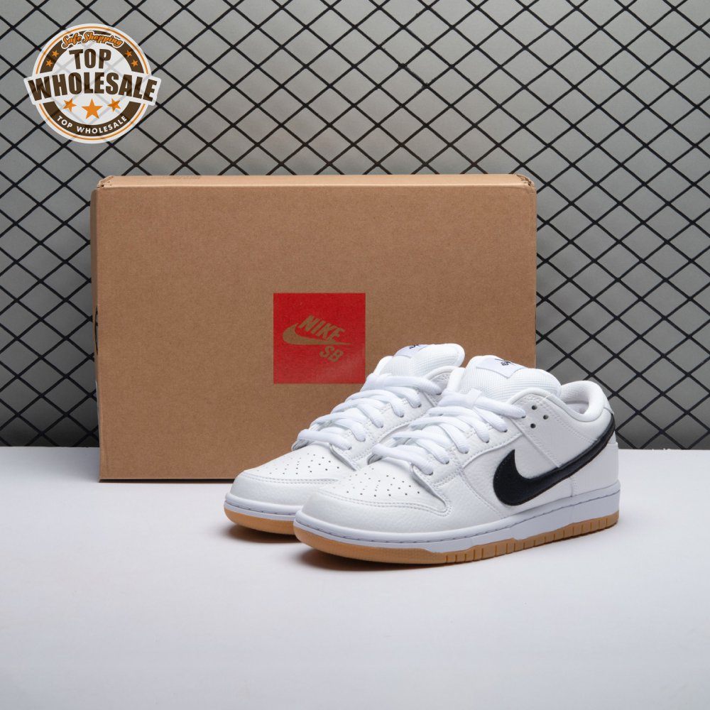 Launching in select skate shops as part of the "Orange Label" series, the Nike Dunk Low Pro ISO SB "White Navy" treats the classic silhouette to an elemental two-tone palette that recalls the brand"s early Orange Box era. The upper is constructed from white leather with a contrasting navy Swoosh. A Nike wordmark is embroidered on the heel tab in a matching navy finish, while the stuffed tongue features a woven Nike SB tag decorated with an orange Swoosh. Underfoot, a gum rubber outsole offers grippy traction.
