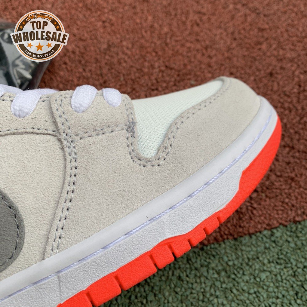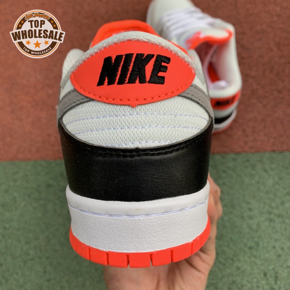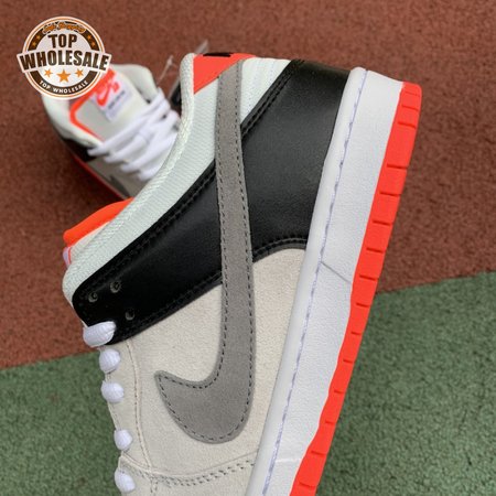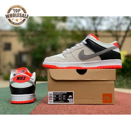 The Dunk Low SB 'AM90 Infrared' celebrates the 30th anniversary of the Air Max 90 by borrowing the retro runner"s iconic OG color scheme. The low-top features a predominantly grey suede upper with black leather on the heel overlay and breathable white mesh at the toe box and collar. Contrasting pops of Infrared appear at the tongue, heel tab and rubber outsole.