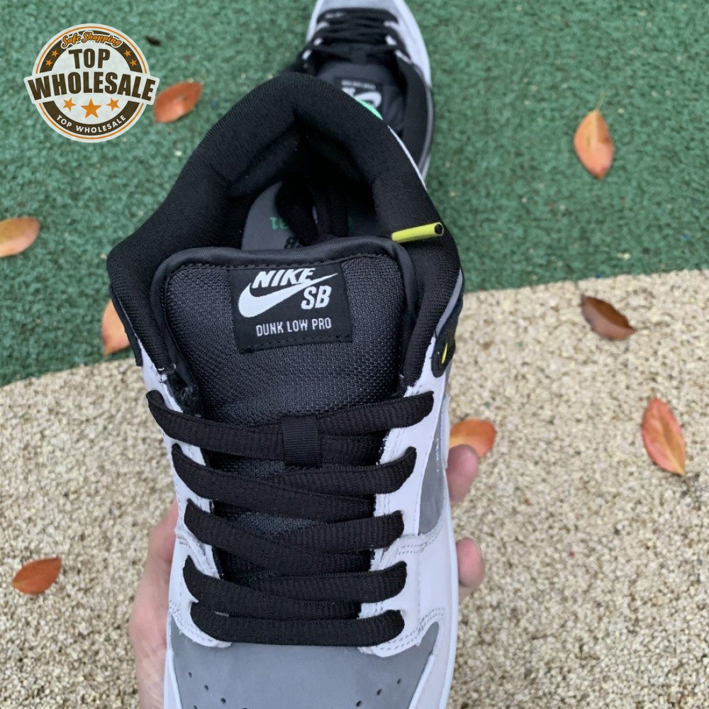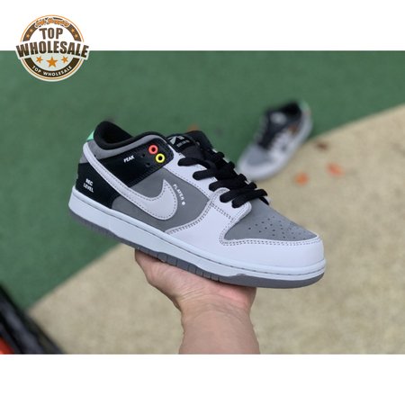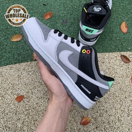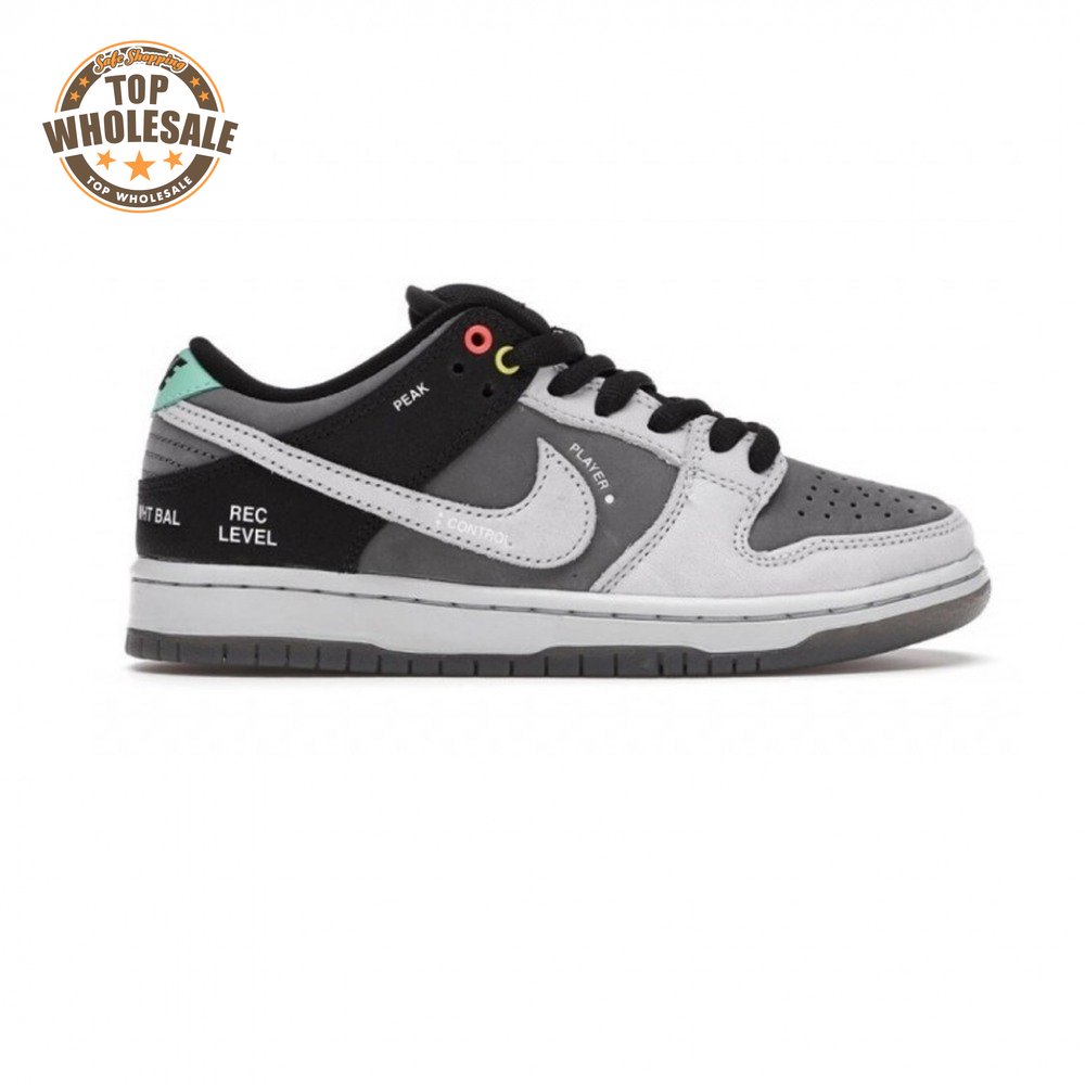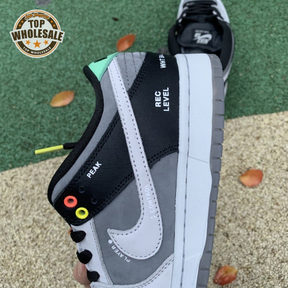 The Nike Dunk Low SB "Camcorder" takes inspiration from an iconic piece of equipment that was instrumental in the proliferation of skate videos in the "90s: the Sony DCR VX1000 camcorder. The low-top makes use of a charcoal nubuck upper, accented with a lighter shade of grey on the forefoot overlay and signature Swoosh. The black synthetic leather heel overlay is embellished with a series of camcorder functions, including "SHUTTER SPEED" and "REC LEVEL." Red and yellow eyelets, along with a mint green heel tab, add subtle pops of color to the neutral color scheme.