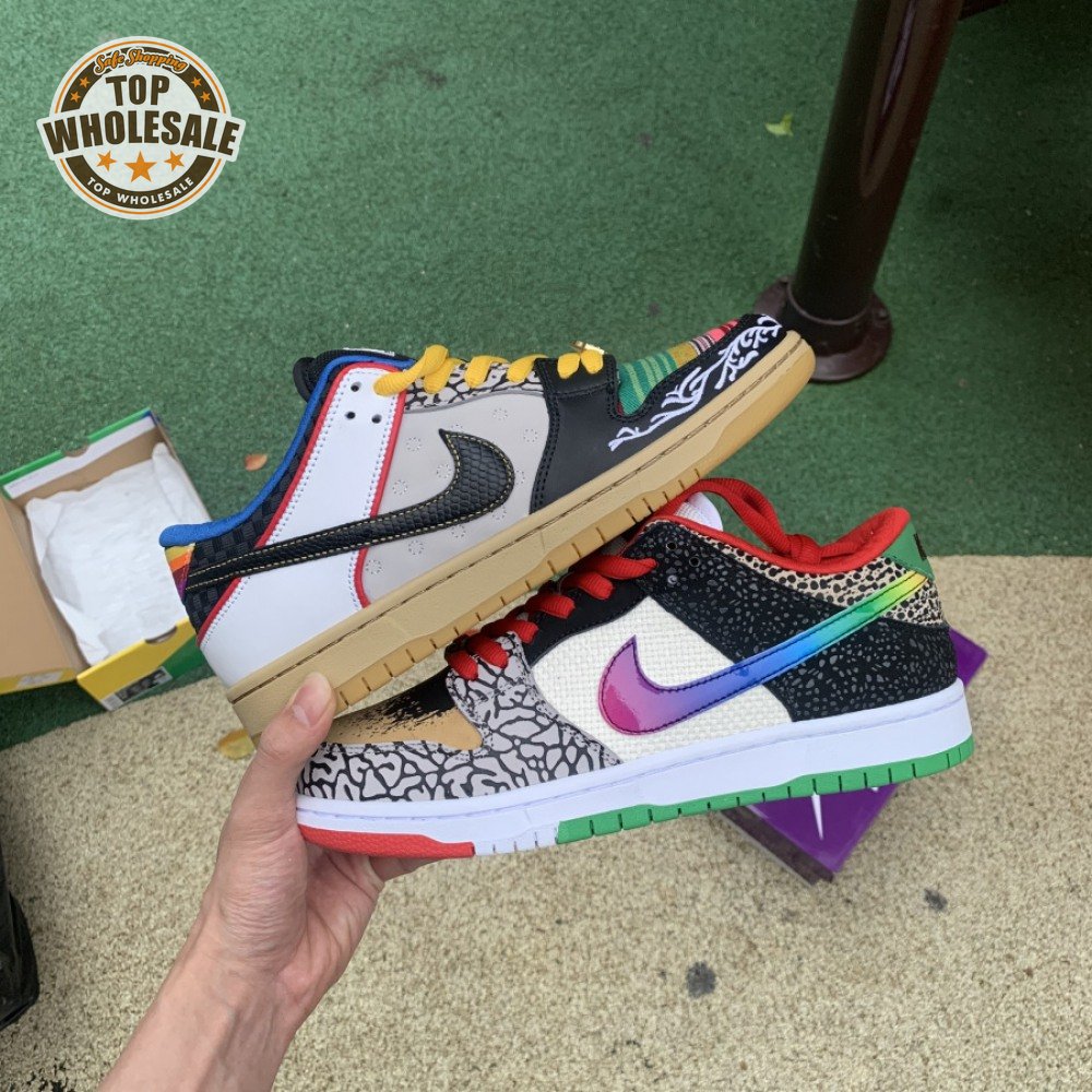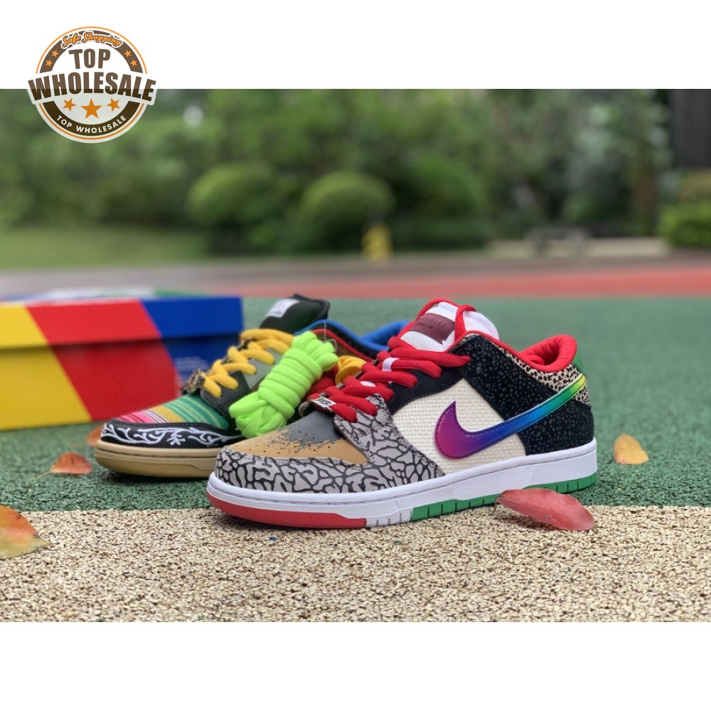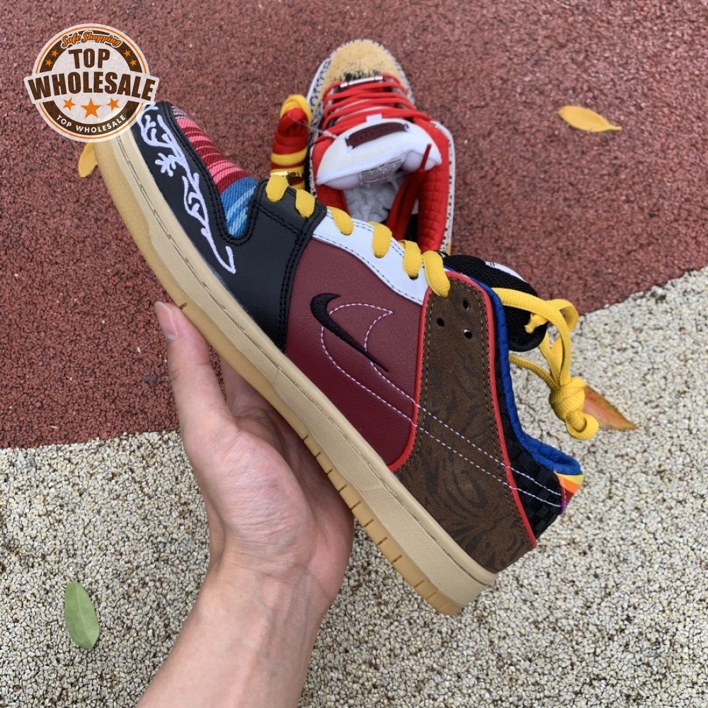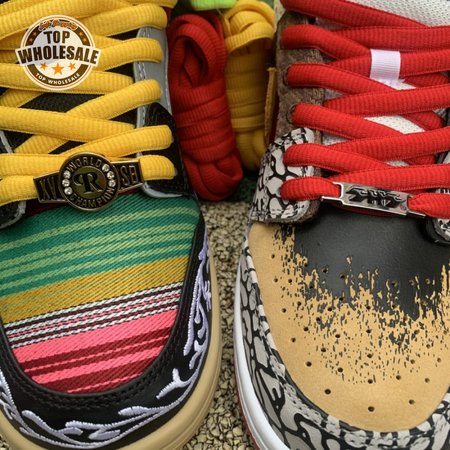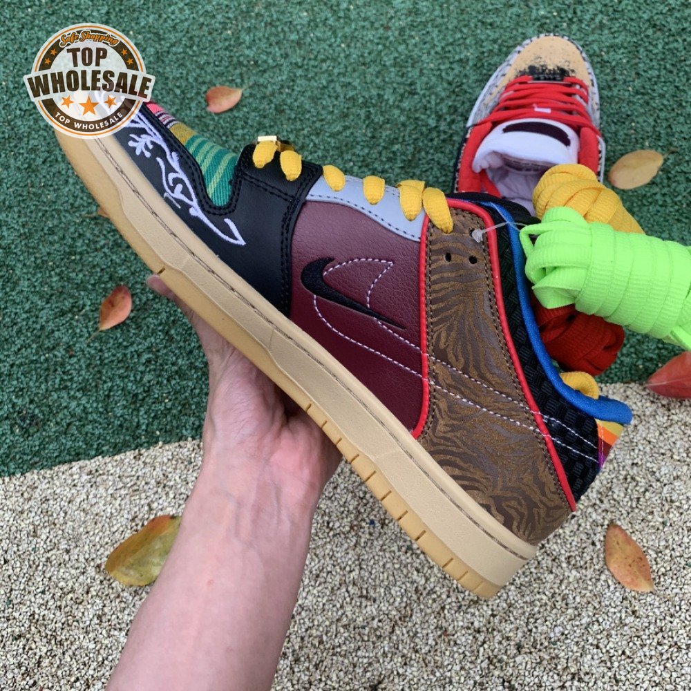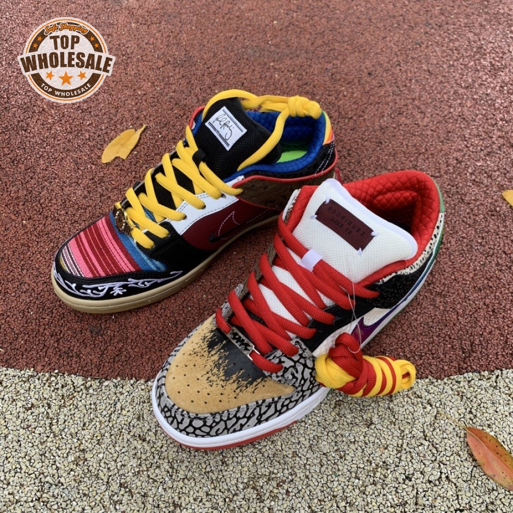 The Nike Dunk Low SB "What The Paul" celebrates the Swoosh"s longstanding partnership with Paul Rodriguez Jr., the first skateboarder to land his own signature Nike shoe. Each of the mismatched shoes is a greatest-hits medley featuring distinctive colors, textures and materials culled from P-Rod"s signature line. Multiple details are drawn from various colorways of the P-Rod 1, including the J-Rod"s elephant print overlays and toe boxes that reference the "Mexican Blanket" and "Stash" editions. Additional highlights include the P-Rod 2"s quilted lining and a metallic lace jewel taken from the athlete"s Mexico-themed SB Dunk High from 2020.