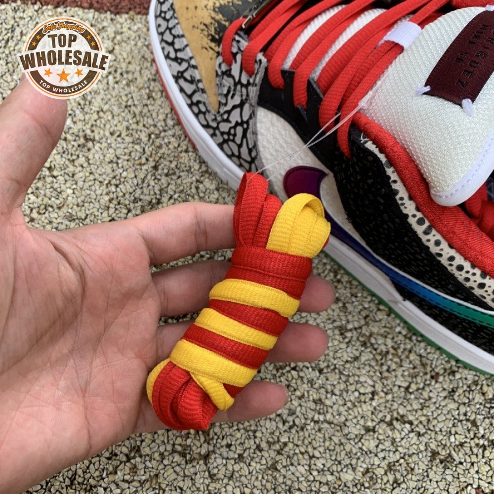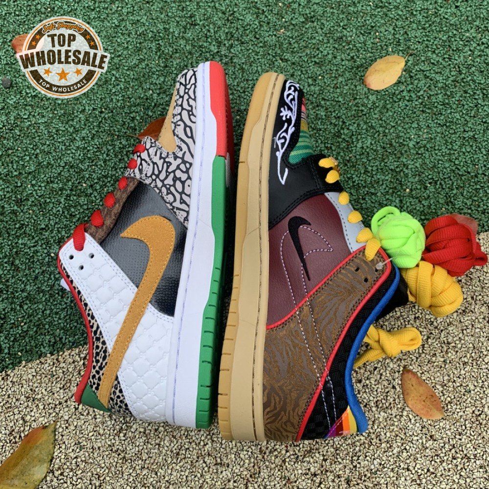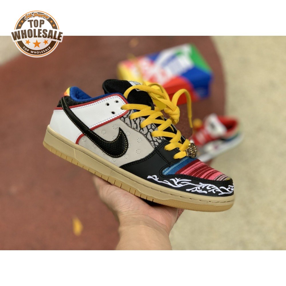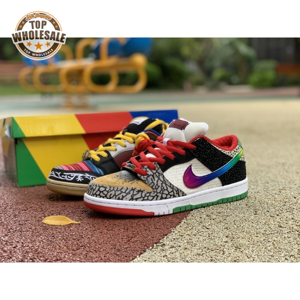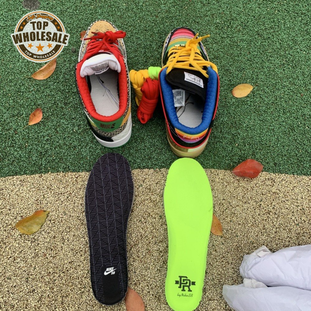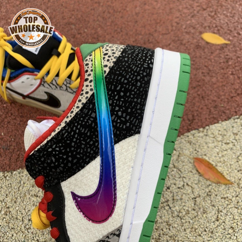 The Nike Dunk Low SB "What The Paul" celebrates the Swoosh"s longstanding partnership with Paul Rodriguez Jr., the first skateboarder to land his own signature Nike shoe. Each of the mismatched shoes is a greatest-hits medley featuring distinctive colors, textures and materials culled from P-Rod"s signature line. Multiple details are drawn from various colorways of the P-Rod 1, including the J-Rod"s elephant print overlays and toe boxes that reference the "Mexican Blanket" and "Stash" editions. Additional highlights include the P-Rod 2"s quilted lining and a metallic lace jewel taken from the athlete"s Mexico-themed SB Dunk High from 2020.