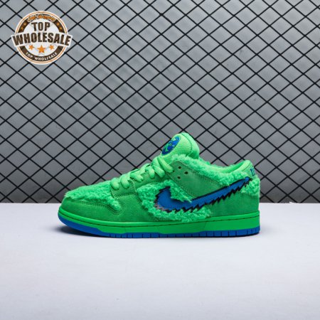 Made in collaboration with the legendary jam band, the Grateful Dead x Nike Dunk Low SB "Green Bear" features a green furry upper that draws inspiration from the back cover of the 1973 live album, "History of the Grateful Dead, Vol. One (Bear"s Choice)." Contrasting pops of royal blue make their way to the jagged Swoosh, rubber outsole and the sneaker"s branding hits, including an ursine graphic on the tongue. The latter is equipped with a zippered stash pocket.