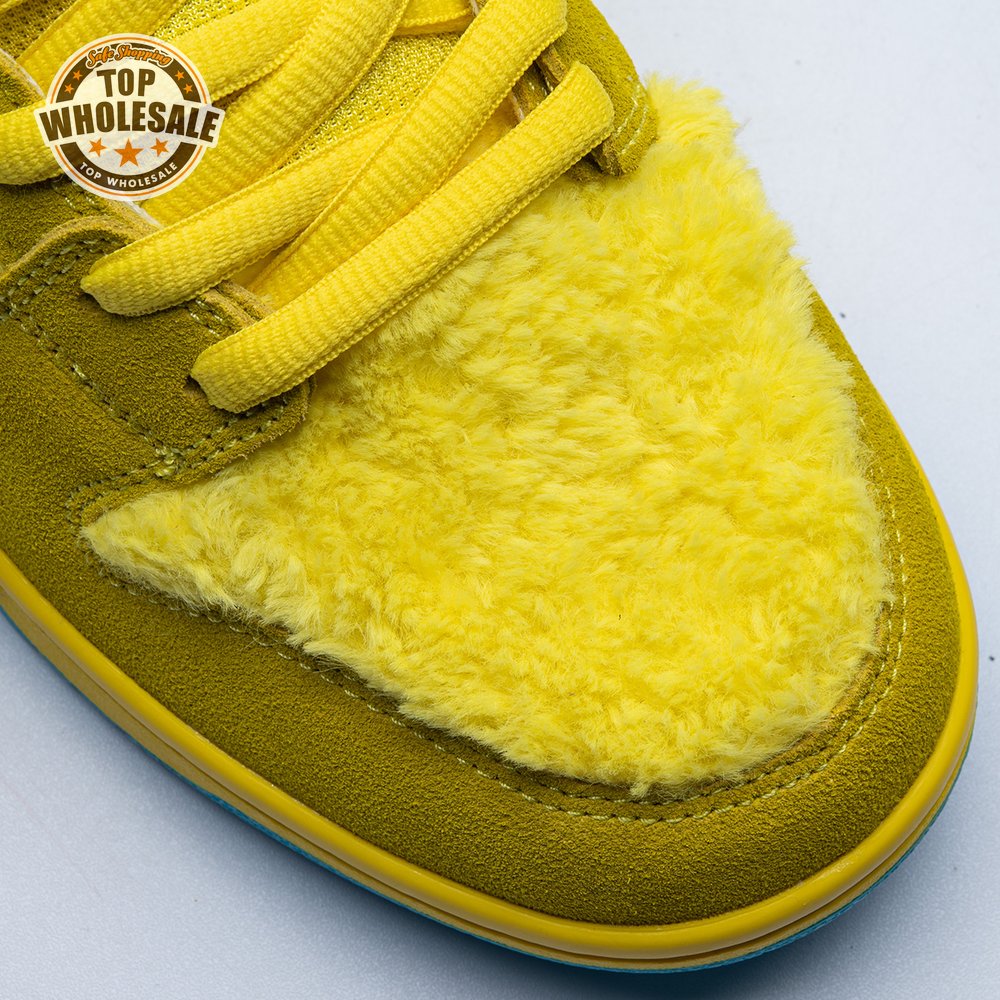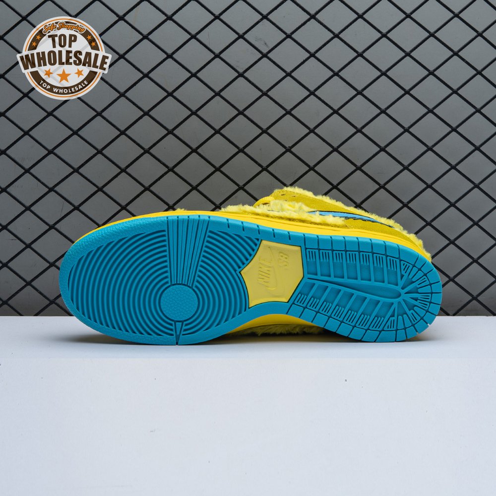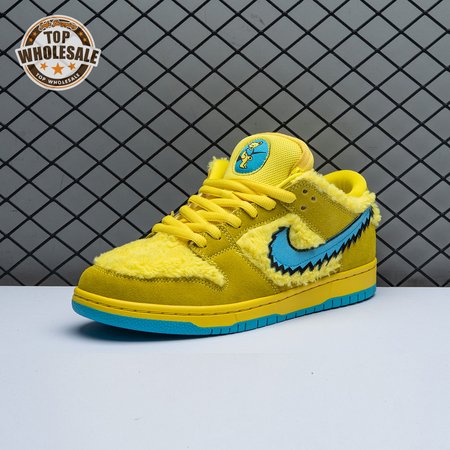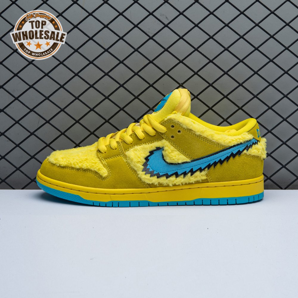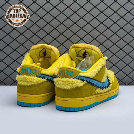 Developed in collaboration with the iconic San Francisco jam band, the Grateful Dead x Nike Dunk Low SB "Yellow Bear" features a unique design inspired by the back cover of "History of the Grateful Dead, Volume One (Bear"s Choice)," a live album originally released in 1973. A vibrant yellow finish is applied to the furry upper, fortified with tonal suede overlays and mounted atop a matching yellow foam midsole. Contrasting blue hits appear on the jagged Swoosh, rubber outsole and tongue, the latter furnished with a hidden stash pocket.