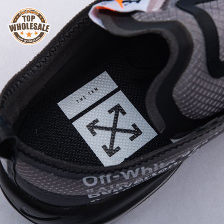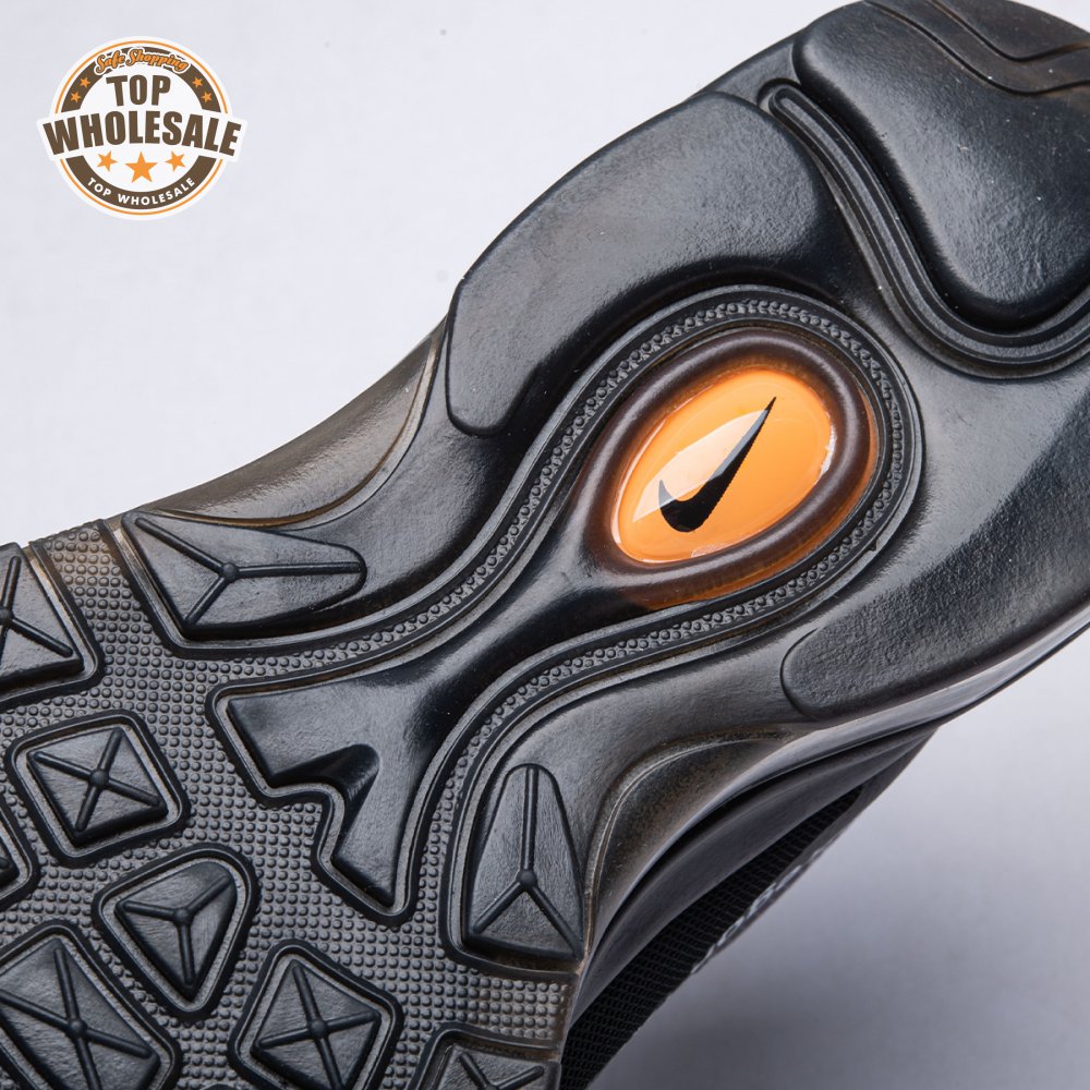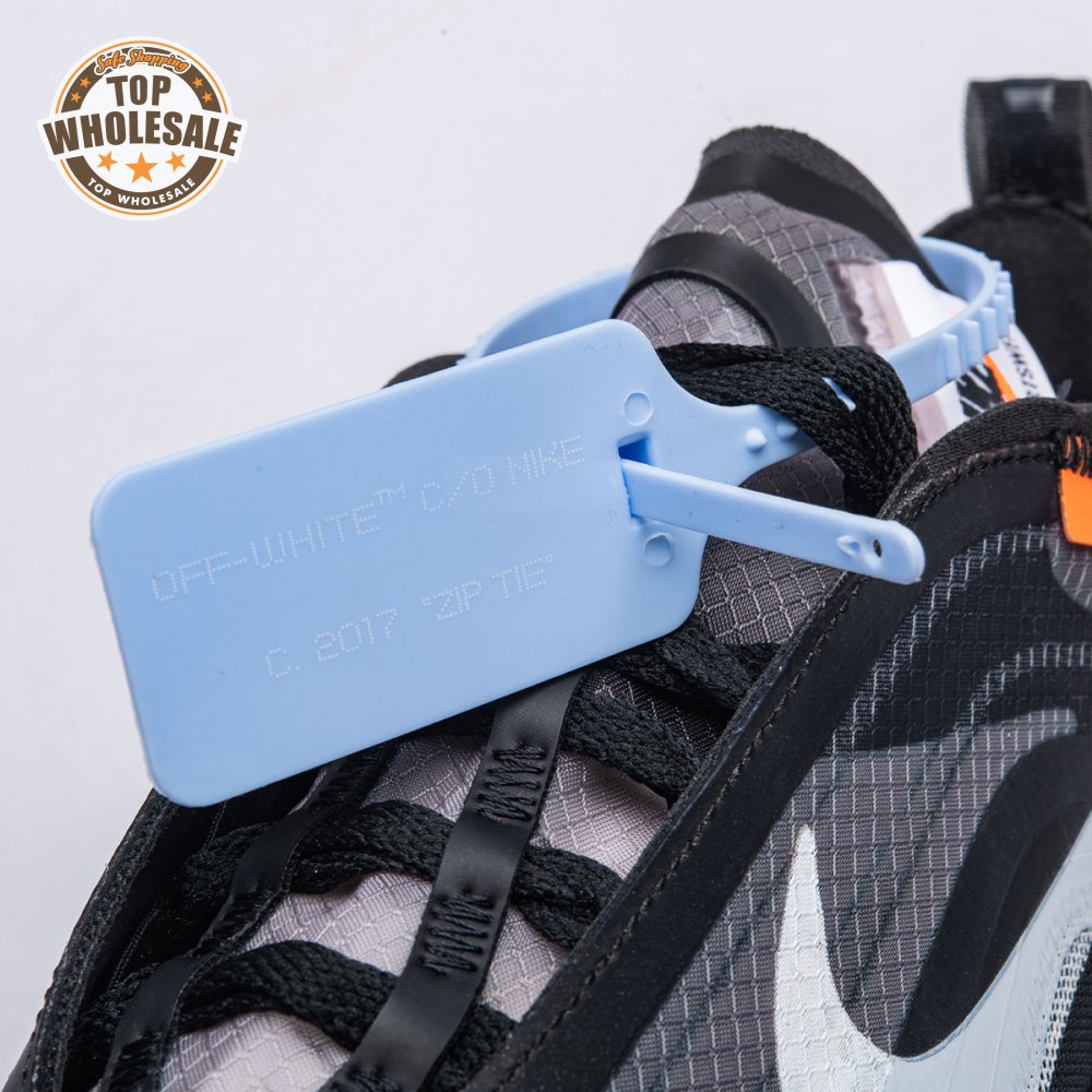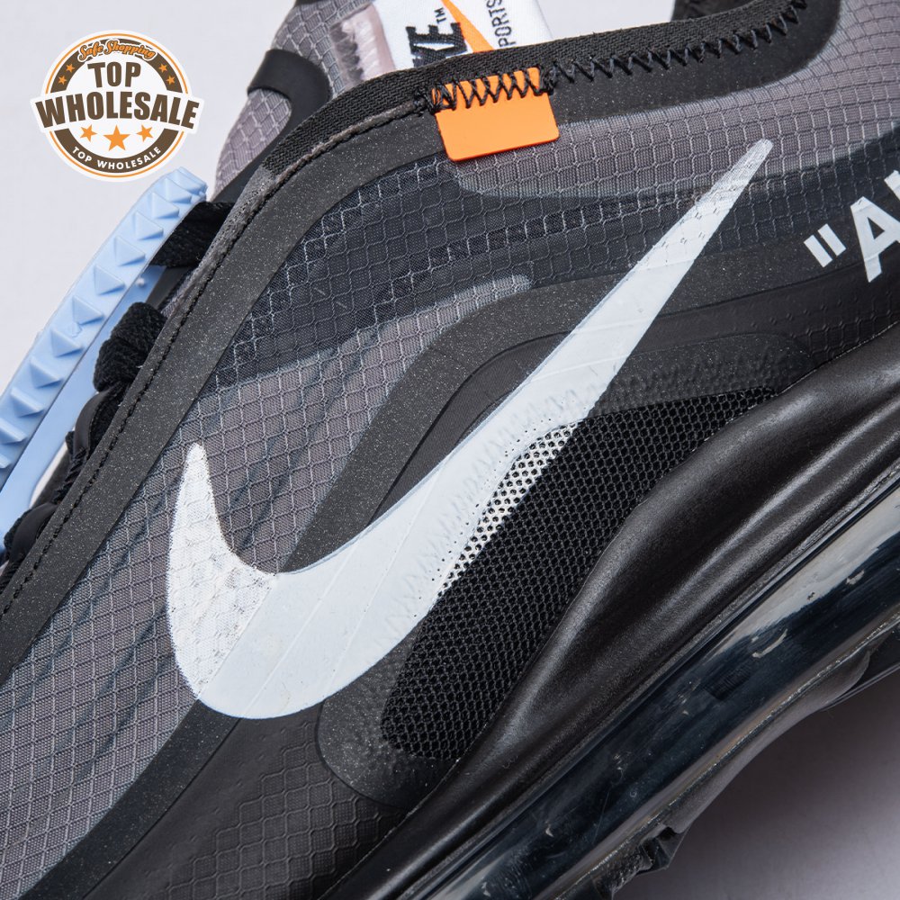 Debuting on the runway at Paris Fashion Week in June 2018, the Off-White x Air Max 97 in black sees Virgil Abloh outfit the retro runner with a translucent textile upper. A white Swoosh and "AIR" lettering adorn the lateral side, while the quarter panel on the medial side is printed with more lines of Virgil"s signature text. The shoe"s reconstructed look is finished with a woven Nike tongue tag pushed to the side.