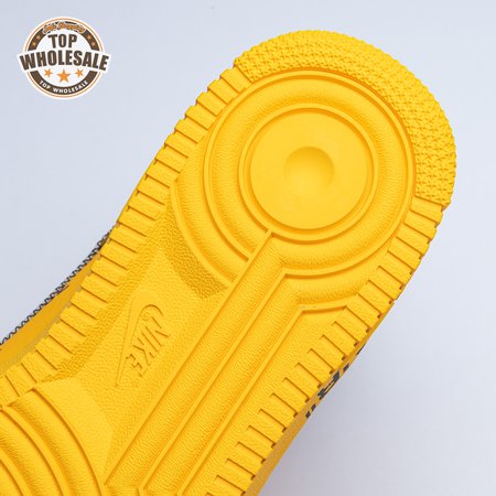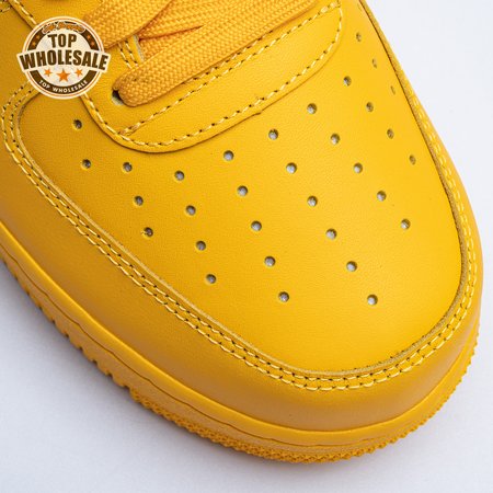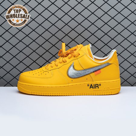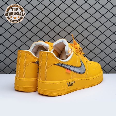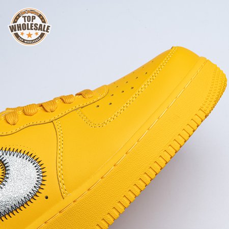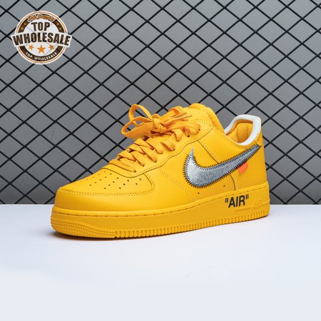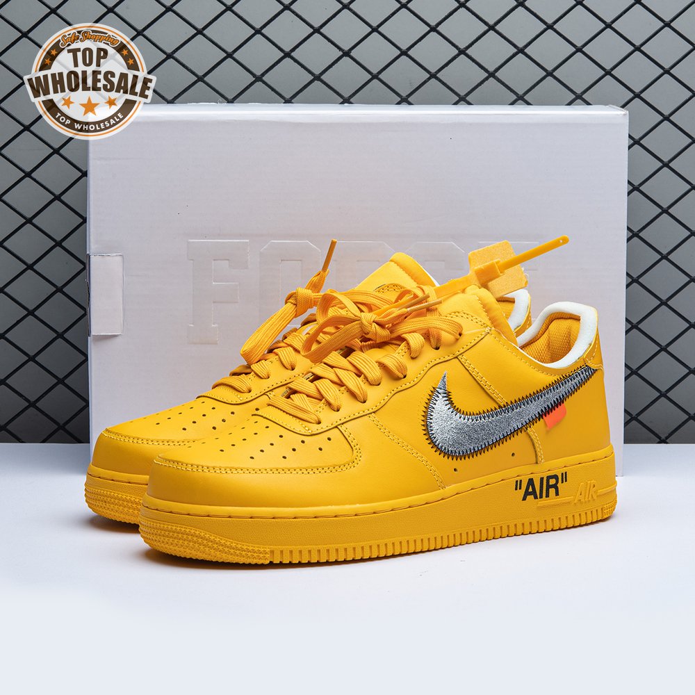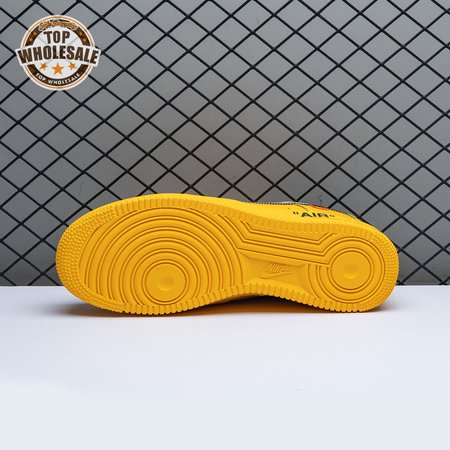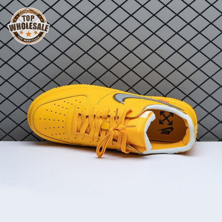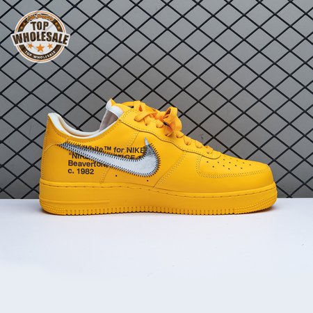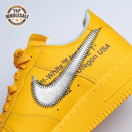 The Off-White x Nike Air Force 1 Low "University Gold" reunites Virgil Abloh with Bruce Kilgore"s iconic 1982 basketball shoe. Abloh dips the leather upper in a rich mustard yellow hue, save for a silver Swoosh outlined in contrast zigzag stitching and the designer"s signature Helvetica text on the medial quarter panel. A matching yellow midsole features "AIR" printed on the lateral sidewall. Exposed foam construction is utilized on the collar and tongue, the latter decorated with a woven tag that displays "OFF" Nike Air branding. Abloh leaves his final mark by looping his signature zip tie around the laces.