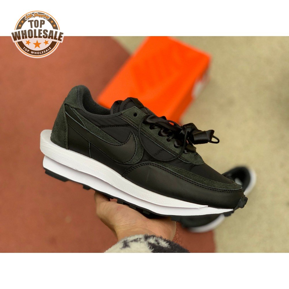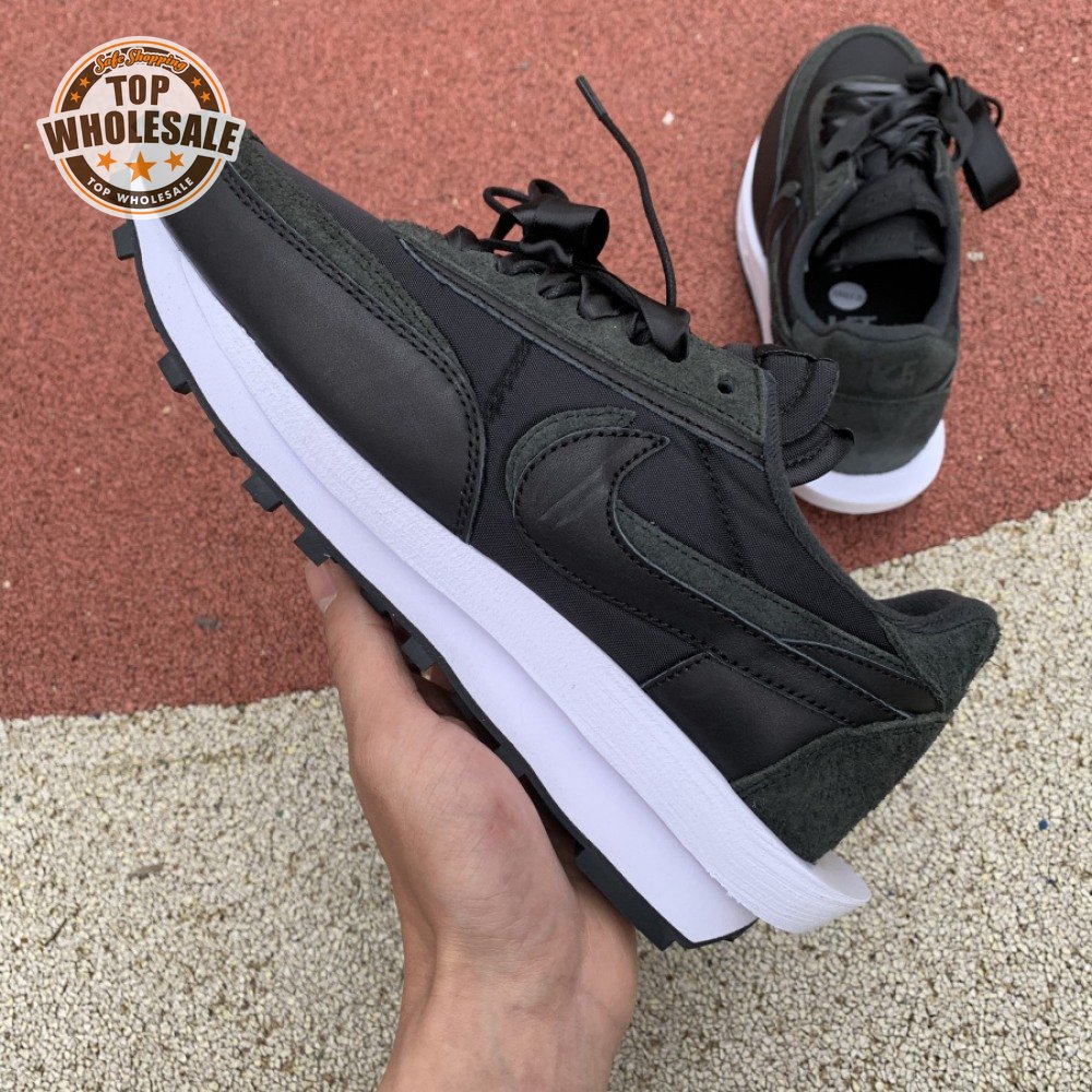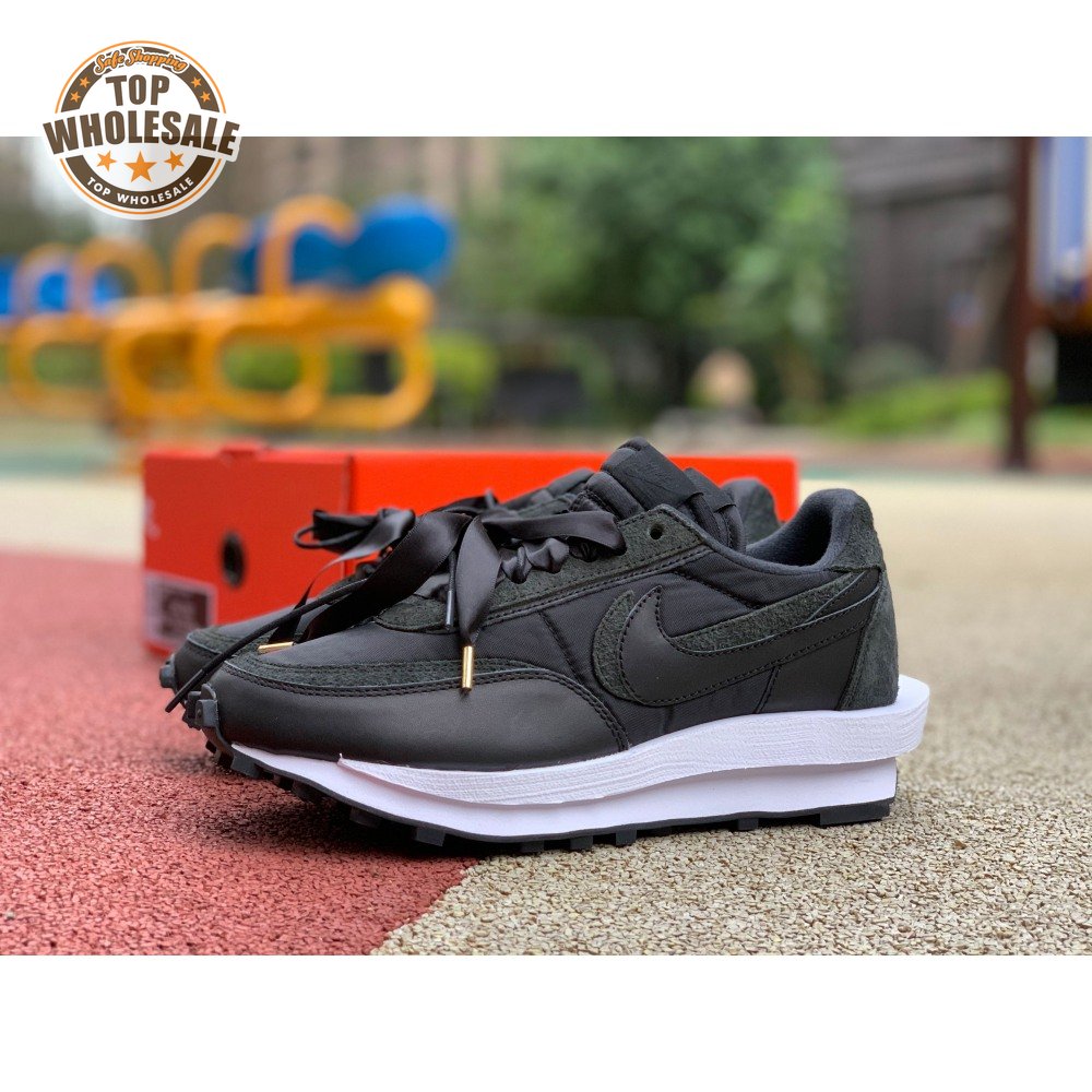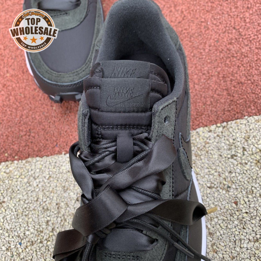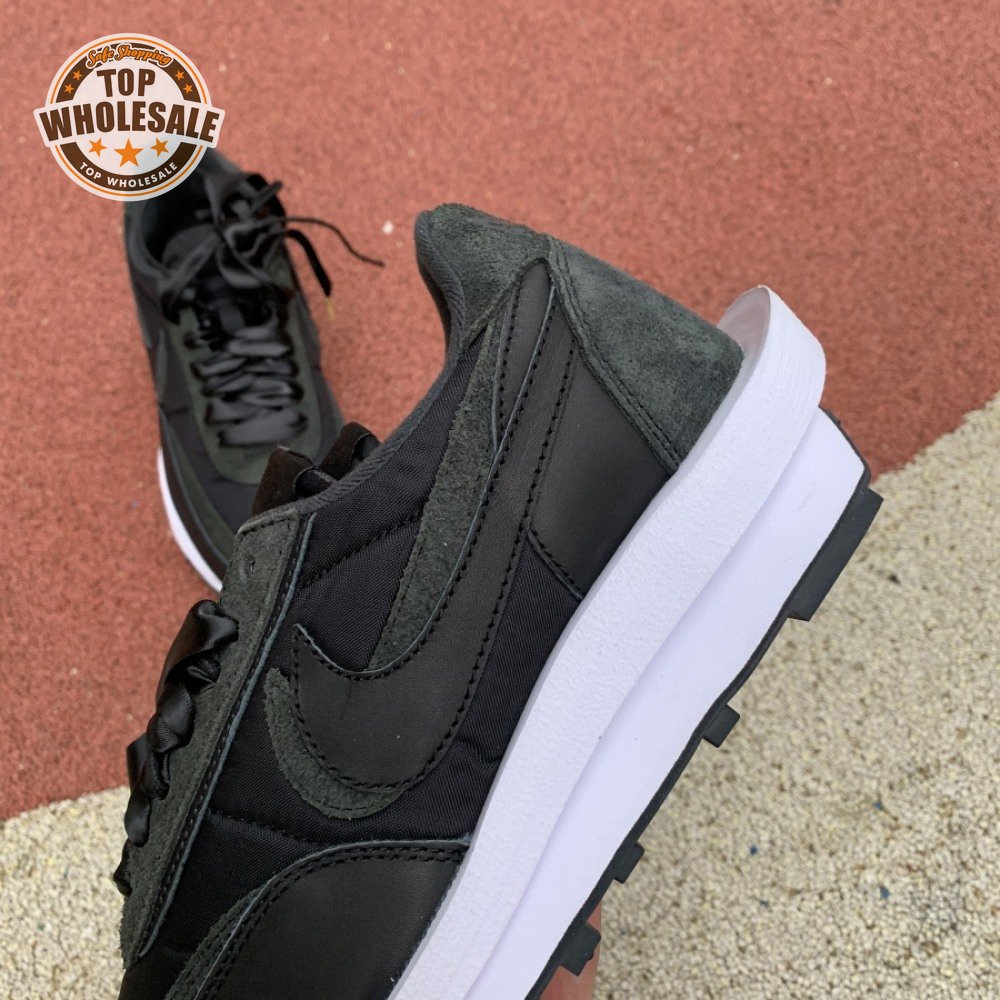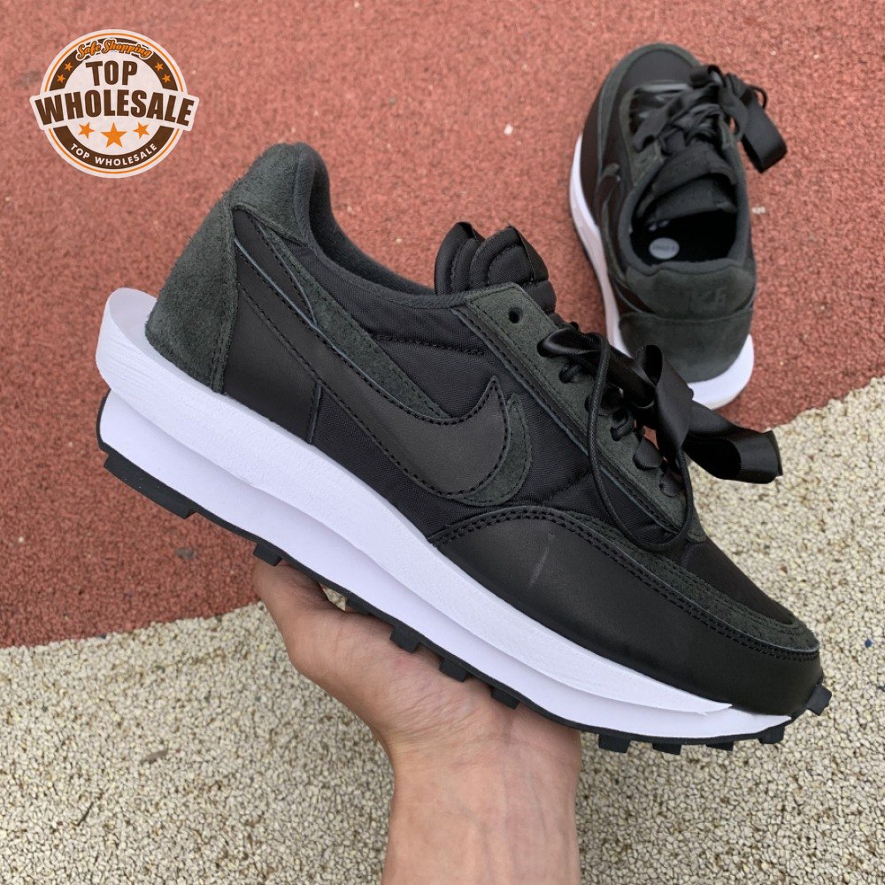 The Sacai x LDWaffle 'Black Nylon' delivers a monochromatic take on one of 2019"s most popular sneaker collaborations. Like its predecessors, this pair features a double-themed design on a hybrid runner that combines elements from the Nike LDV and Waffle Racer. The all-black nylon upper, featuring doubled-up Swooshes, tongues and laces, rides on an elongated midsole in contrasting white.